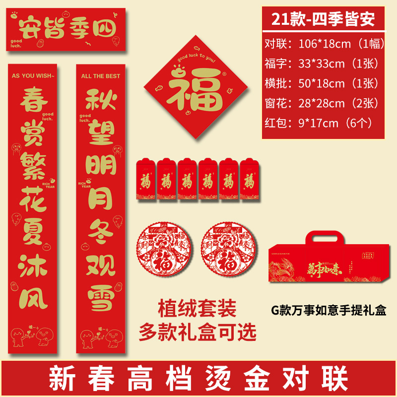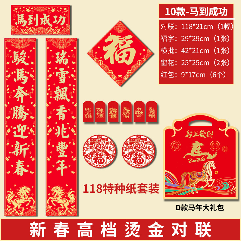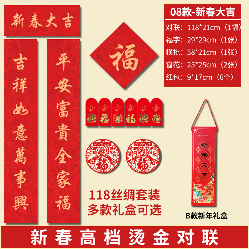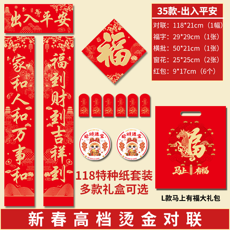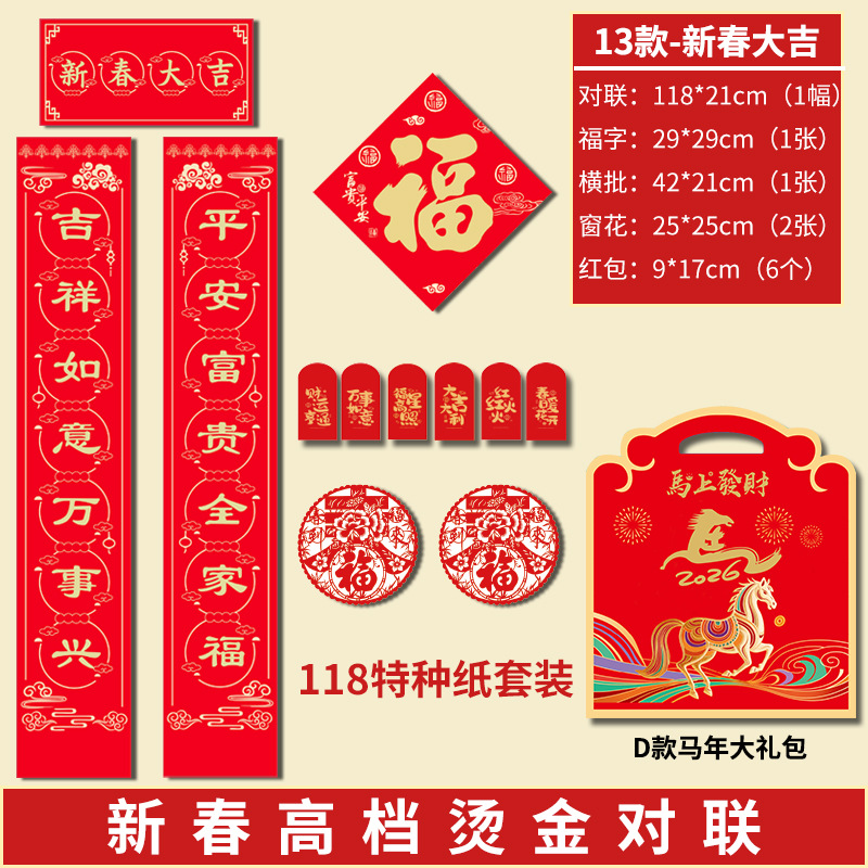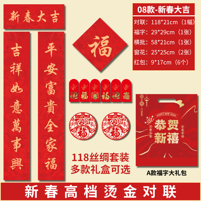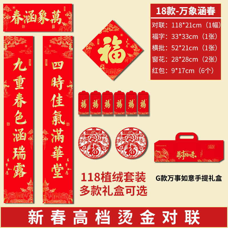 2026马年对联春联批货春节丝绸大礼包绒布新年植绒对联定制logo