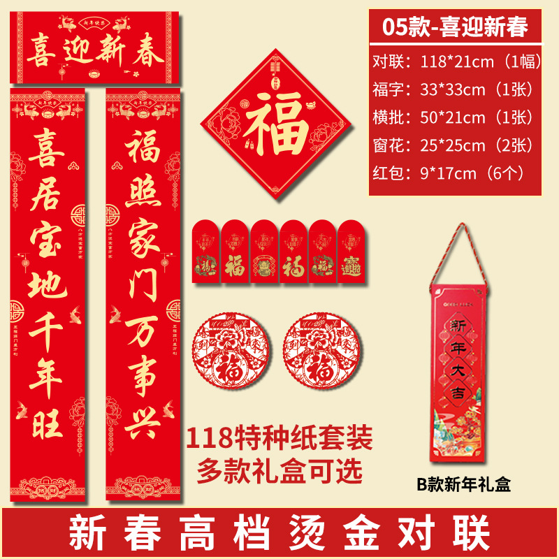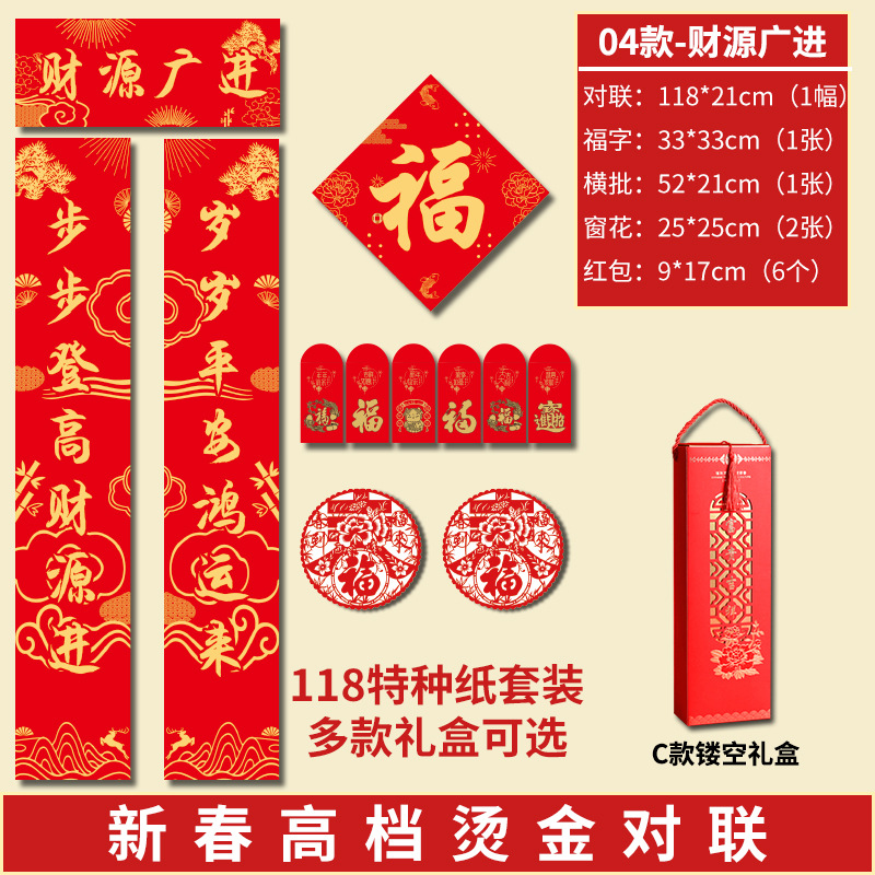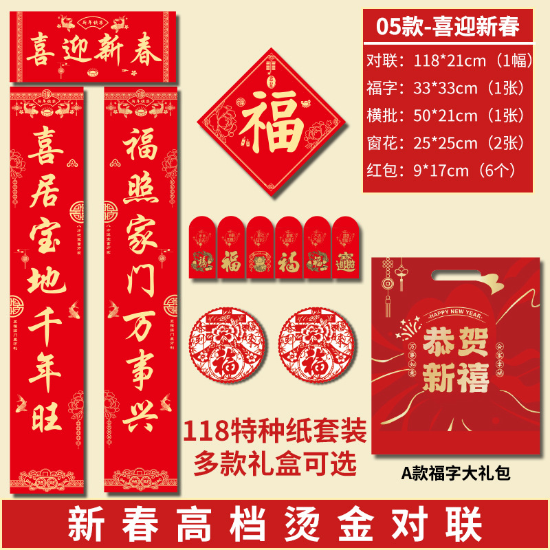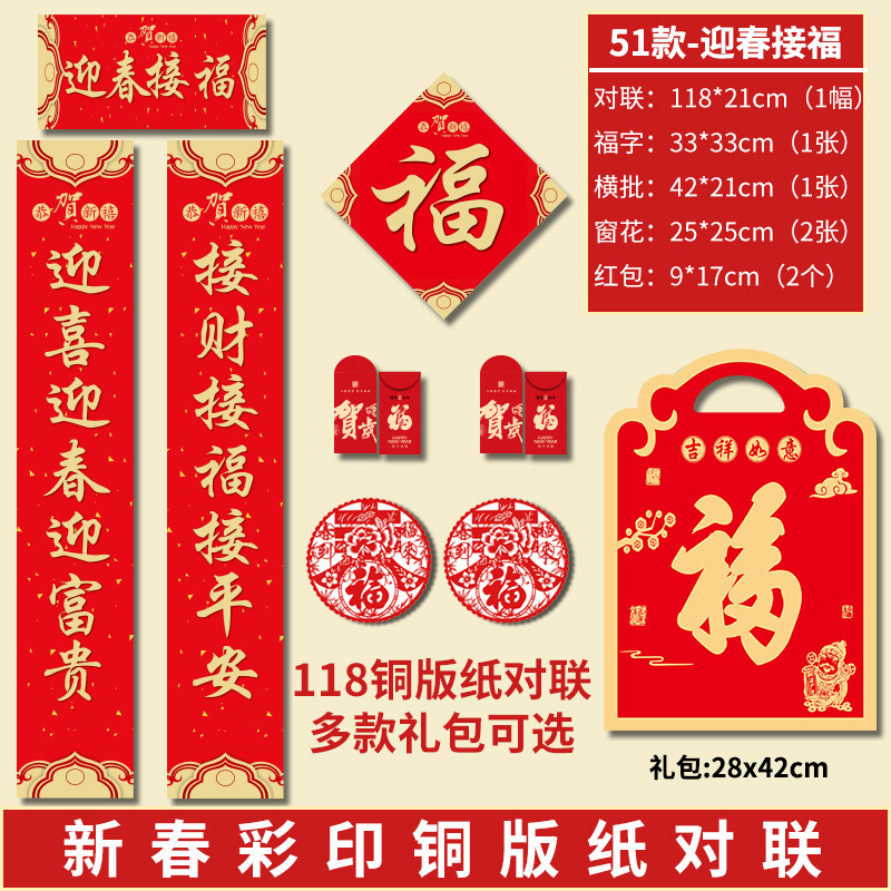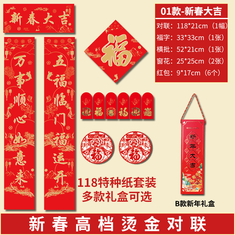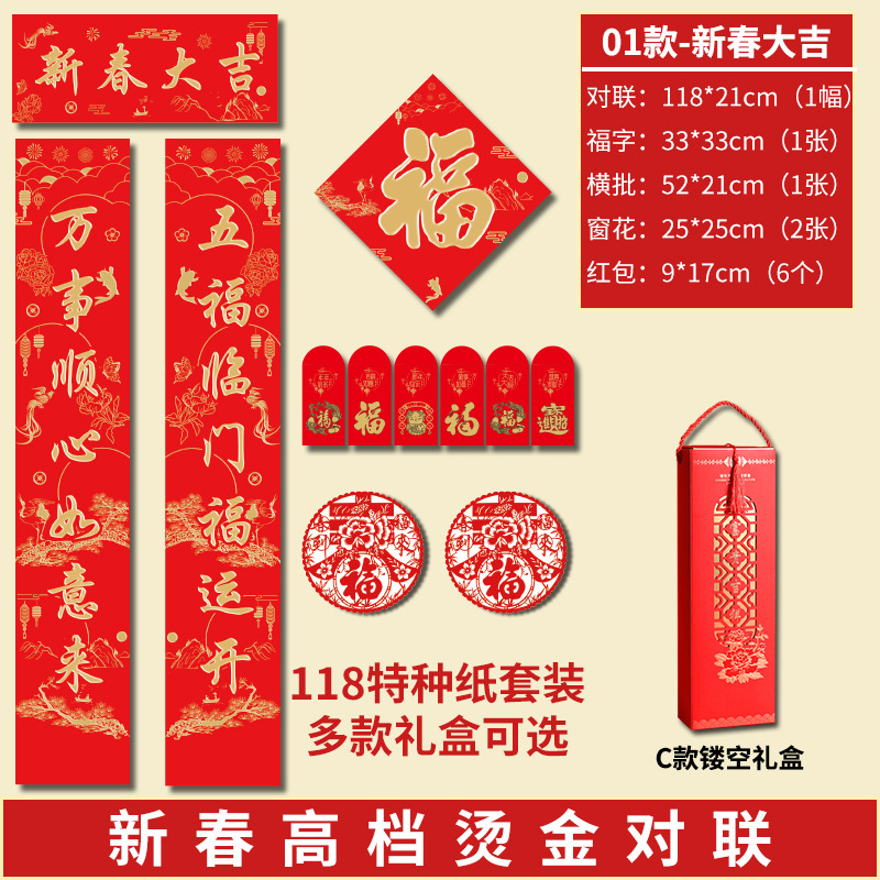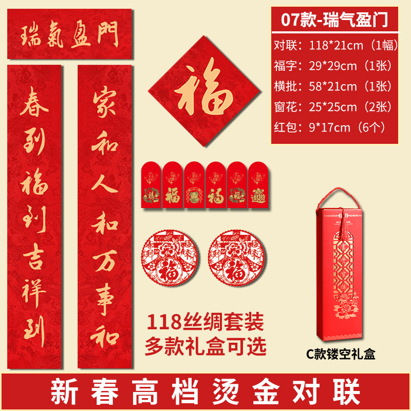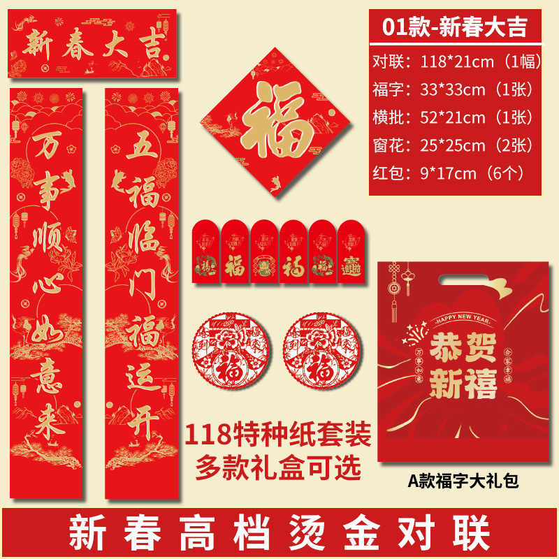 2026马年对联春联批货春节丝绸大礼包绒布新年植绒对联定制logo