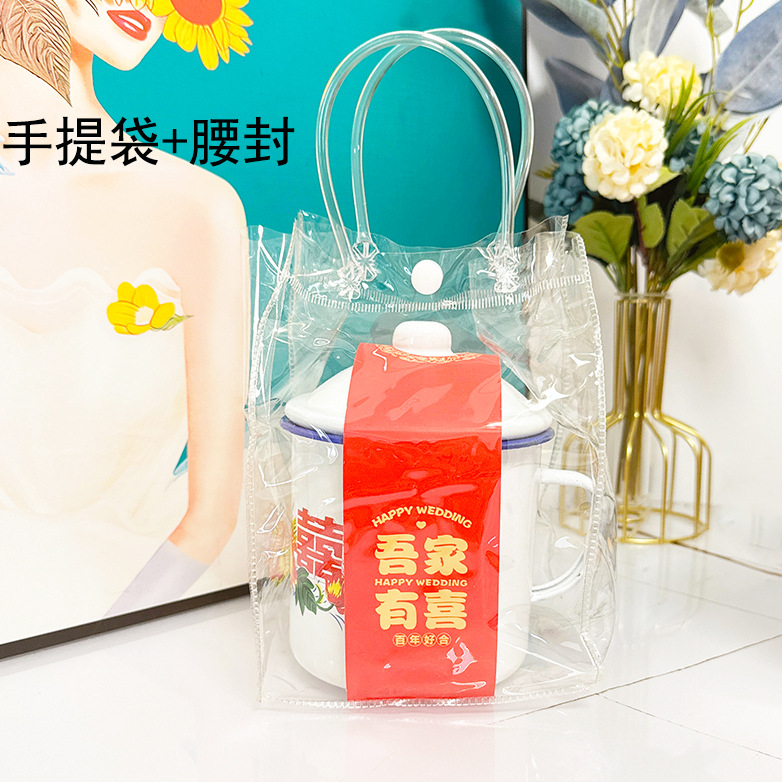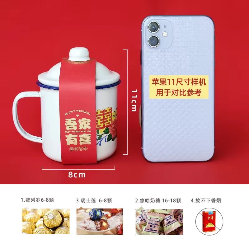 怀旧老式花卉红双喜搪瓷杯婚礼伴手礼喜糖搪瓷杯带盖大容量马克杯