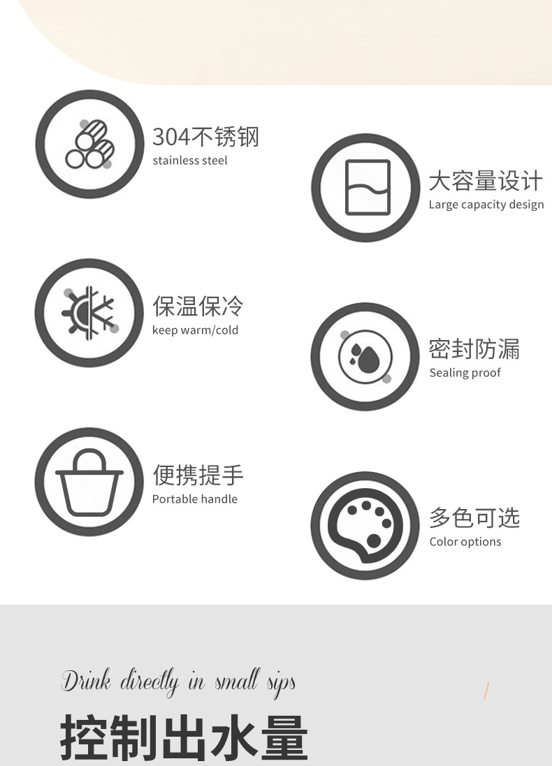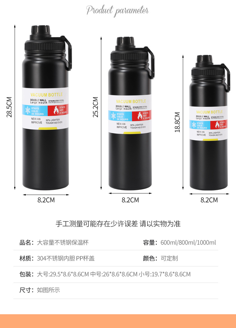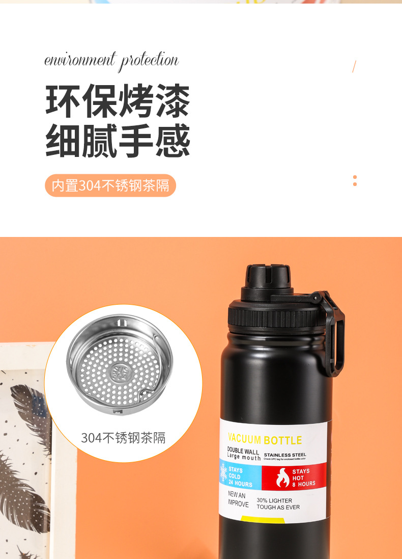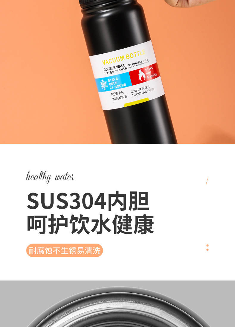 跨境304不锈钢太空壶户外大容量运动保温水杯车载直身保温壶批发