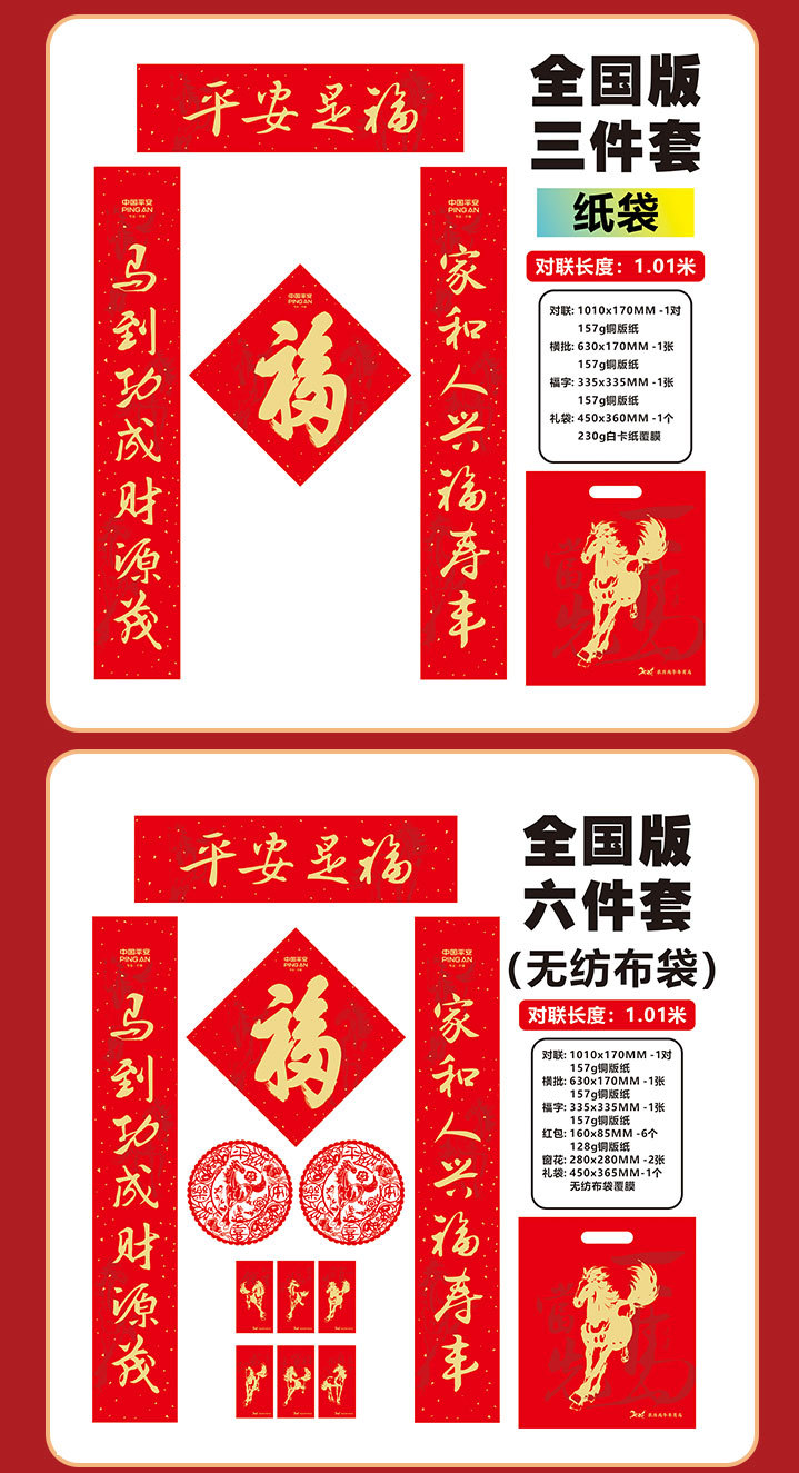 2026马年平安保险对联定 制银行广告春联门神福字大礼包定 制logo