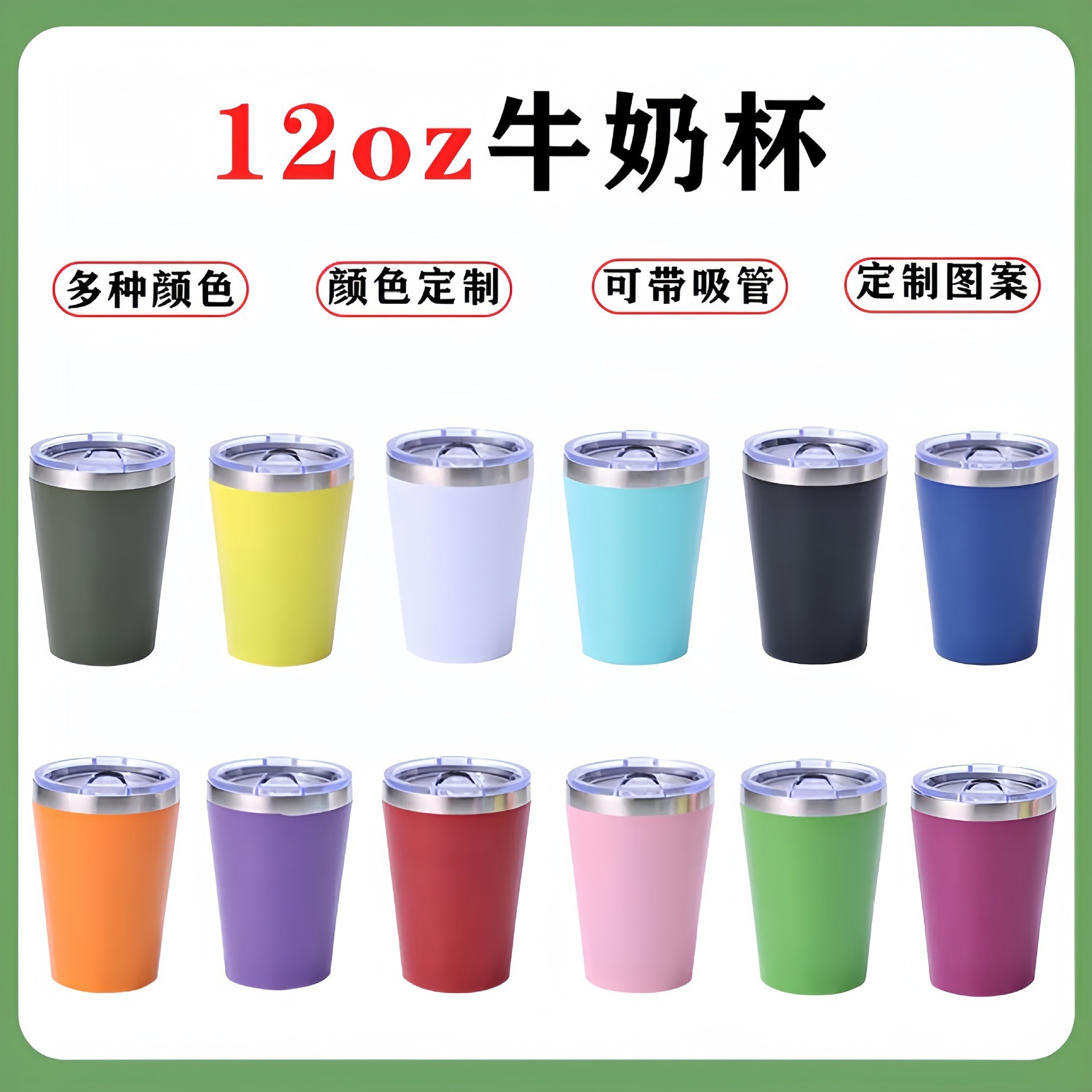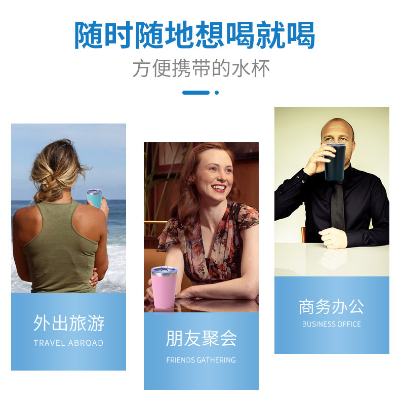 跨境不锈钢12oz牛奶杯304真空保温杯锥度汽车杯啤酒杯牛奶咖啡杯