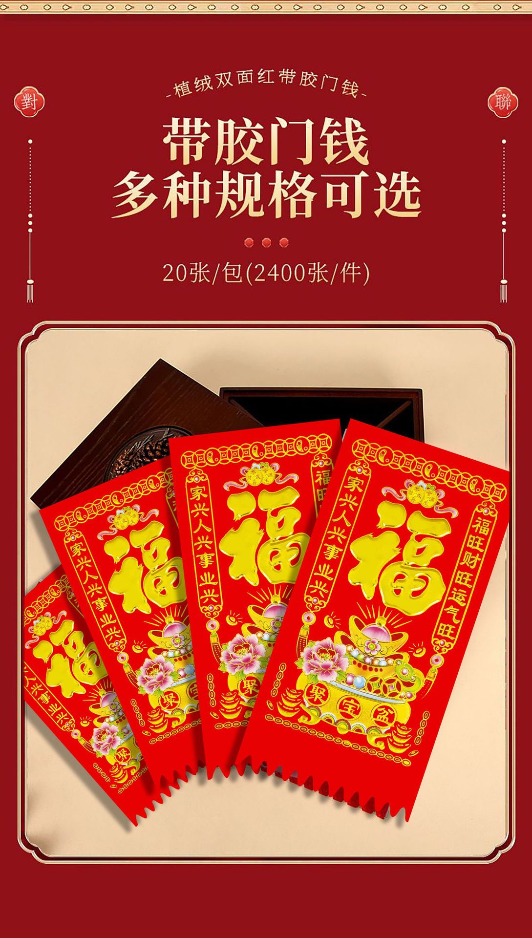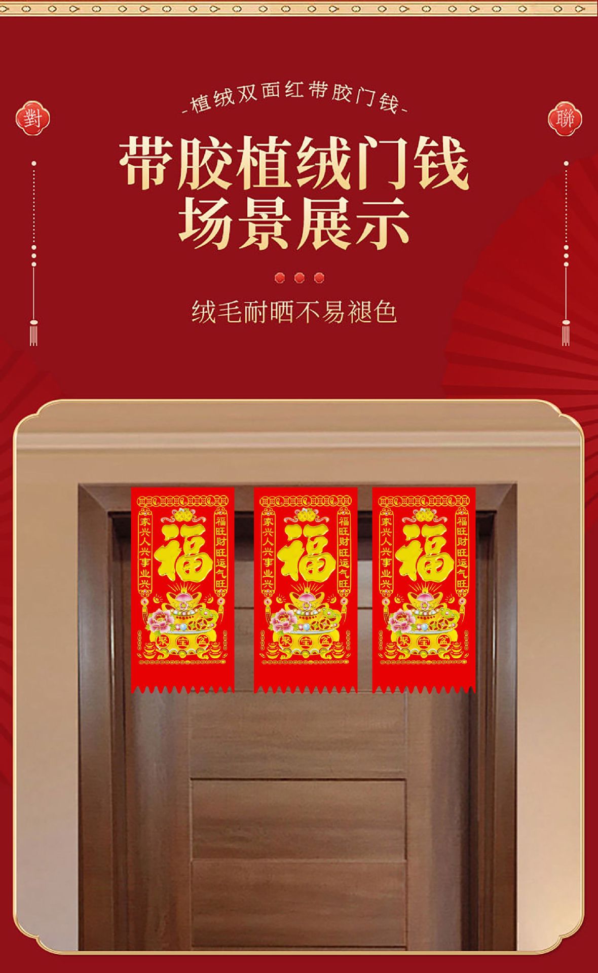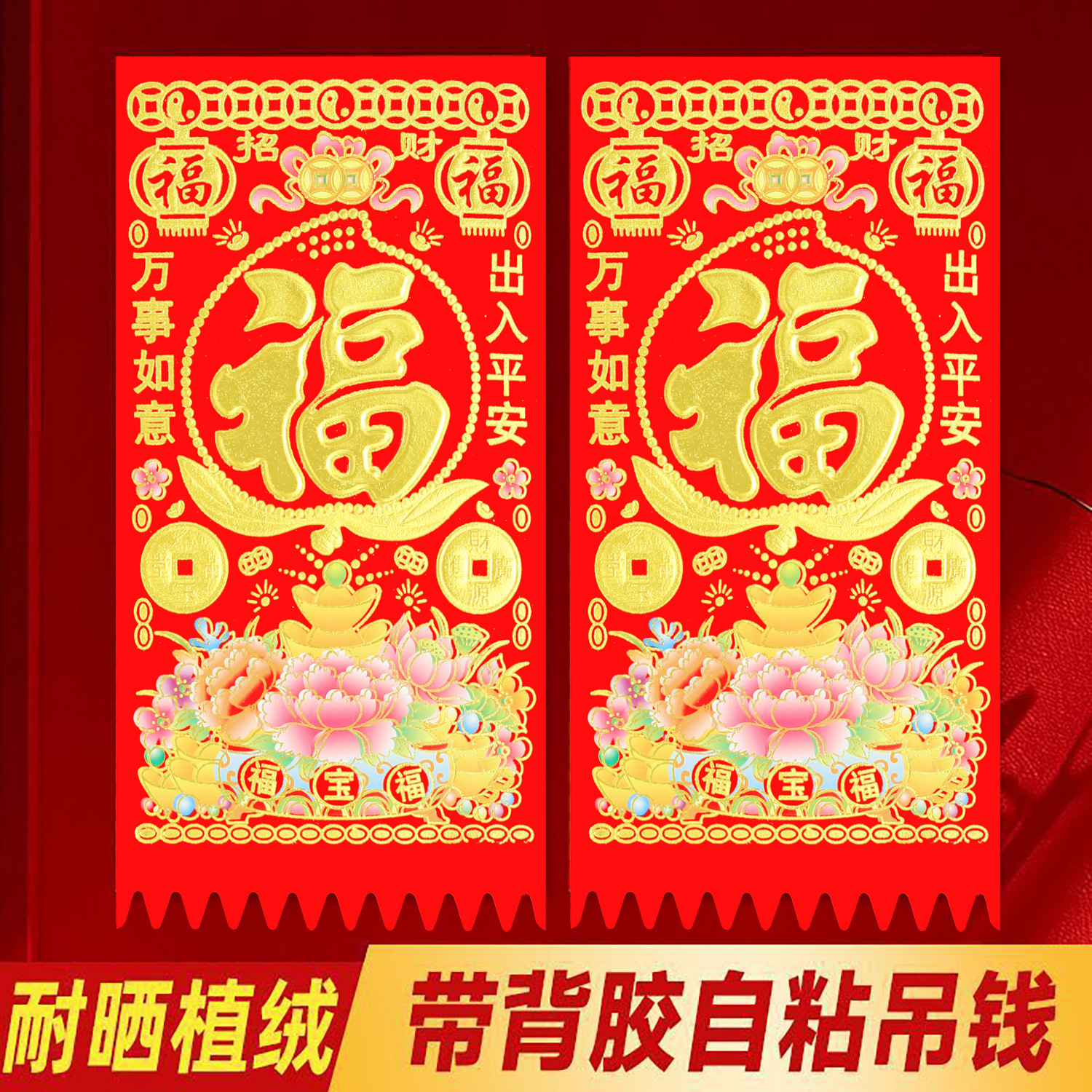 【自粘带背胶】2026新款植绒吊钱利是钱门贴挥春过年门钱挂钱春节