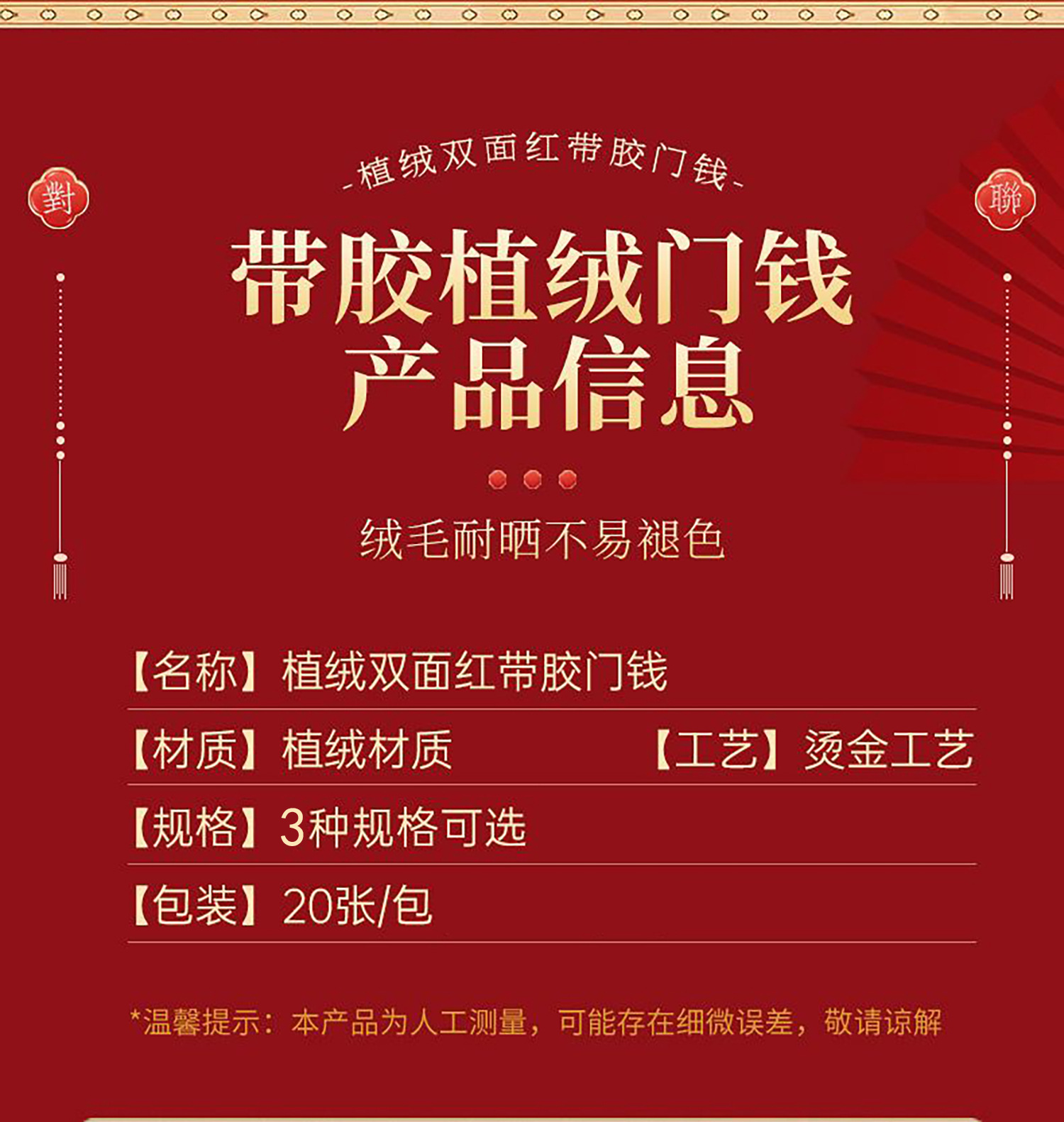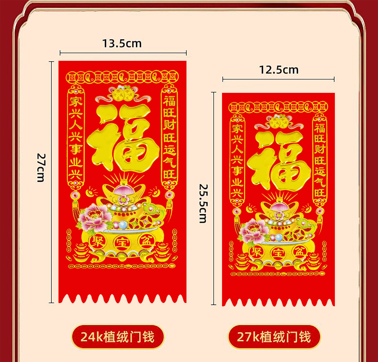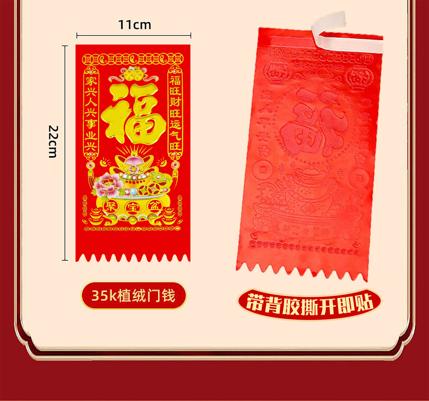 【自粘带背胶】2026新款植绒吊钱利是钱门贴挥春过年门钱挂钱春节