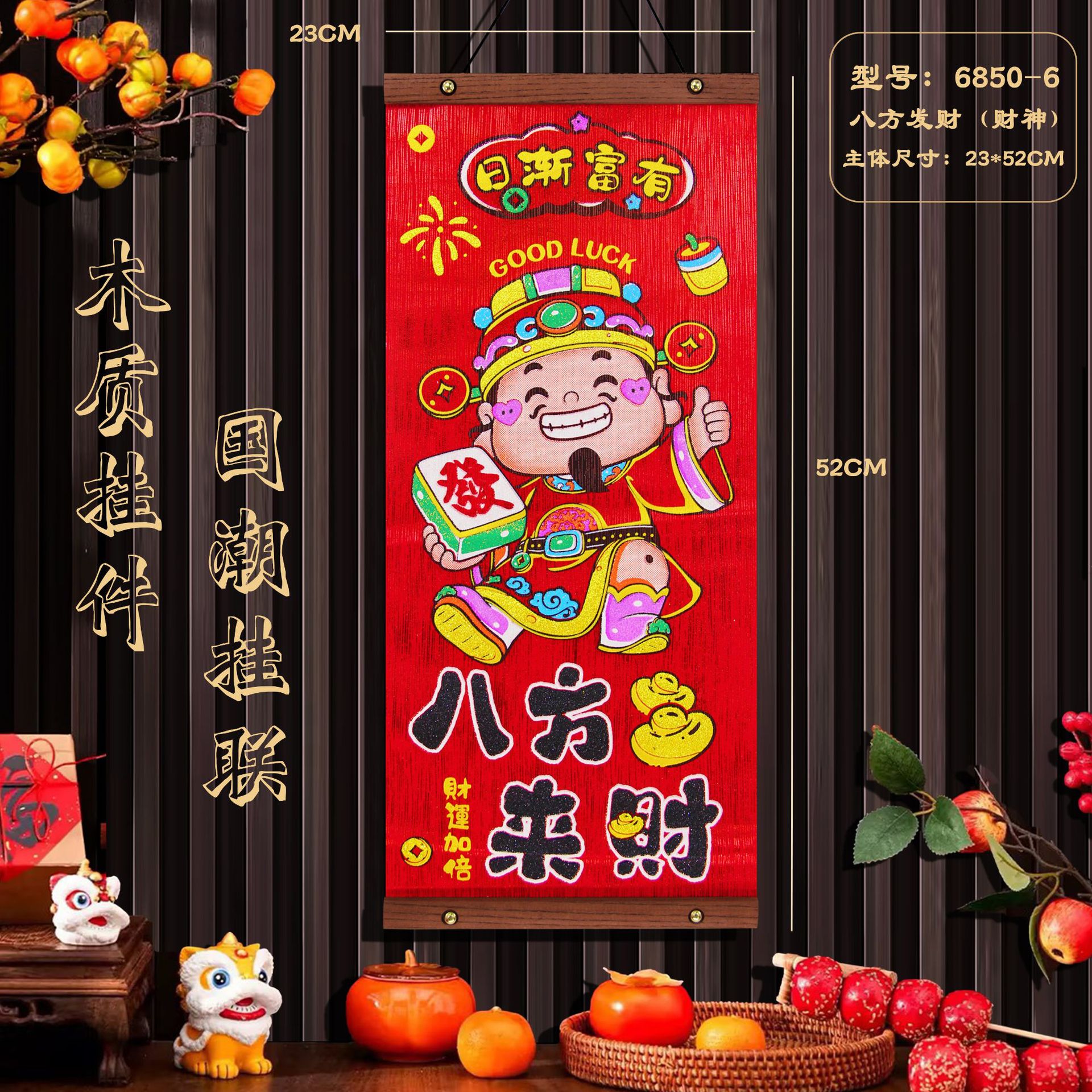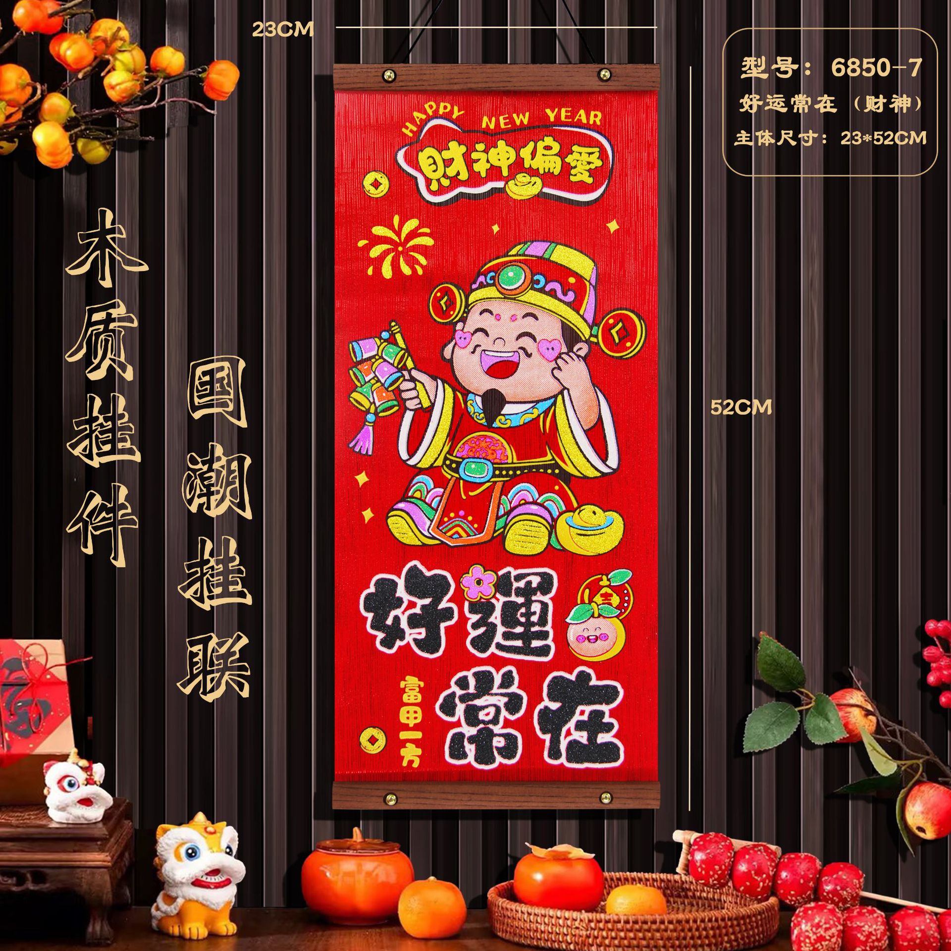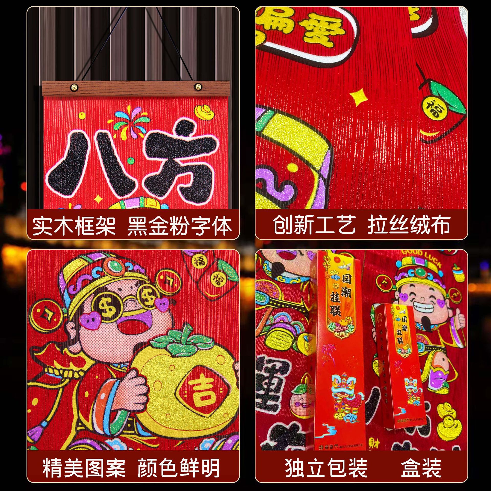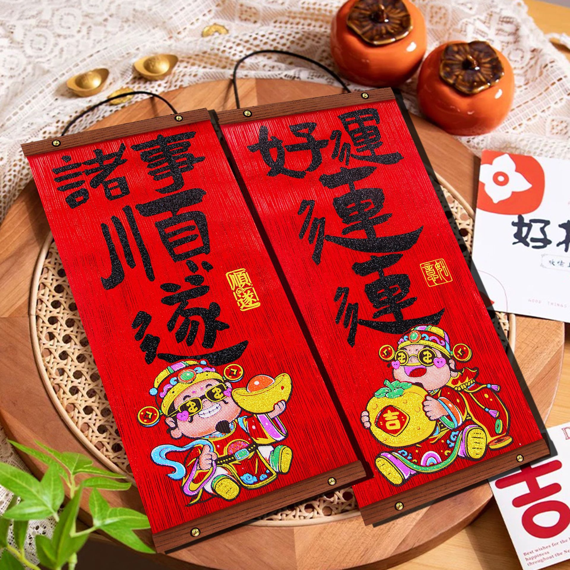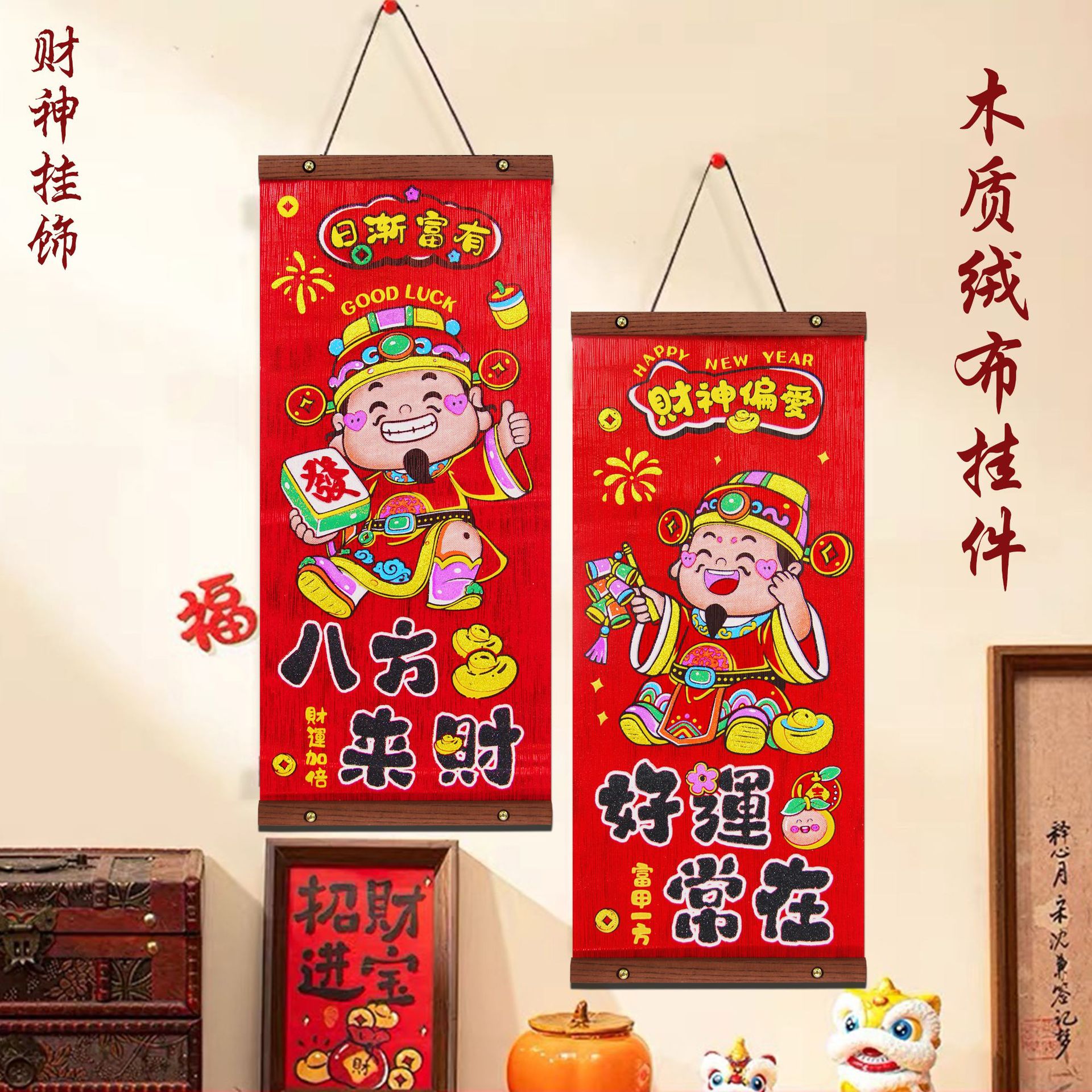 春节挂饰国潮挂联财神装饰挂画蛇年对联新年高级木质绒布挂件批发