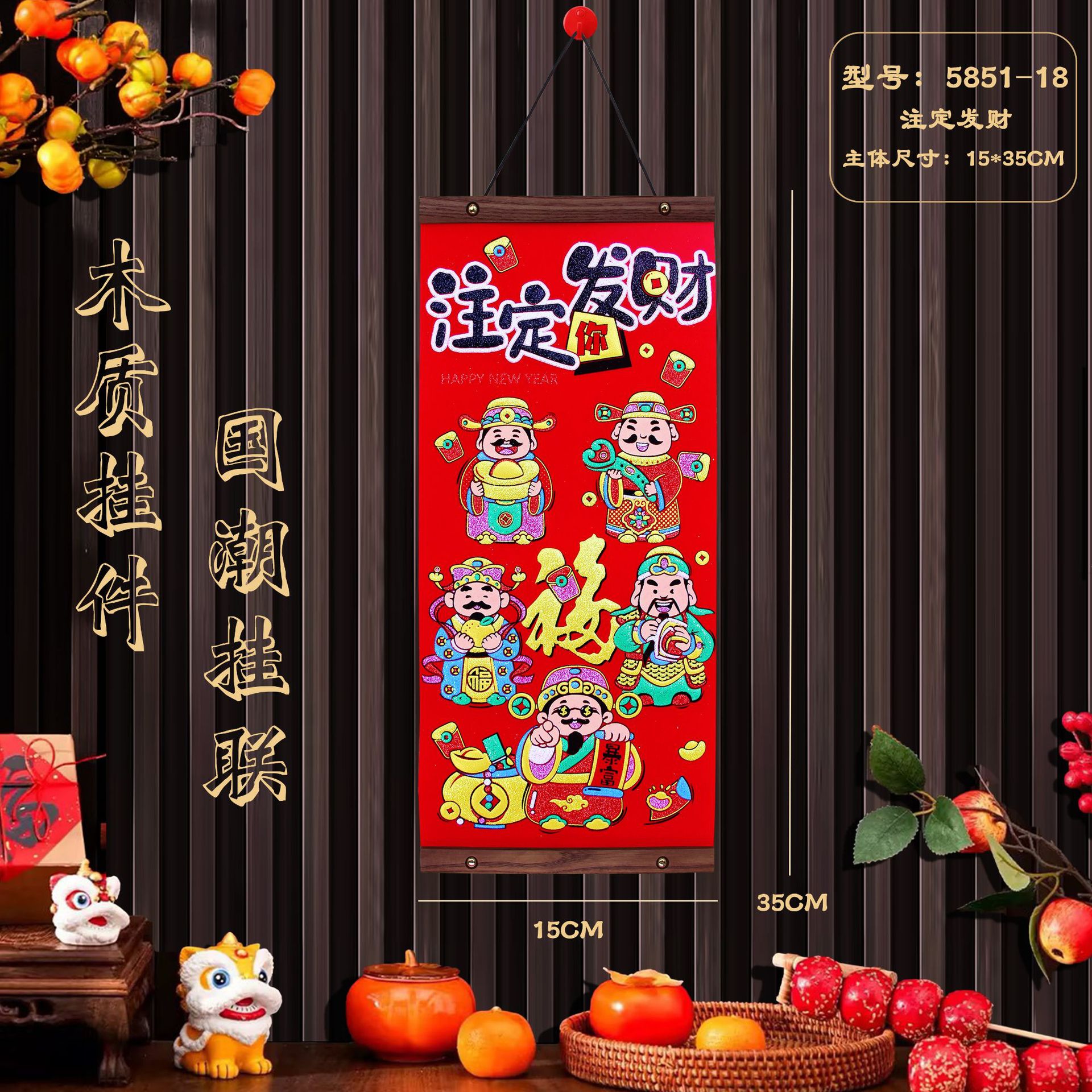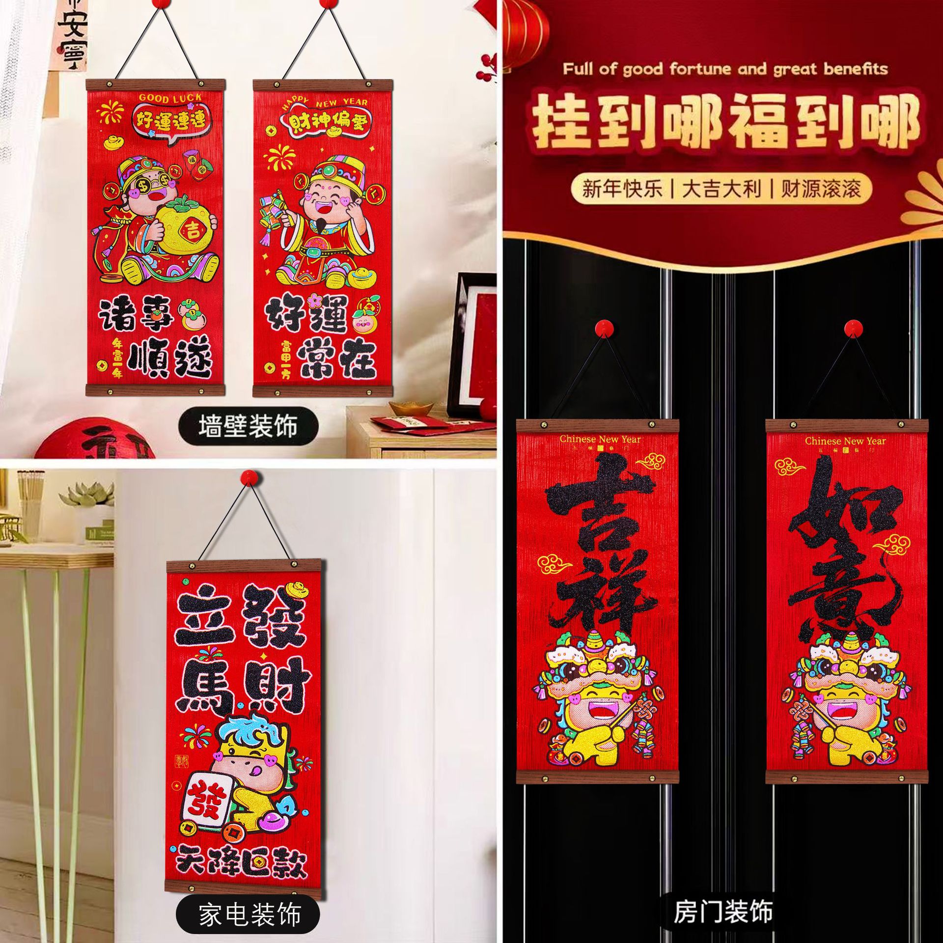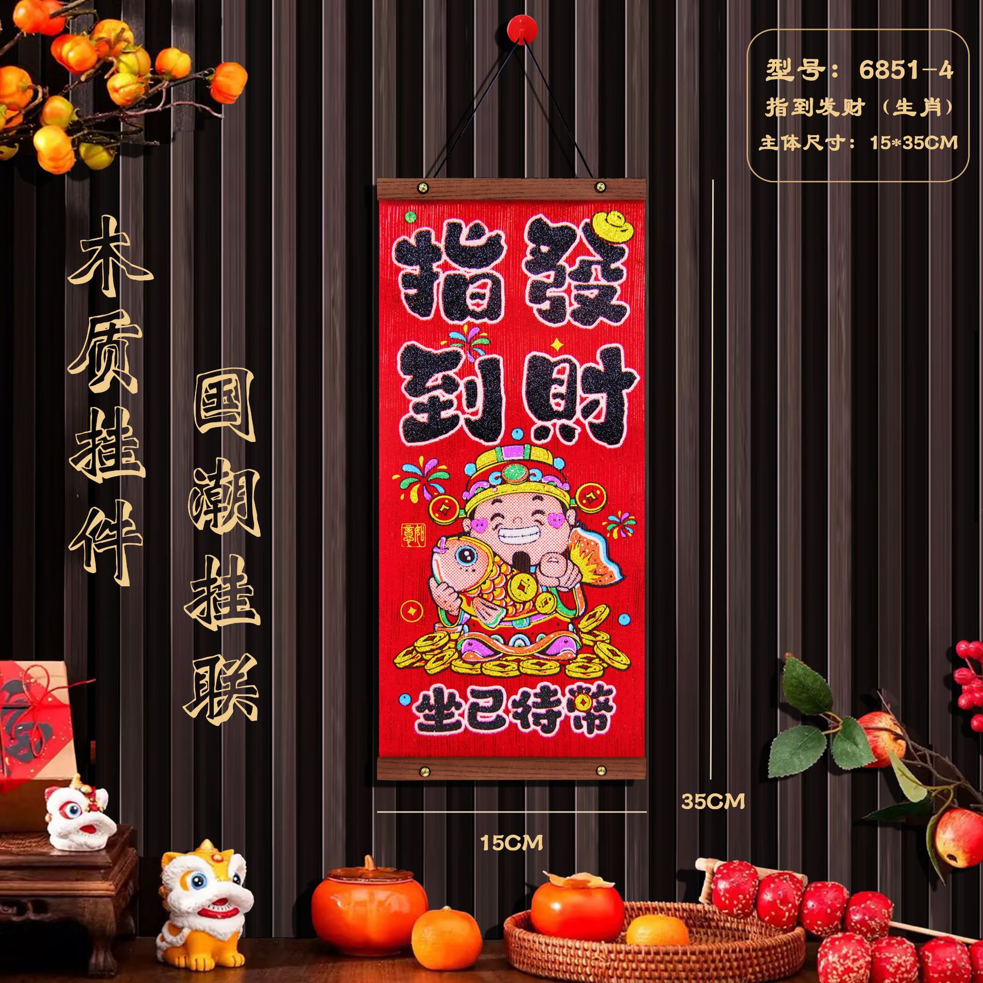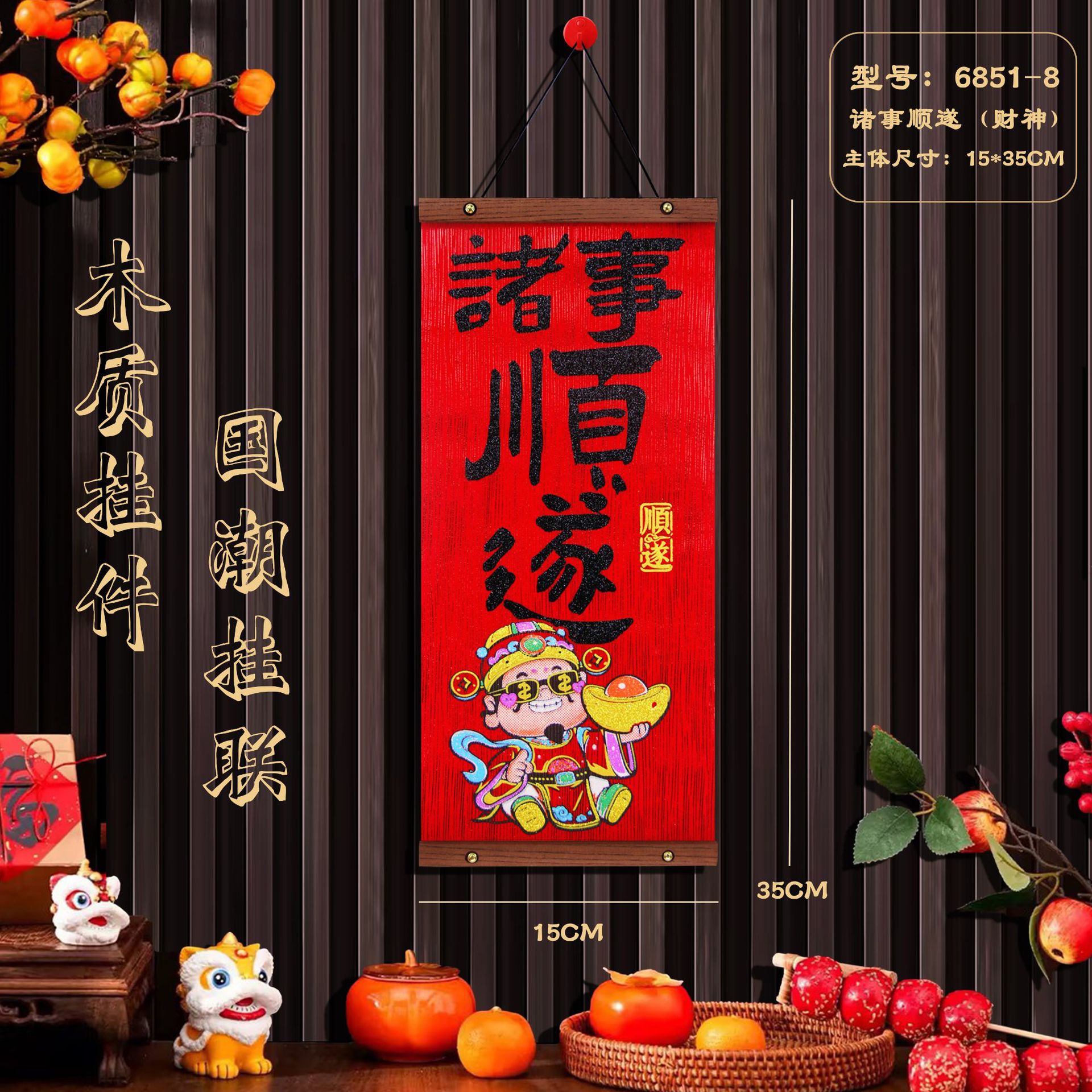 春节挂饰国潮挂联财神装饰挂画蛇年对联新年高级木质绒布挂件批发