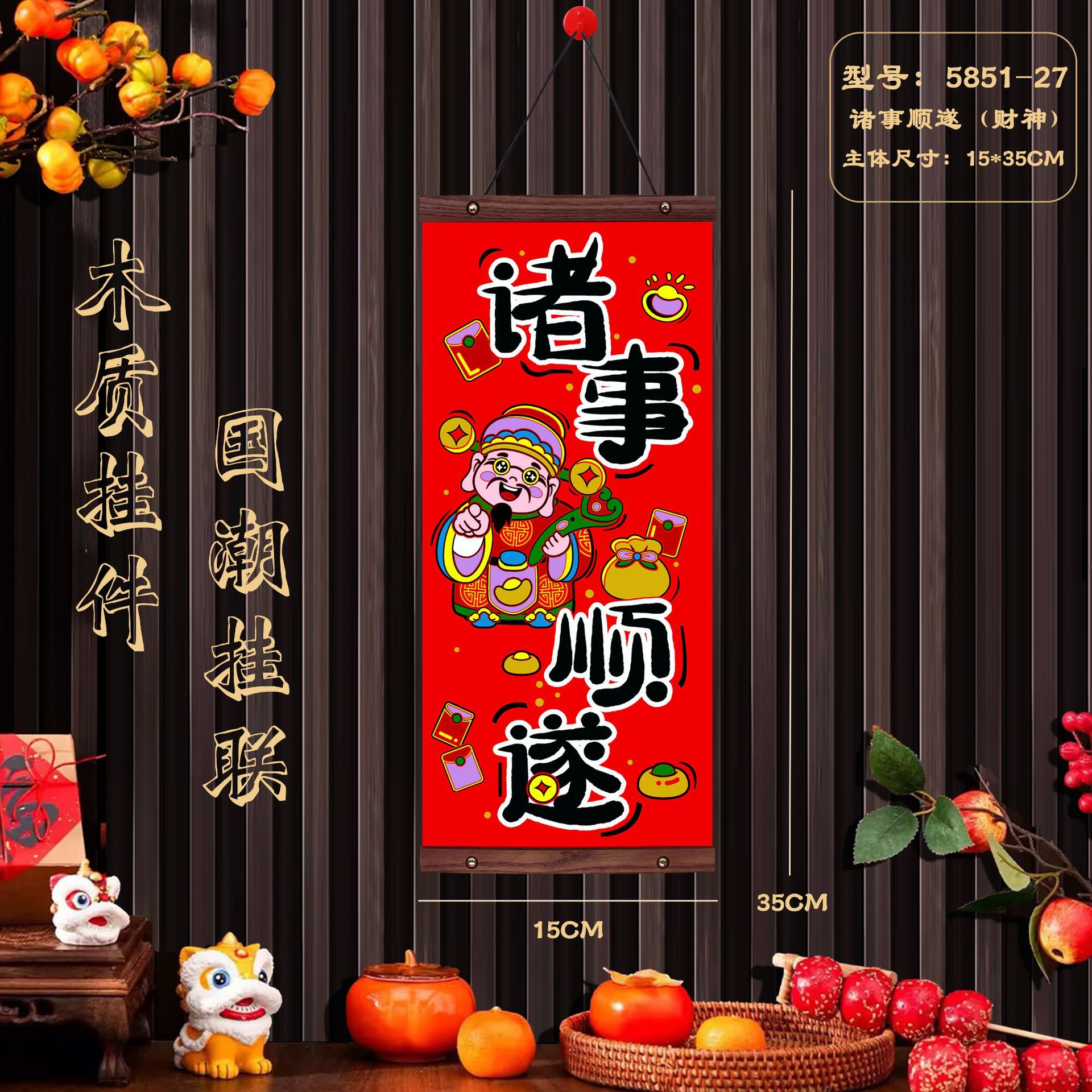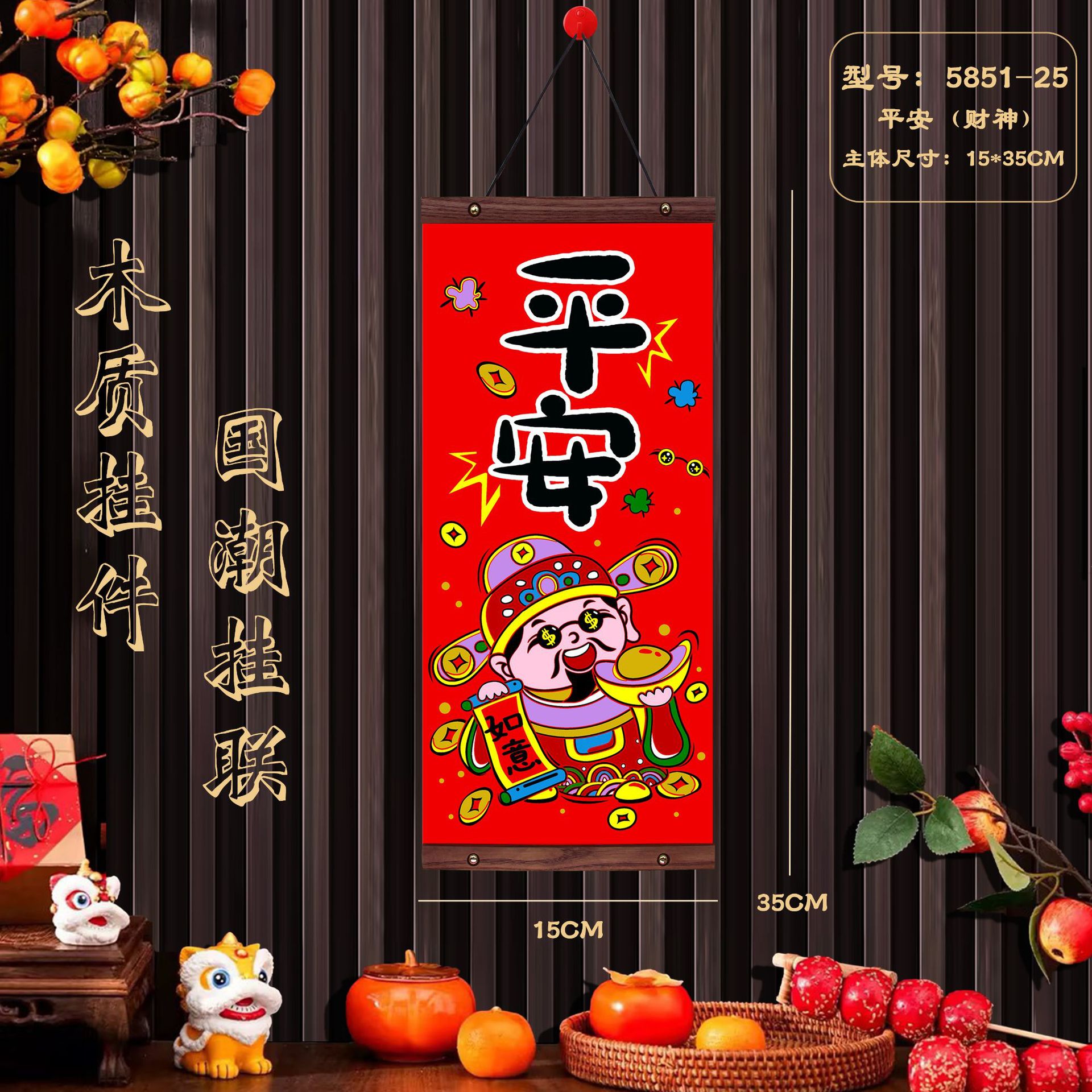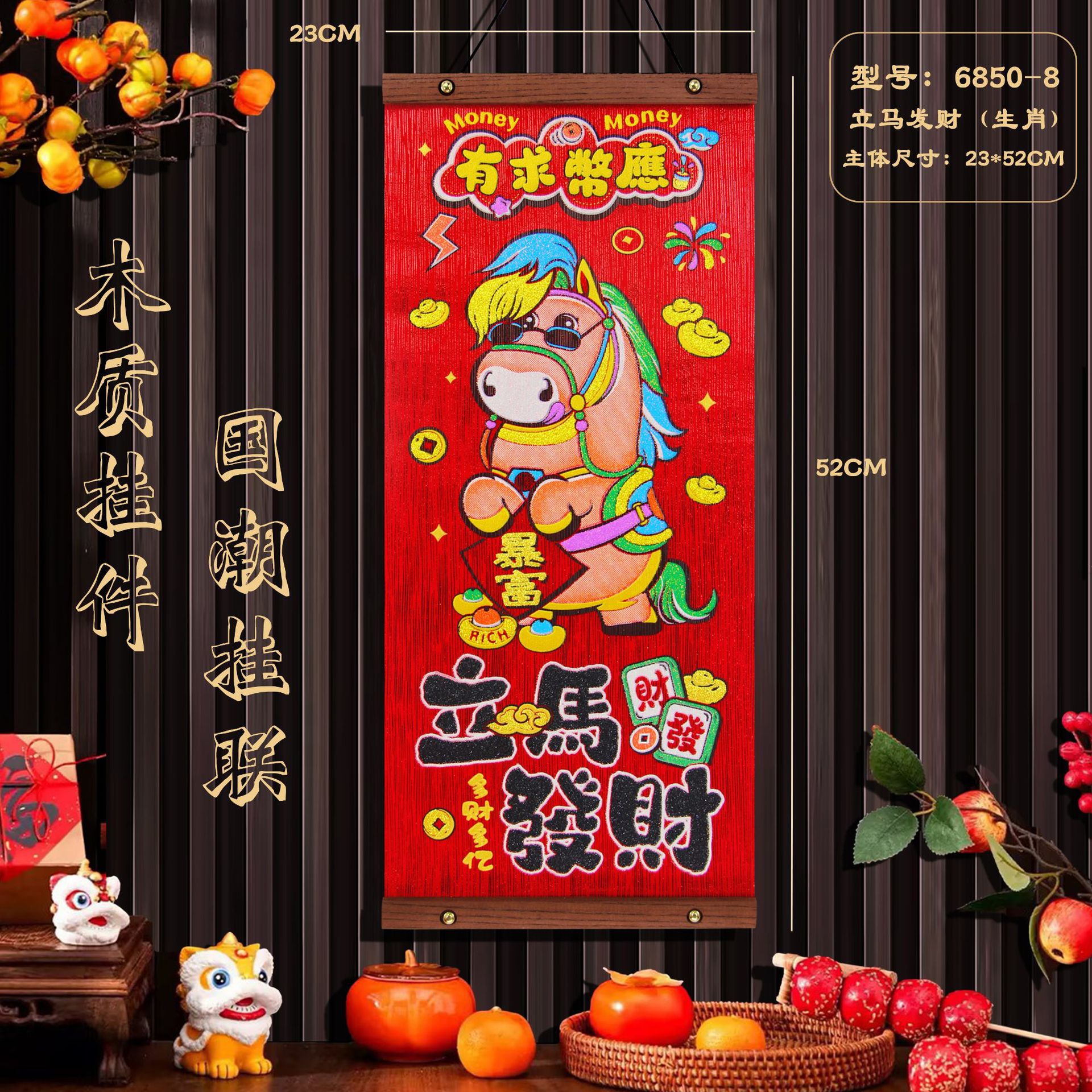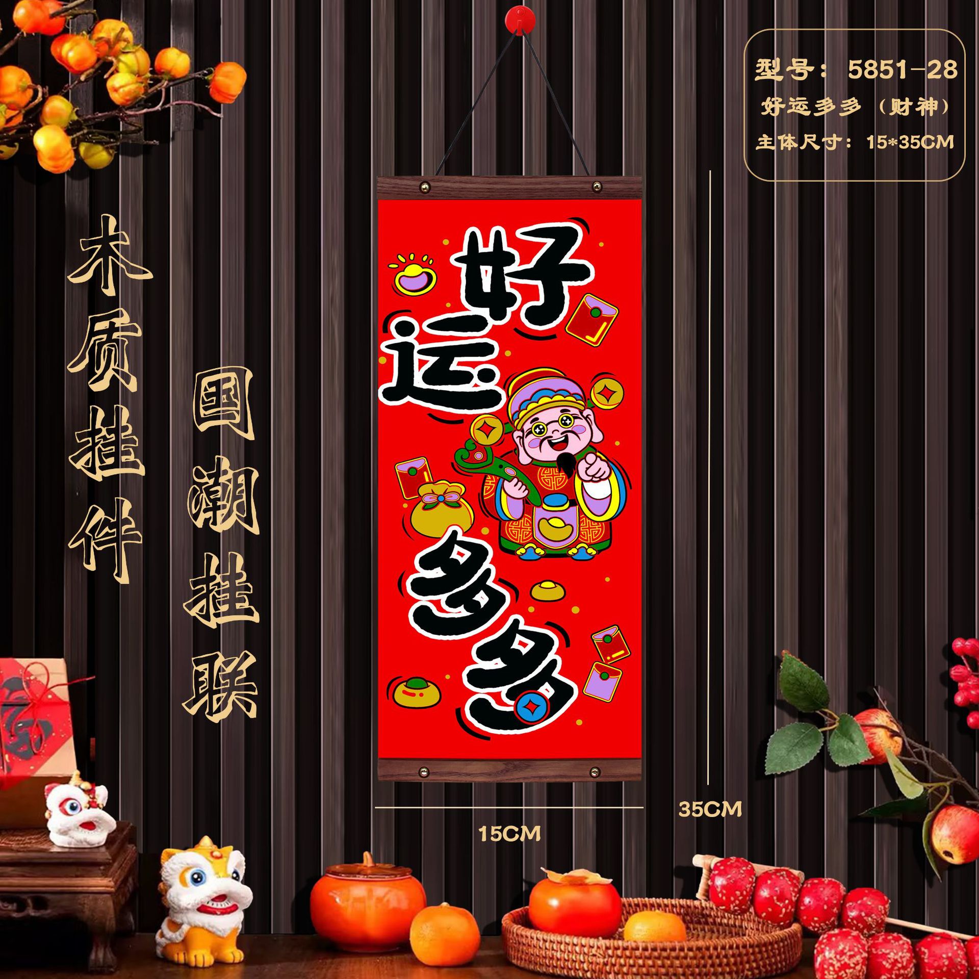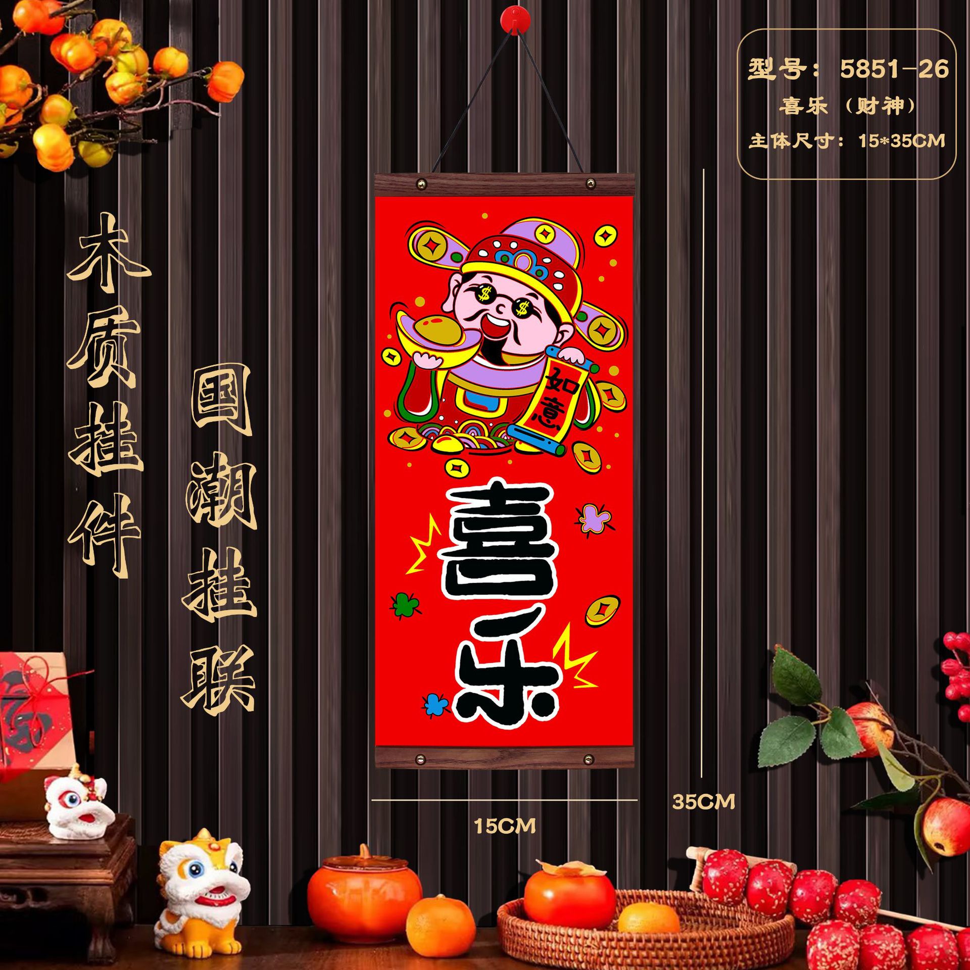 春节挂饰国潮挂联财神装饰挂画蛇年对联新年高级木质绒布挂件批发