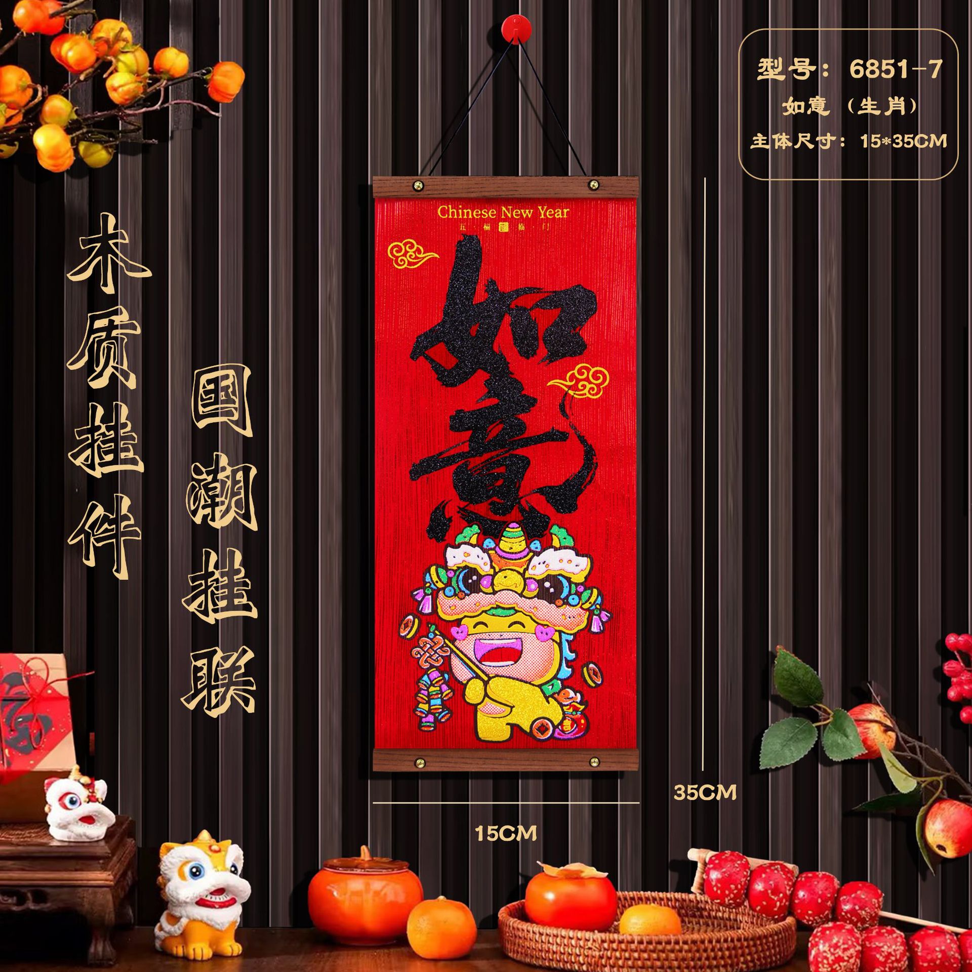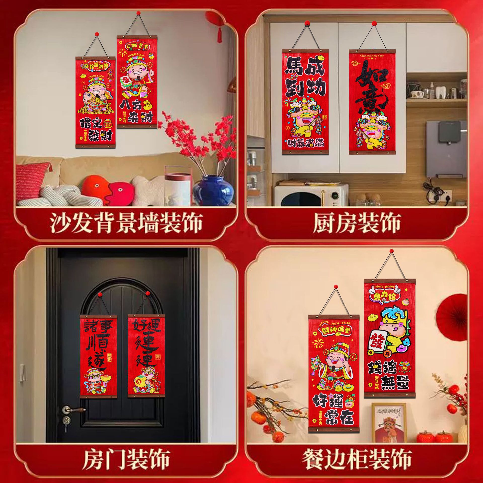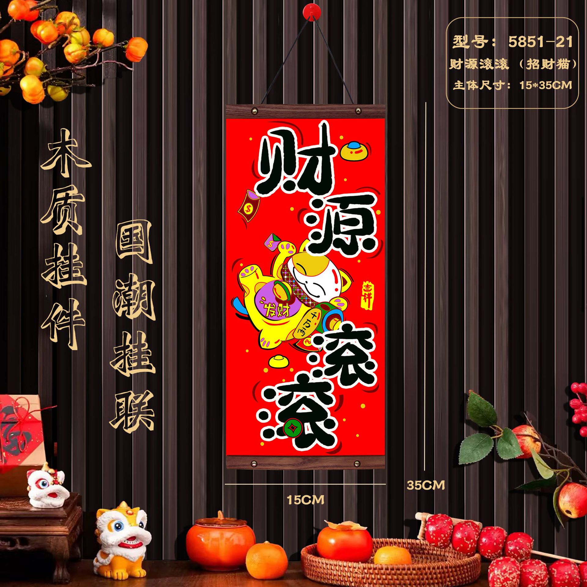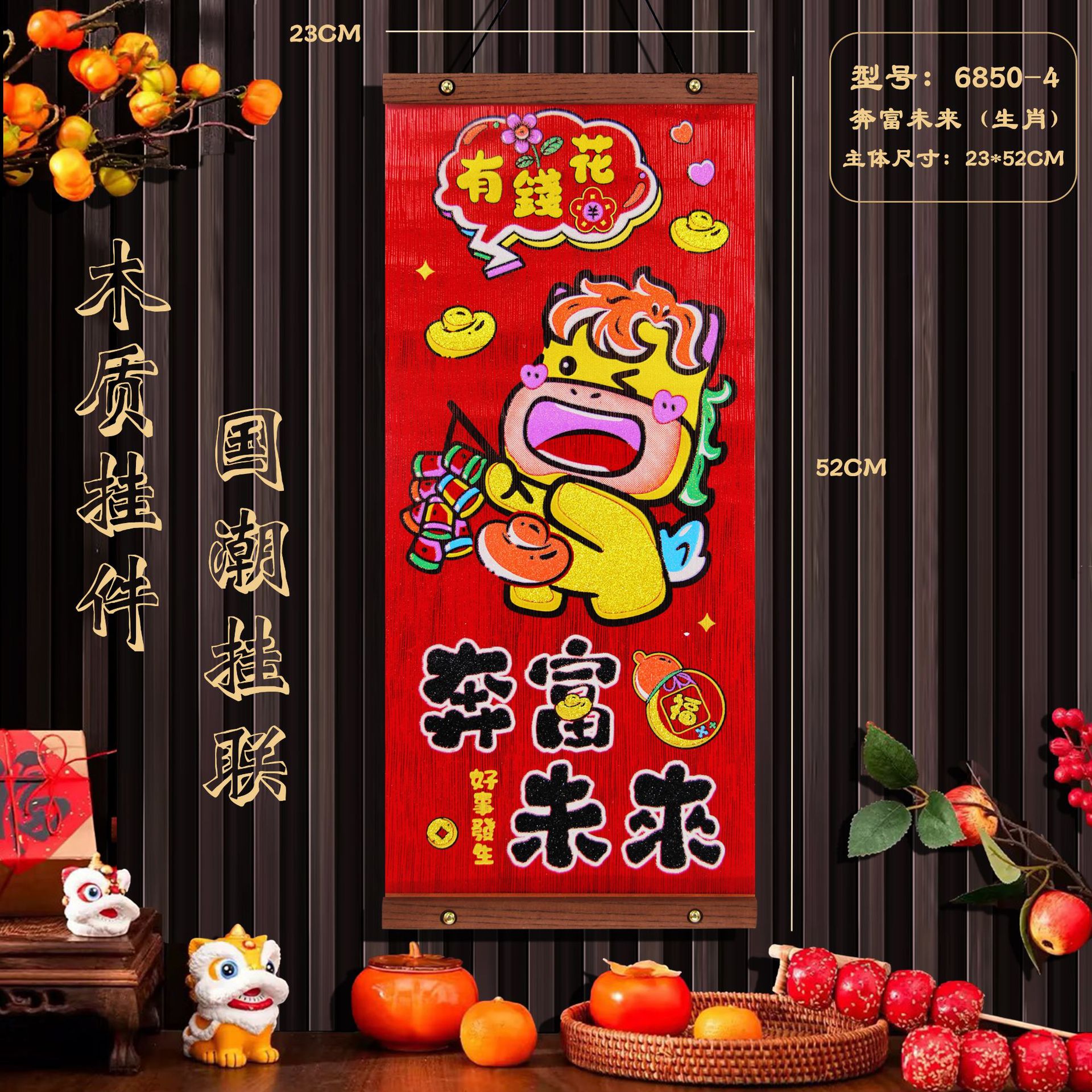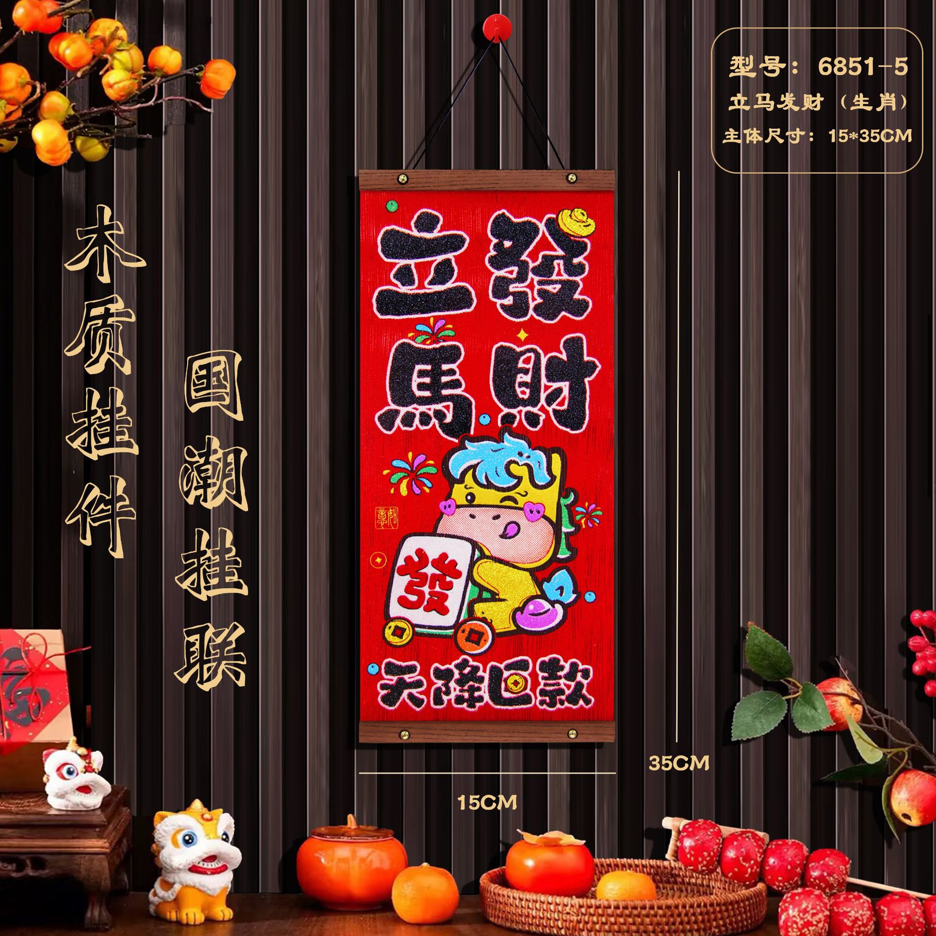 春节挂饰国潮挂联财神装饰挂画蛇年对联新年高级木质绒布挂件批发