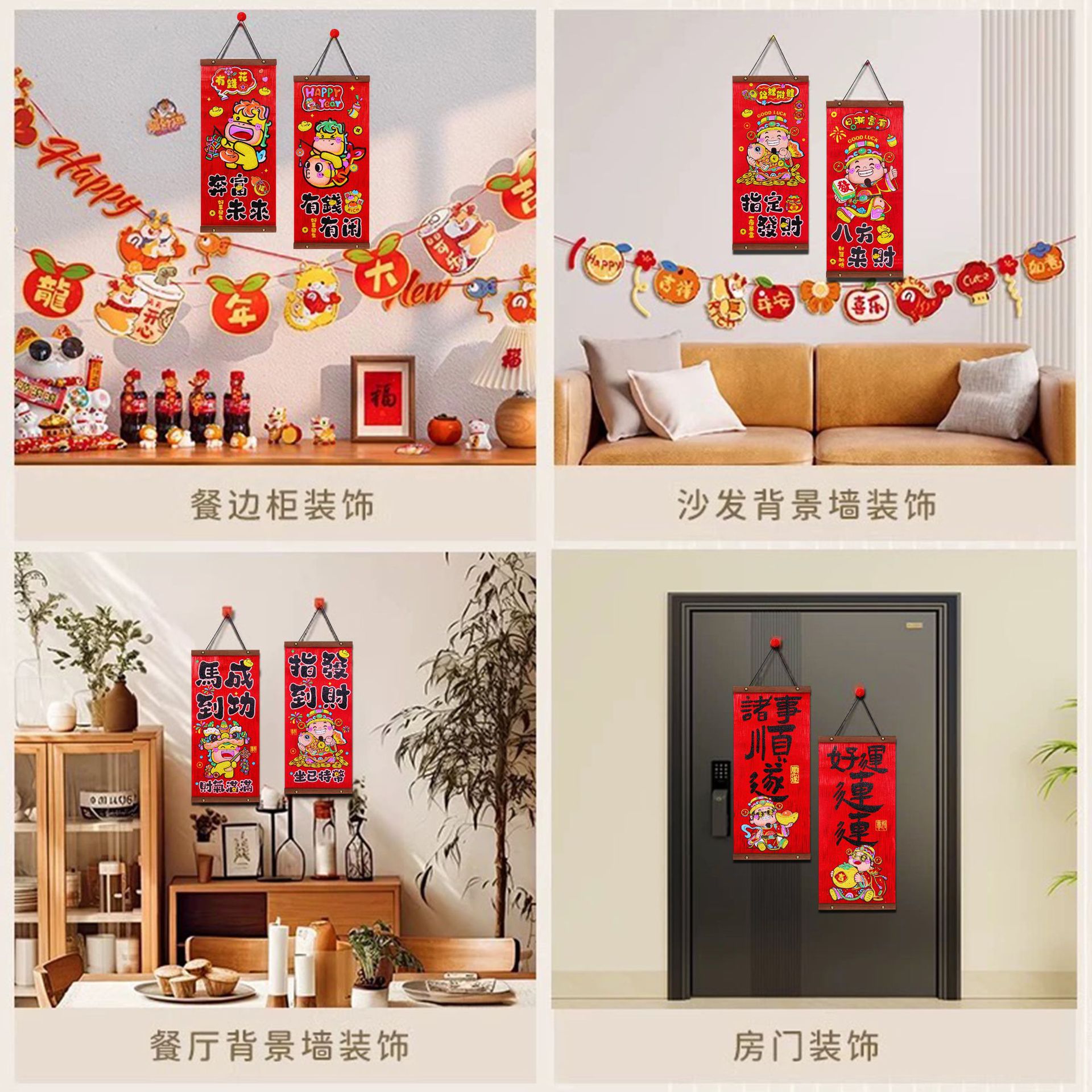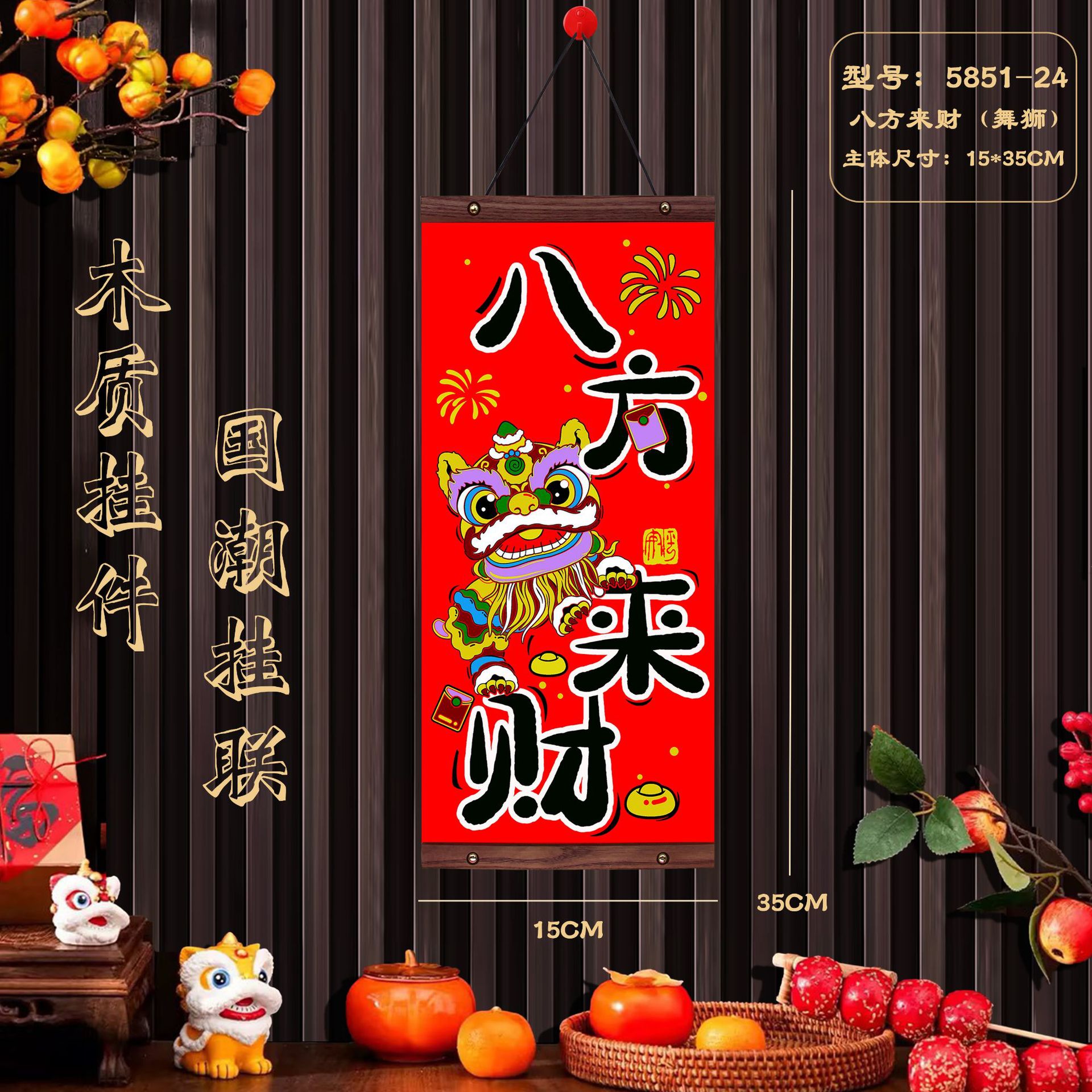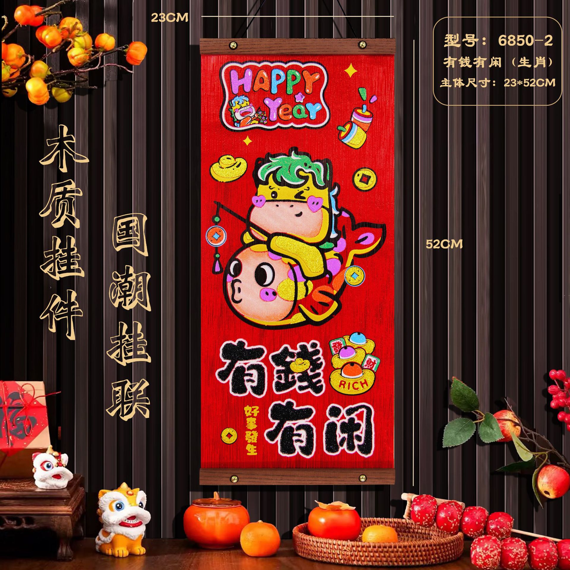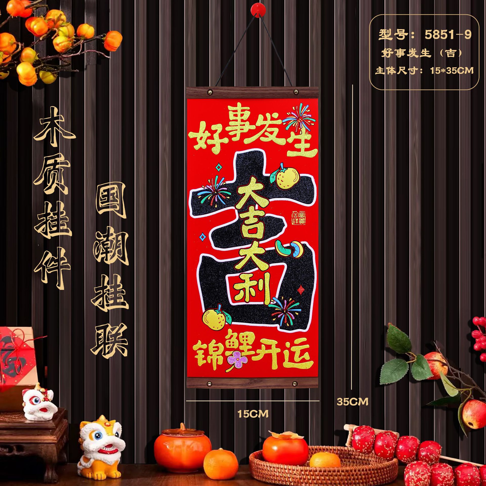 春节挂饰国潮挂联财神装饰挂画蛇年对联新年高级木质绒布挂件批发