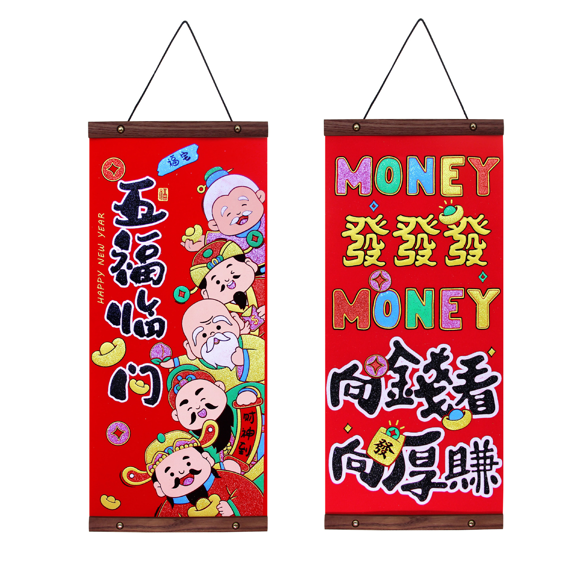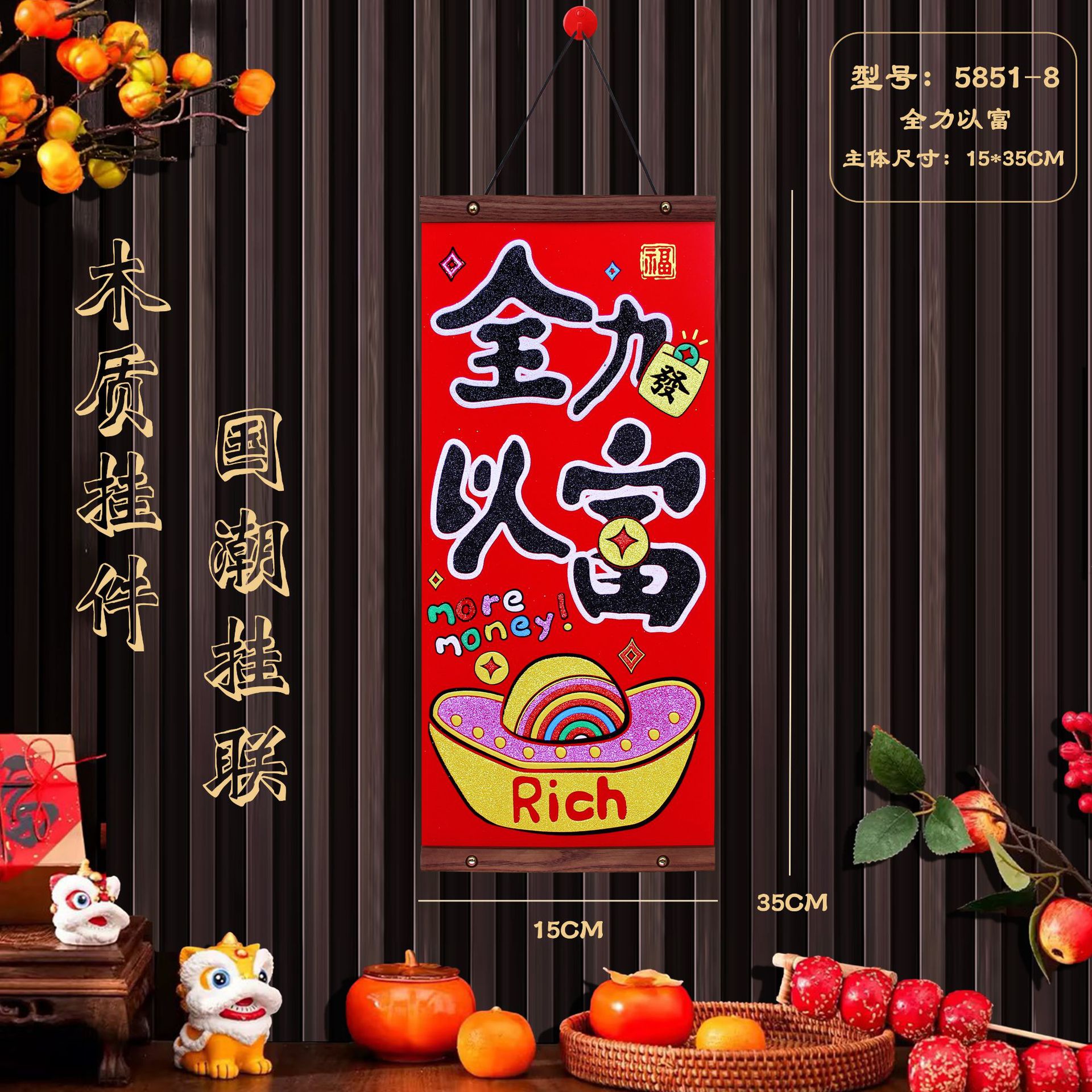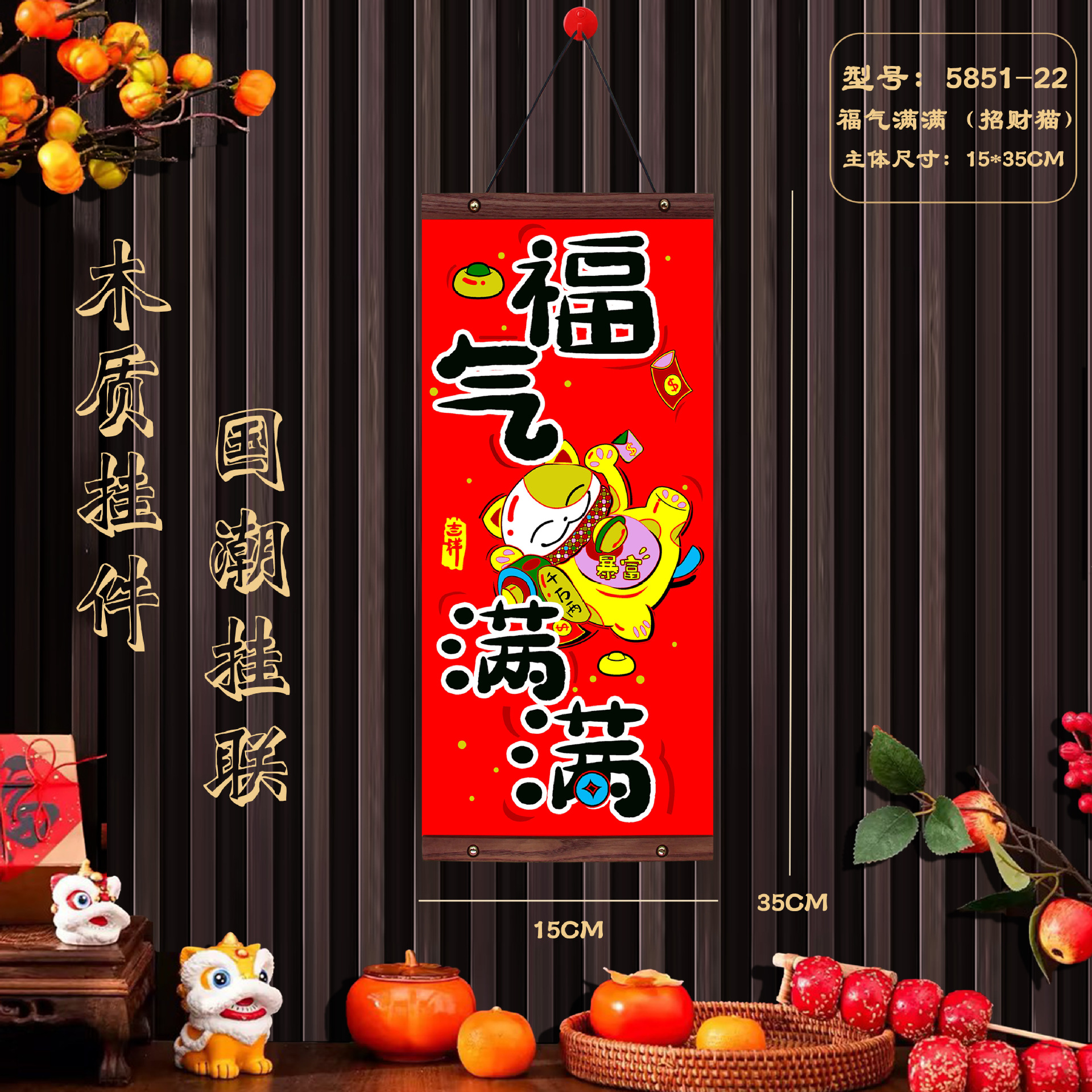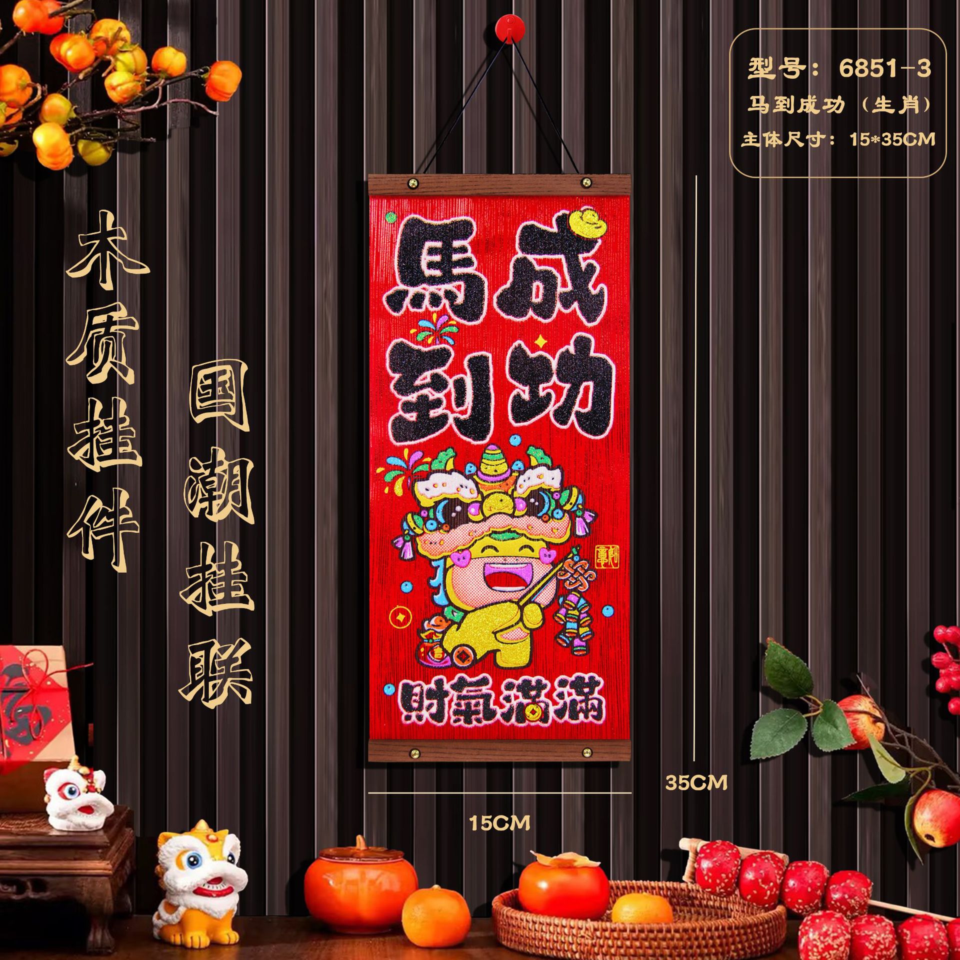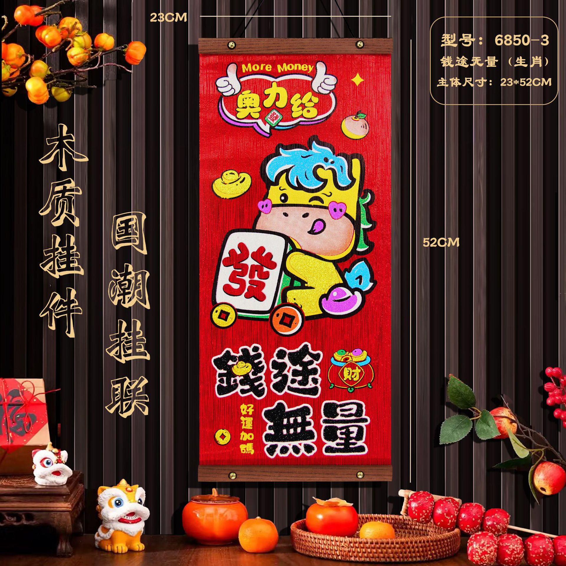 春节挂饰国潮挂联财神装饰挂画蛇年对联新年高级木质绒布挂件批发