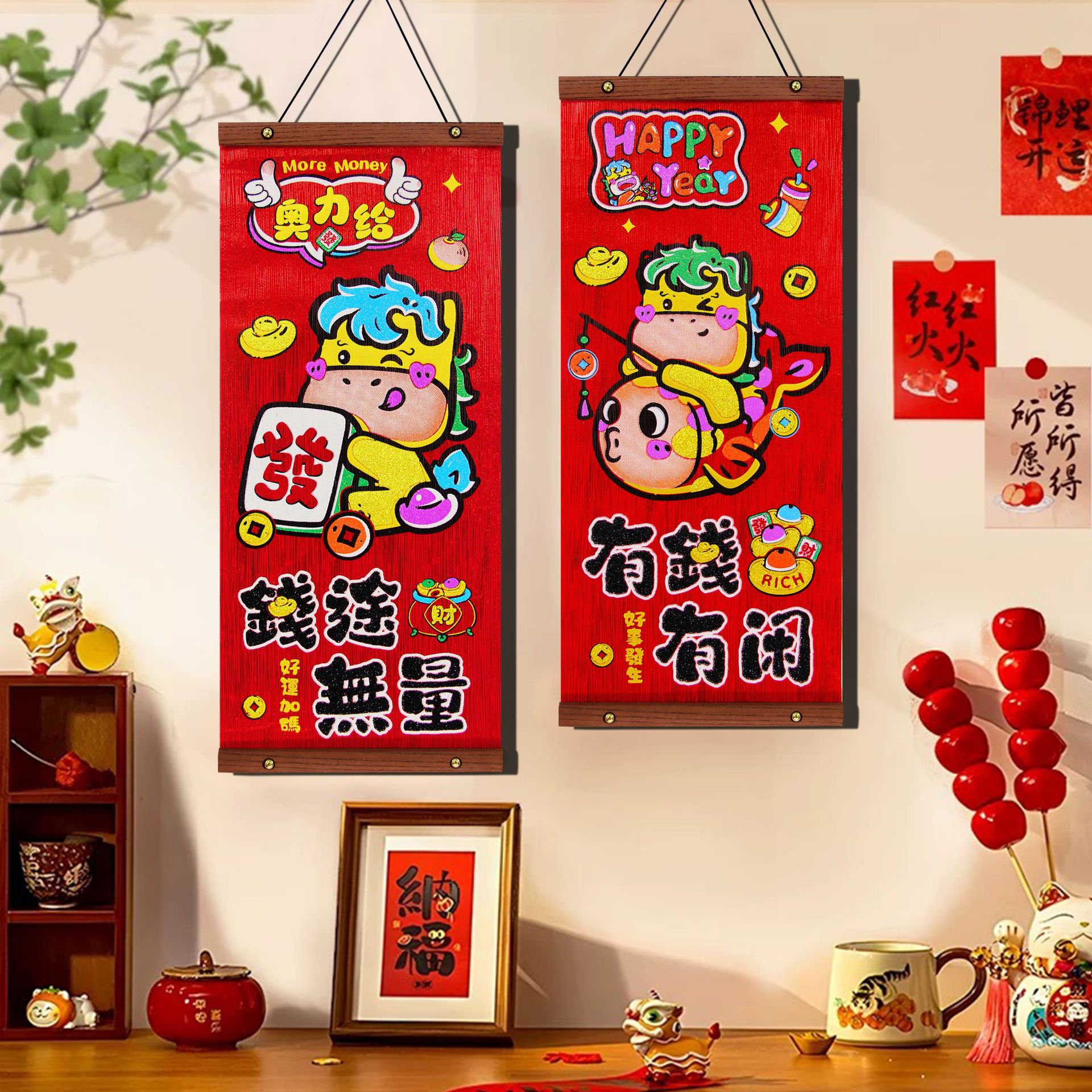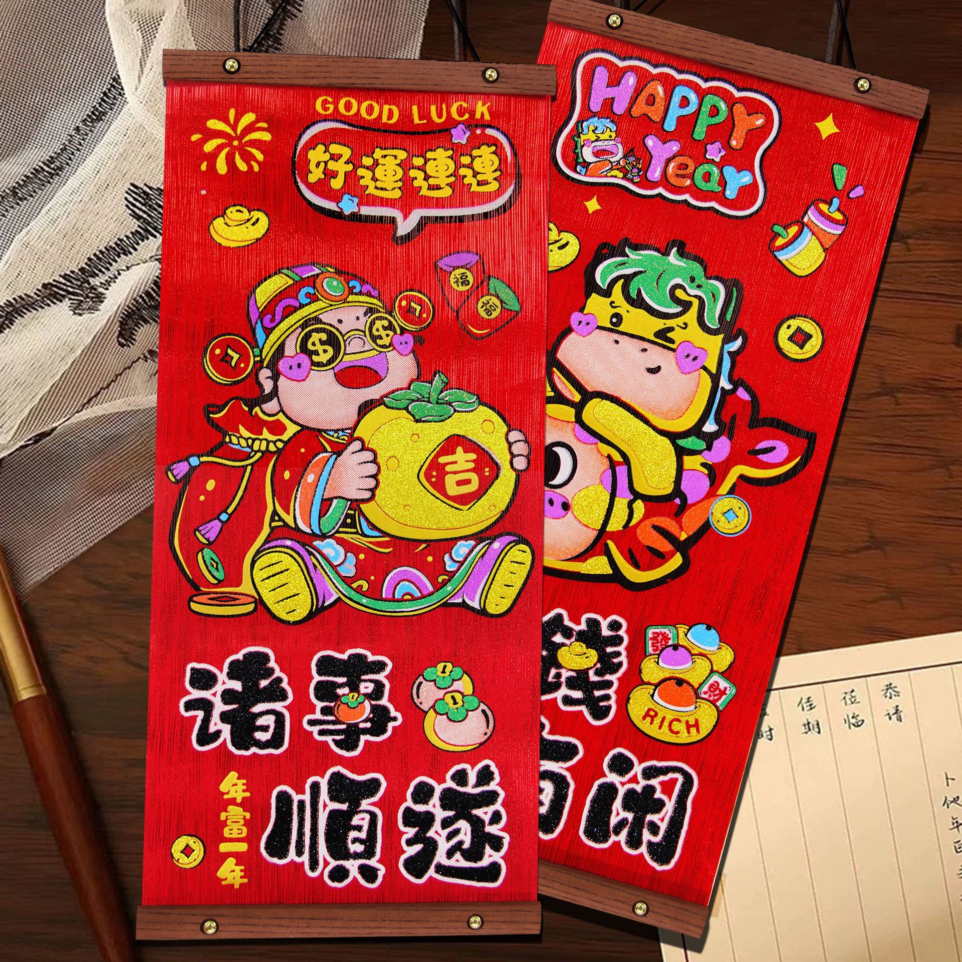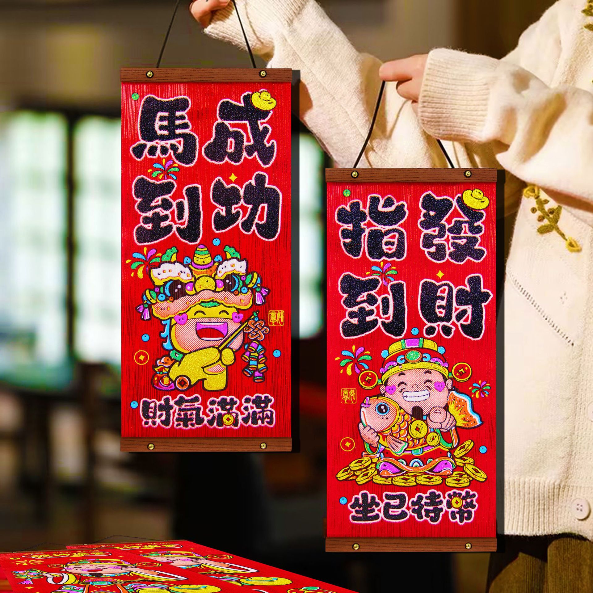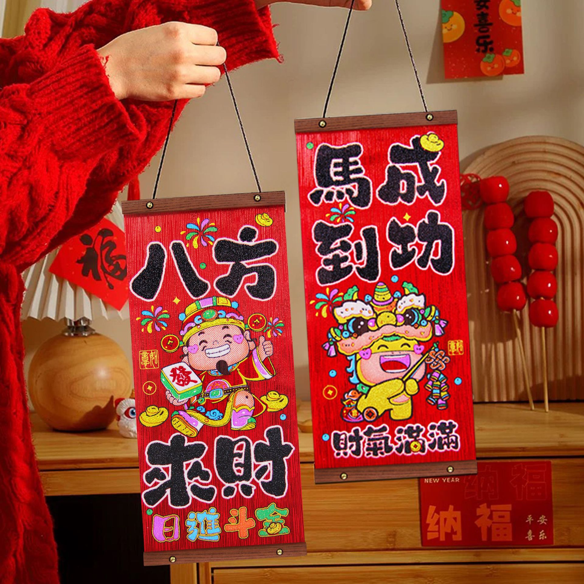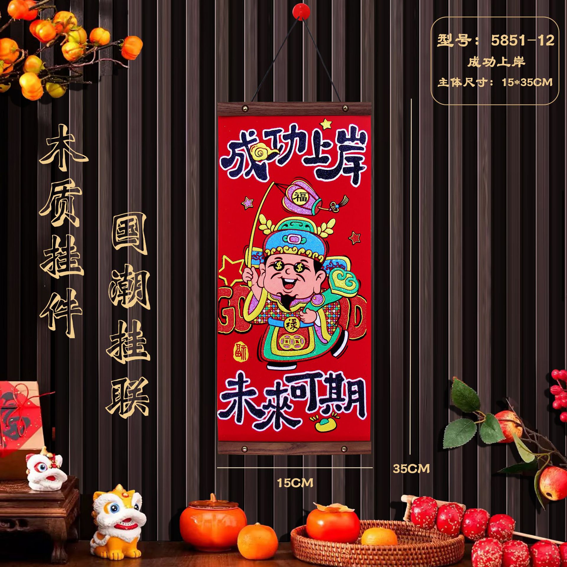 spring festival ornaments national fashion couplet god of wealth decoration hanging painting snake year couplet new year high-grade wooden flannel pendant wholesale