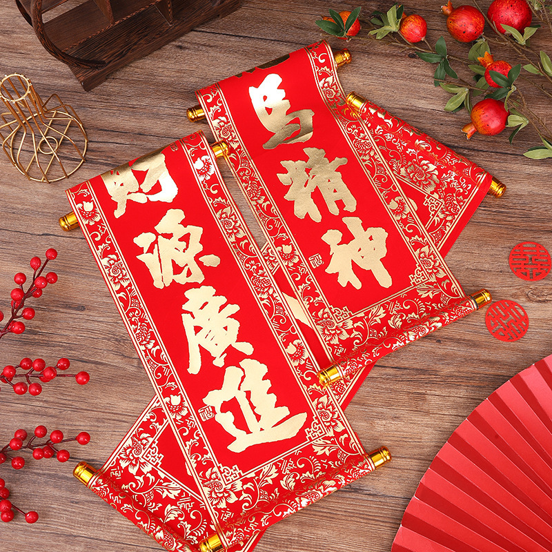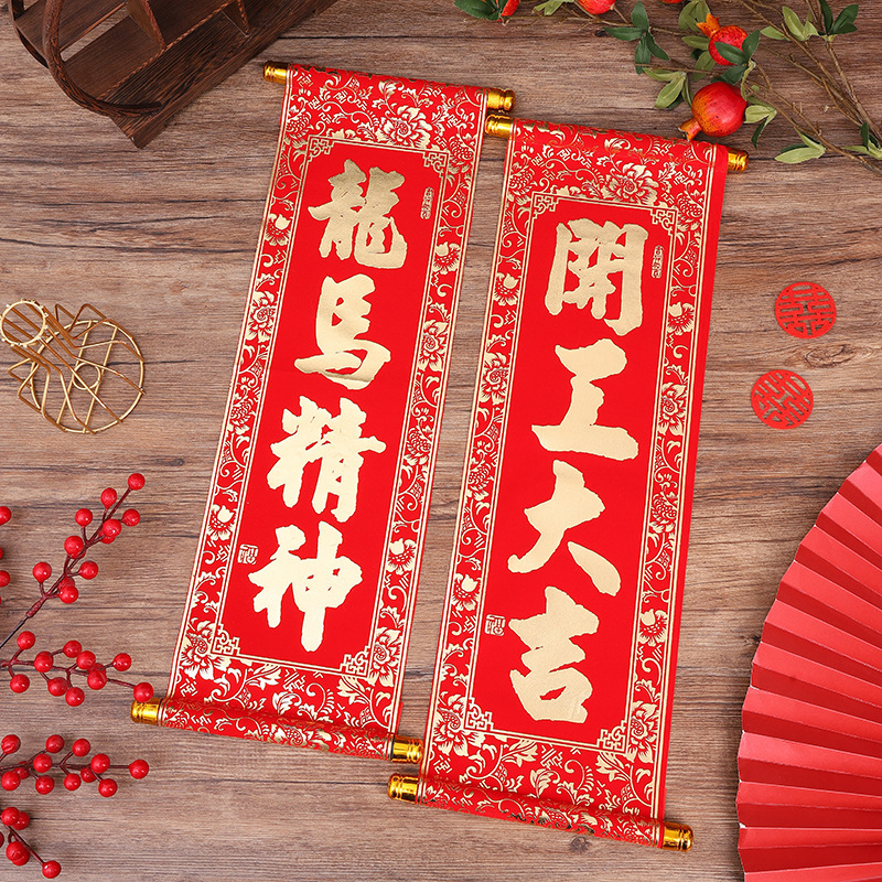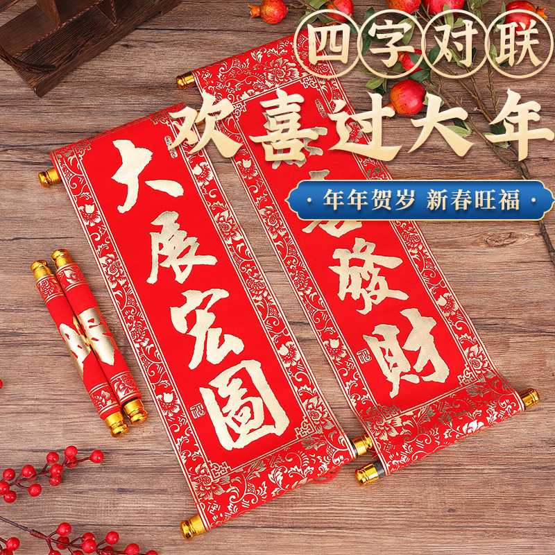 2026新年春联四字卷轴挂联绒布小对联春节贺年会跳舞表演四字挥春
