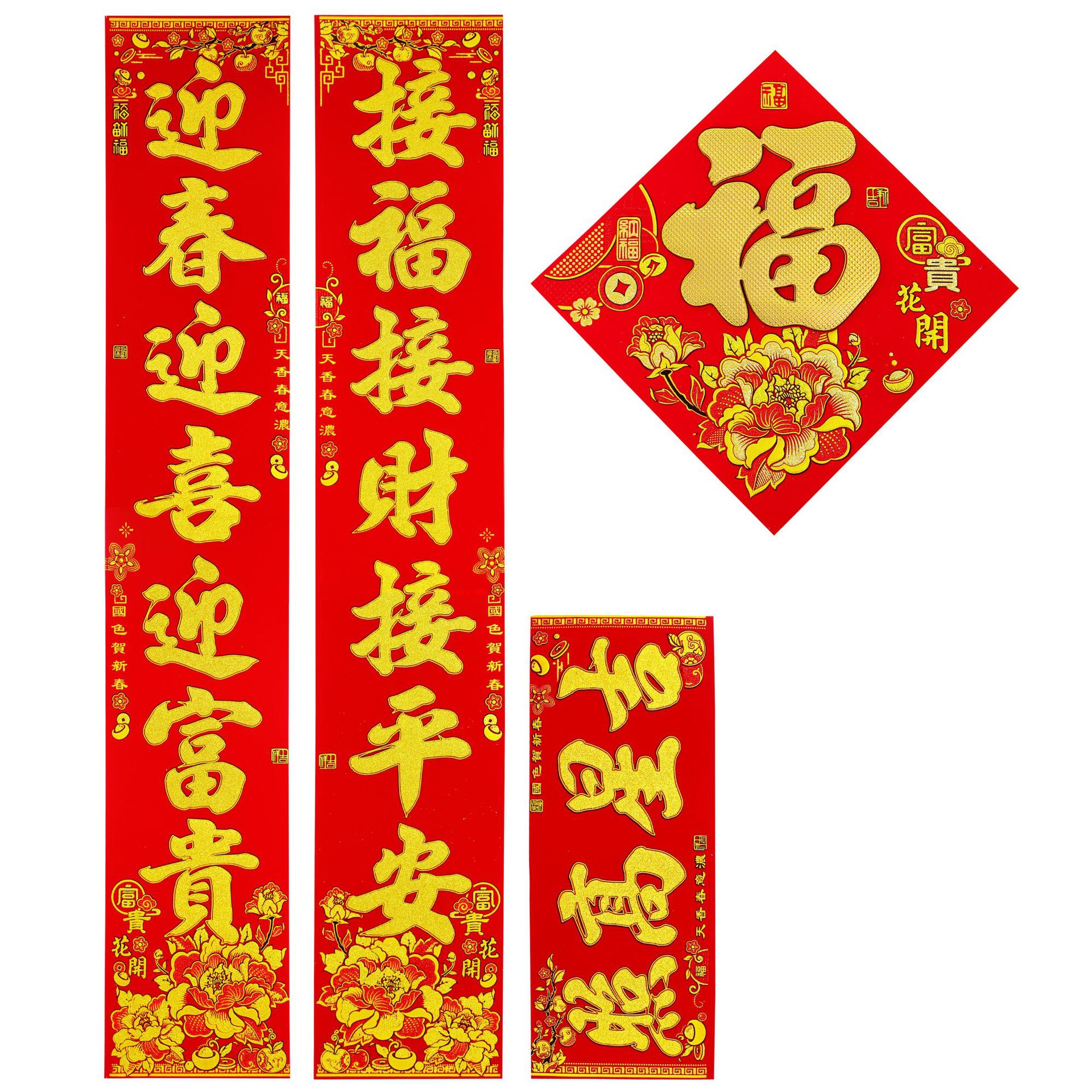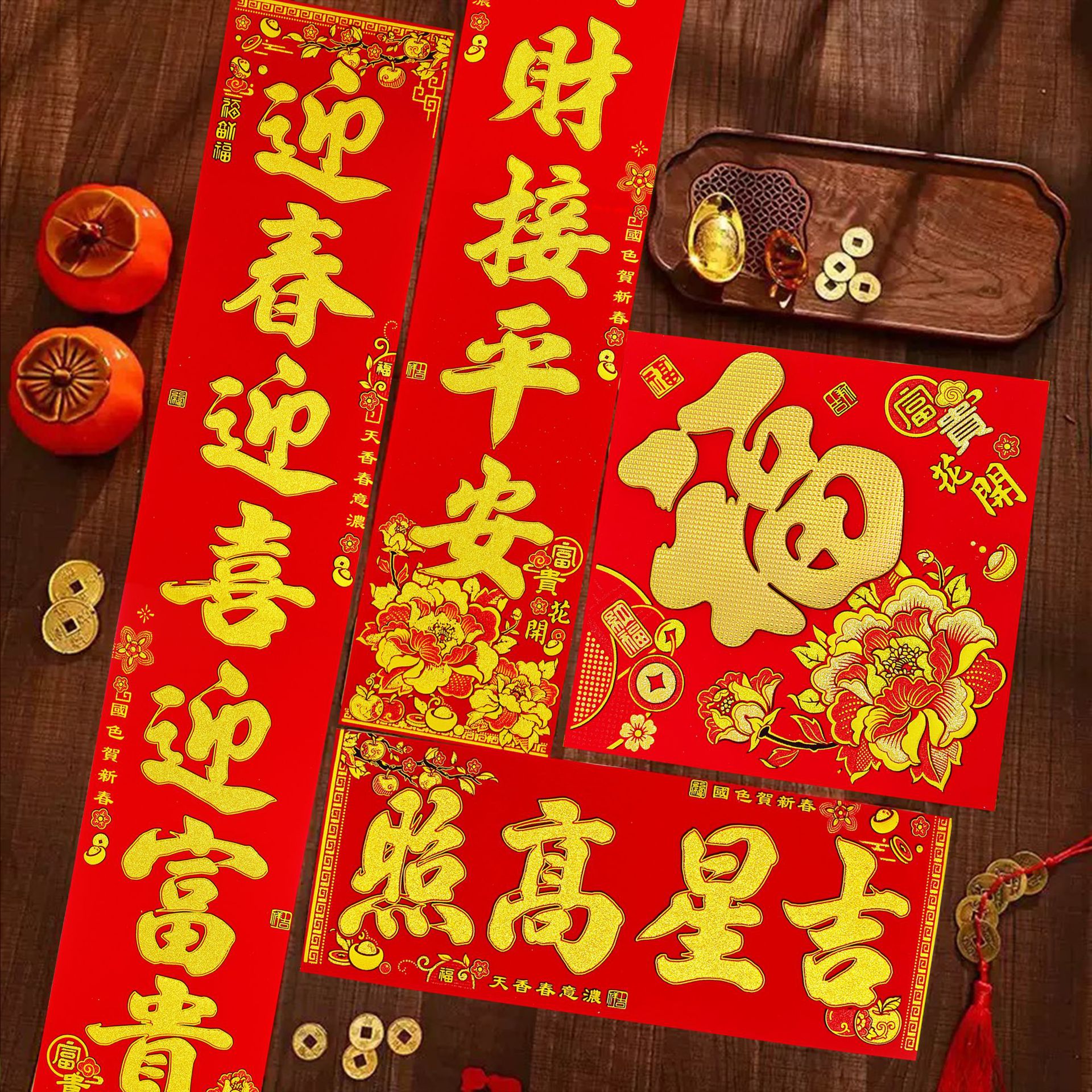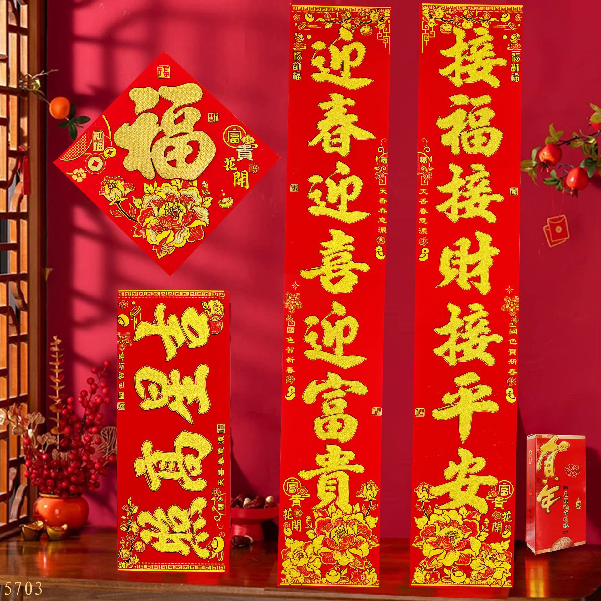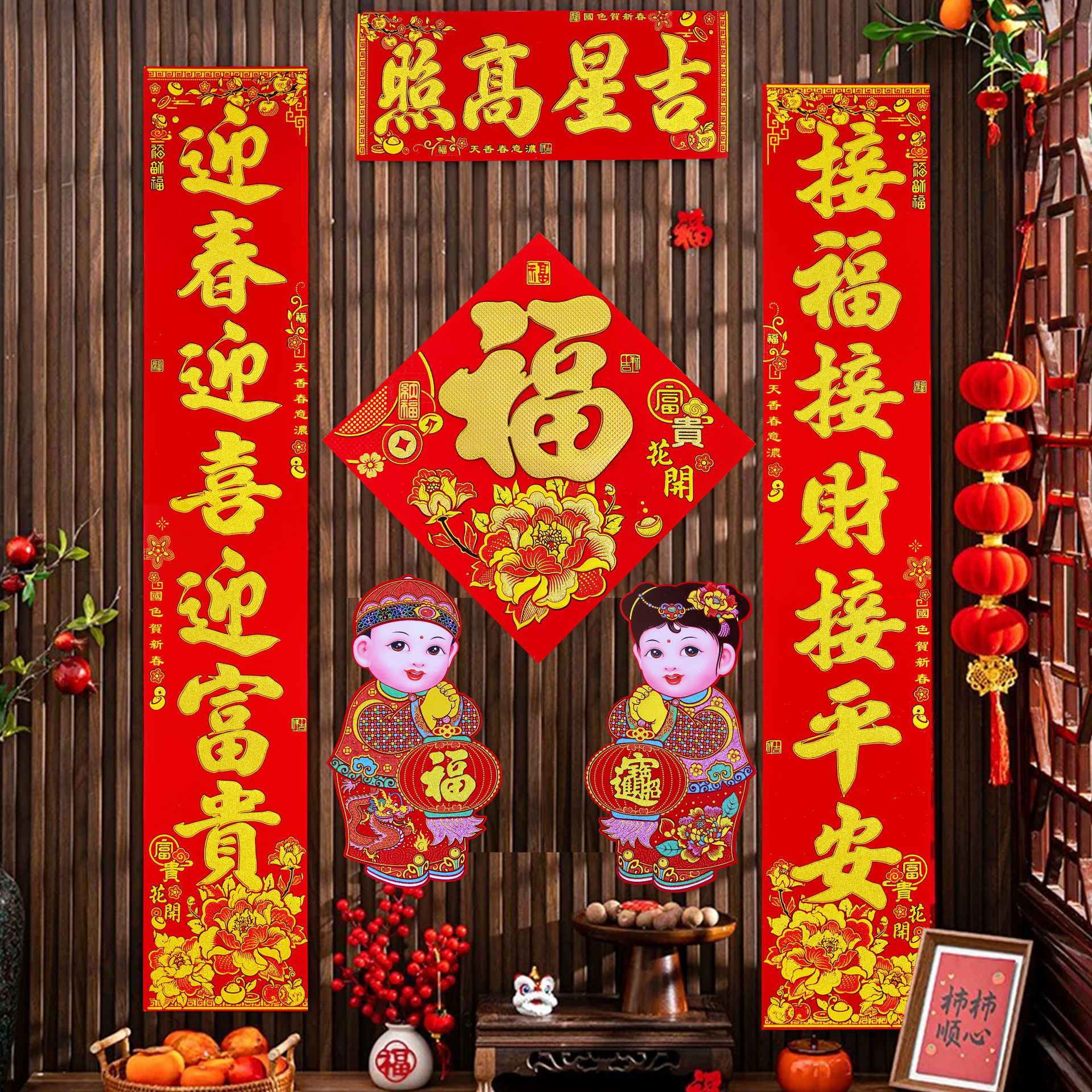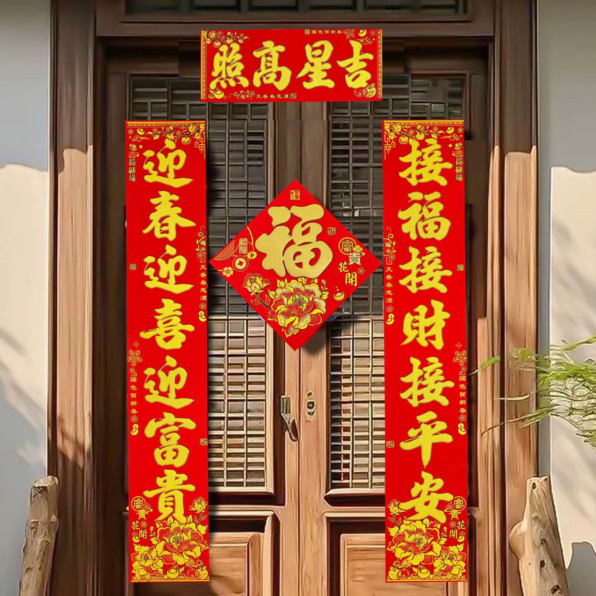春节对联批发绒布春联2025年带背胶烫金字牡丹花开富贵春联大门