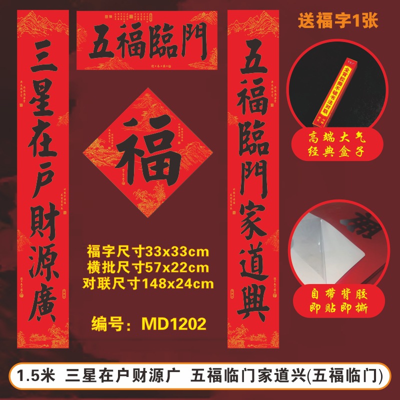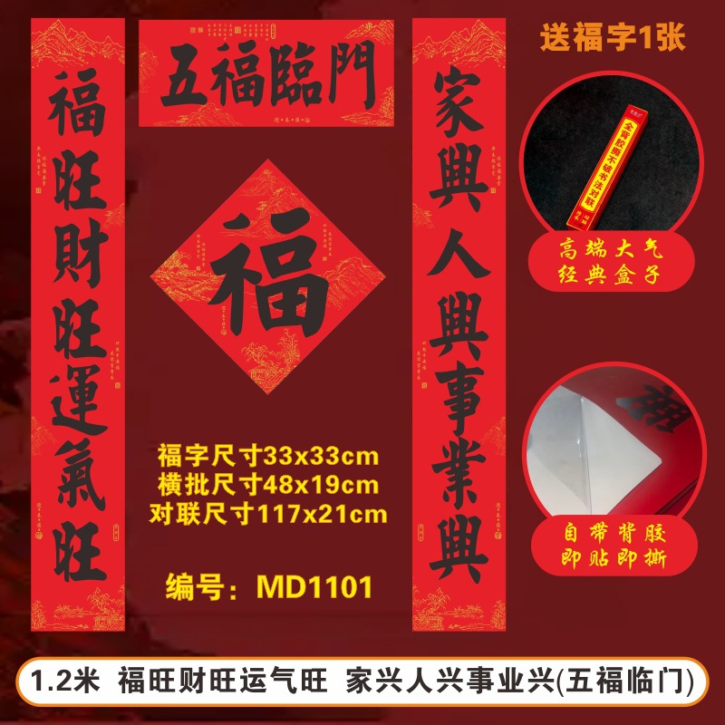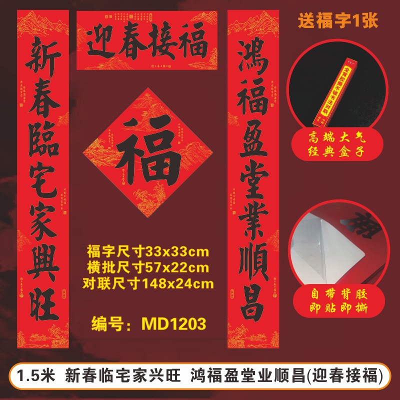 2026年对联书法黑字背胶对联耐晒不褪色撕不破大门春联厂家年货批