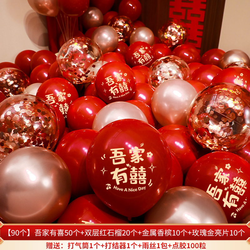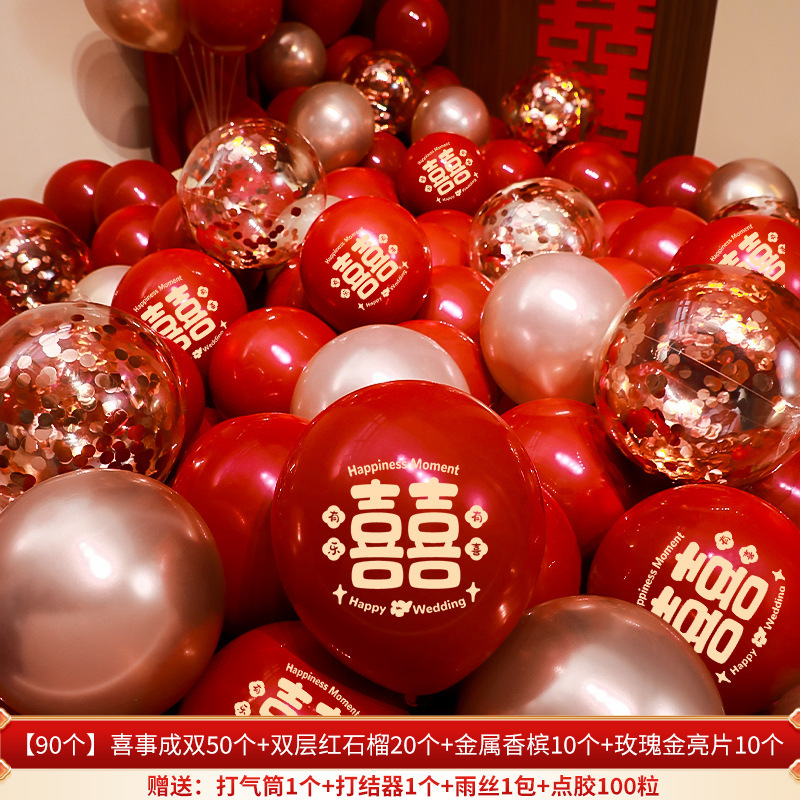 结婚气球红色婚房布置男女方客厅卧室订婚礼场景装饰婚庆用品大全