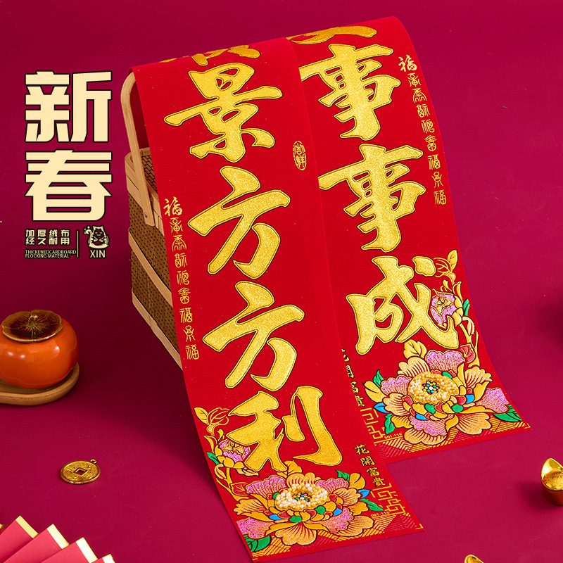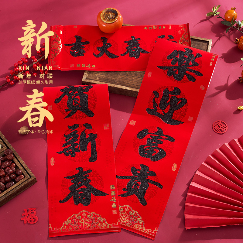 春节绒布对联2026马年植绒家用大门喜庆装饰新年过年铜版纸新春联