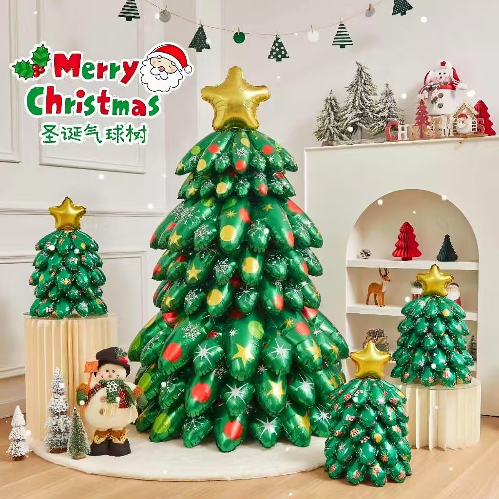 圣诞节装饰充气铝膜气球圣诞树商场店铺户外摆件道具氛围场景布置