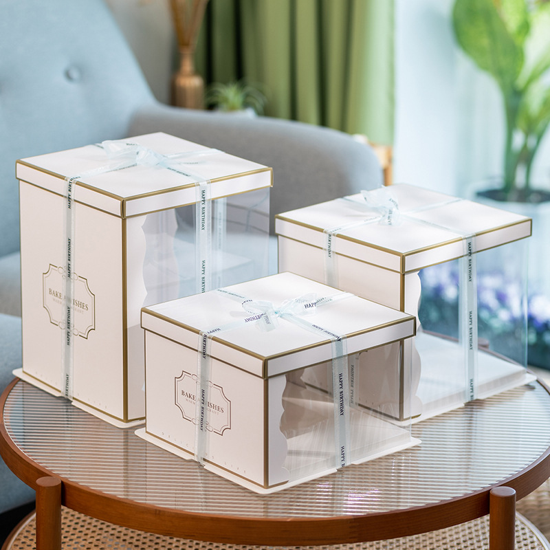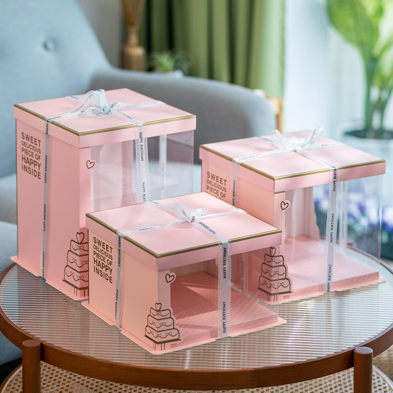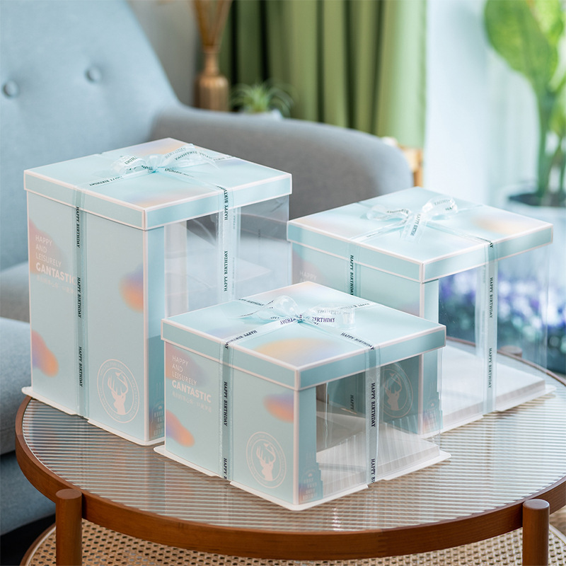 批发6寸8寸10寸12寸生日蛋糕盒盒子半透明包装盒小方形双层加高