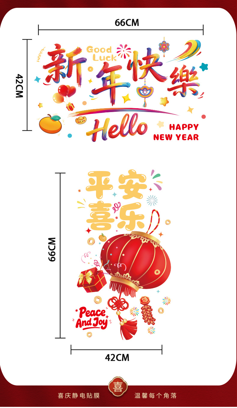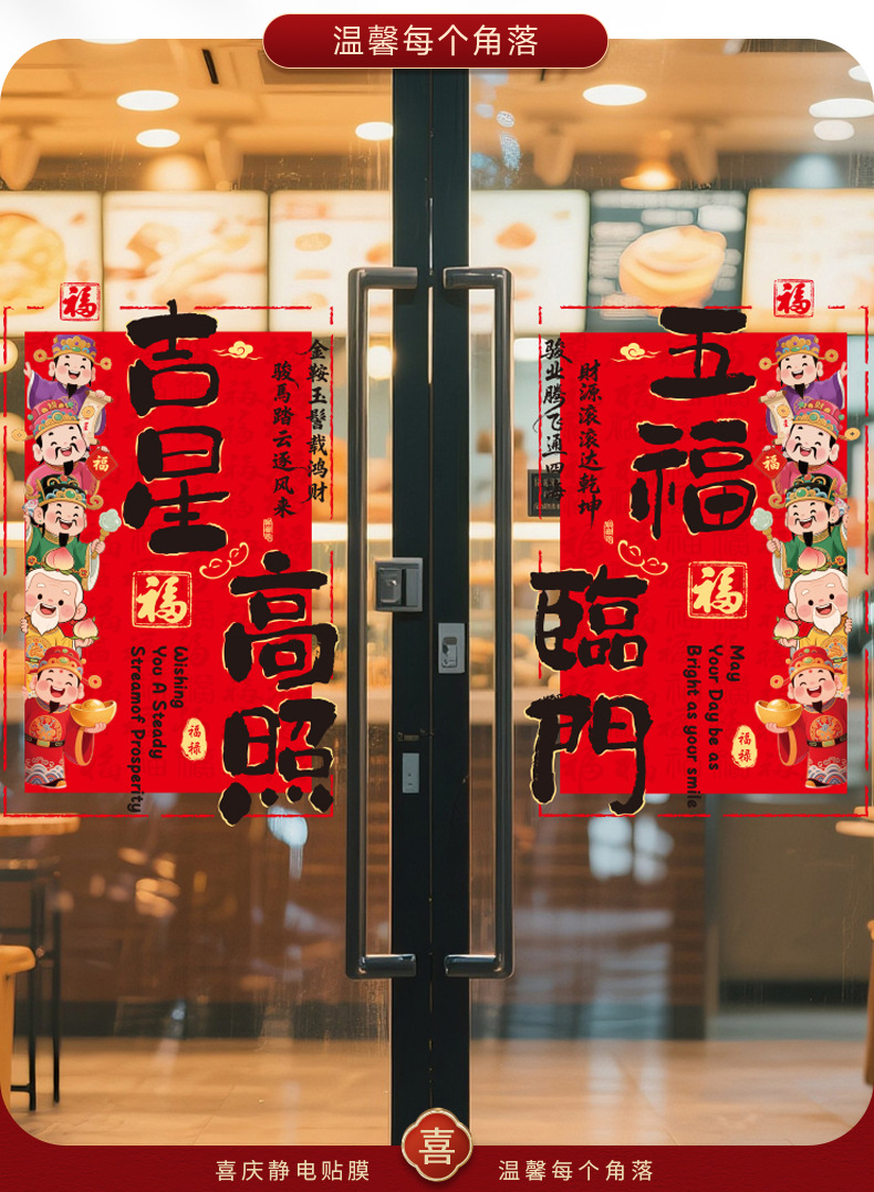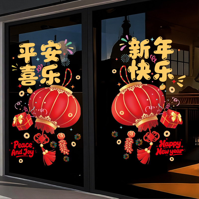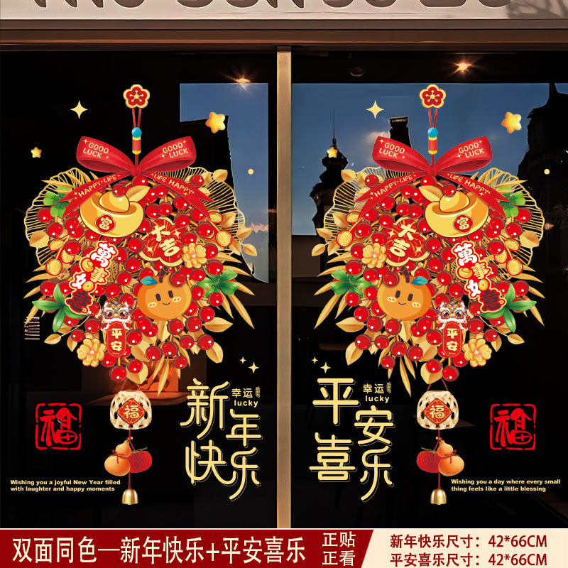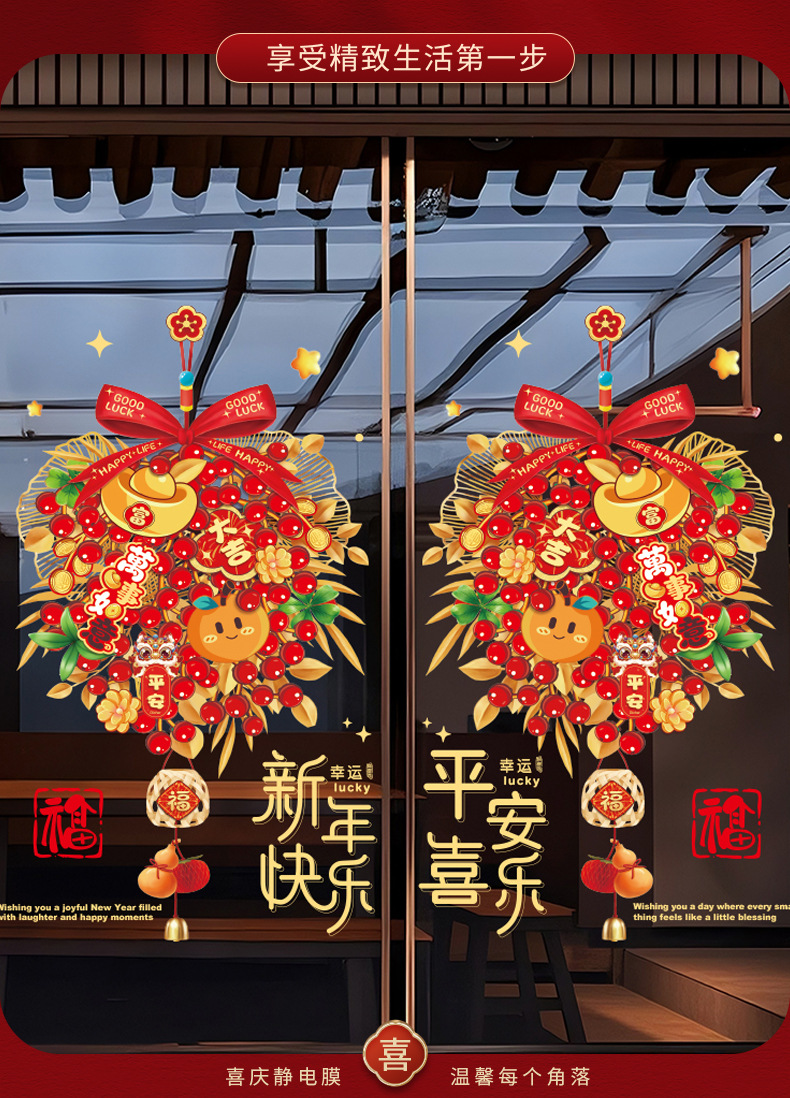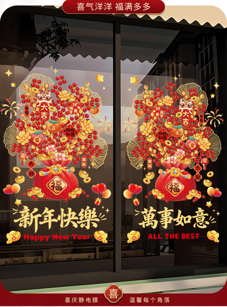 春节静电贴纸马年窗花2026元旦商场景布置店铺玻璃贴橱窗贴福字贴