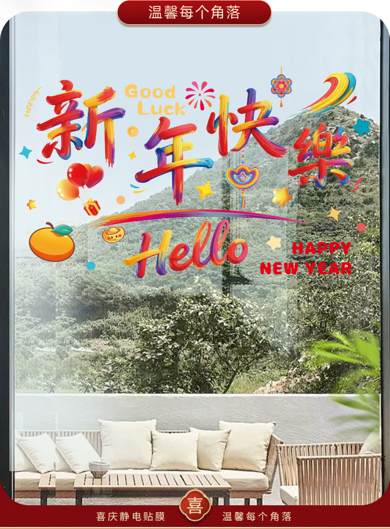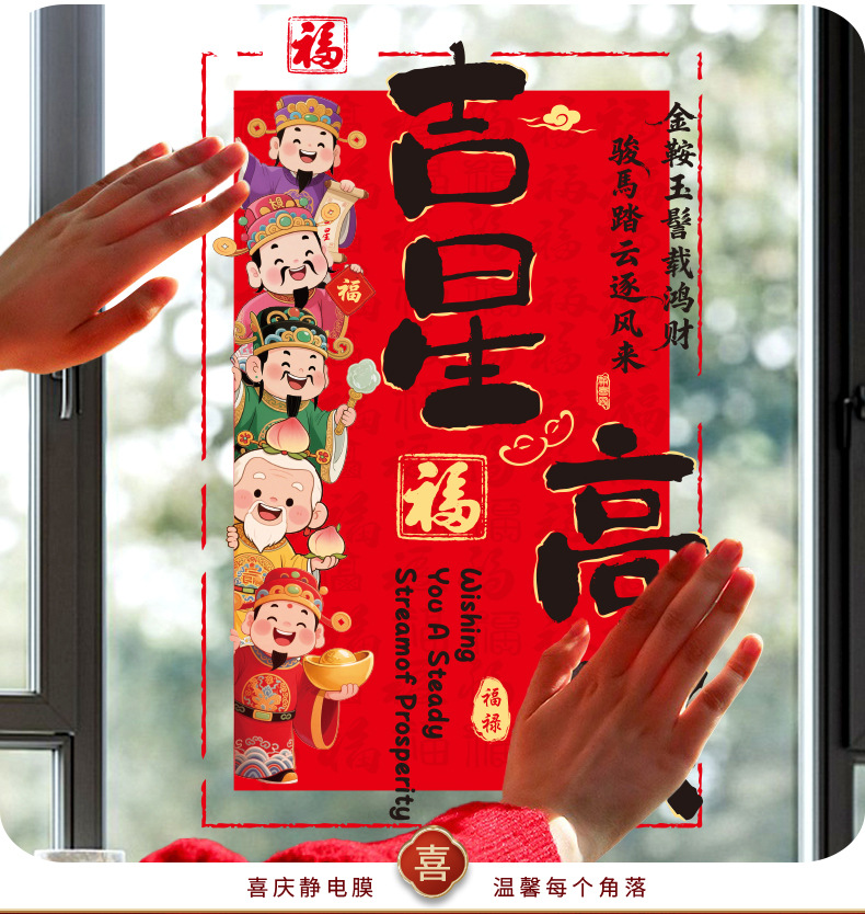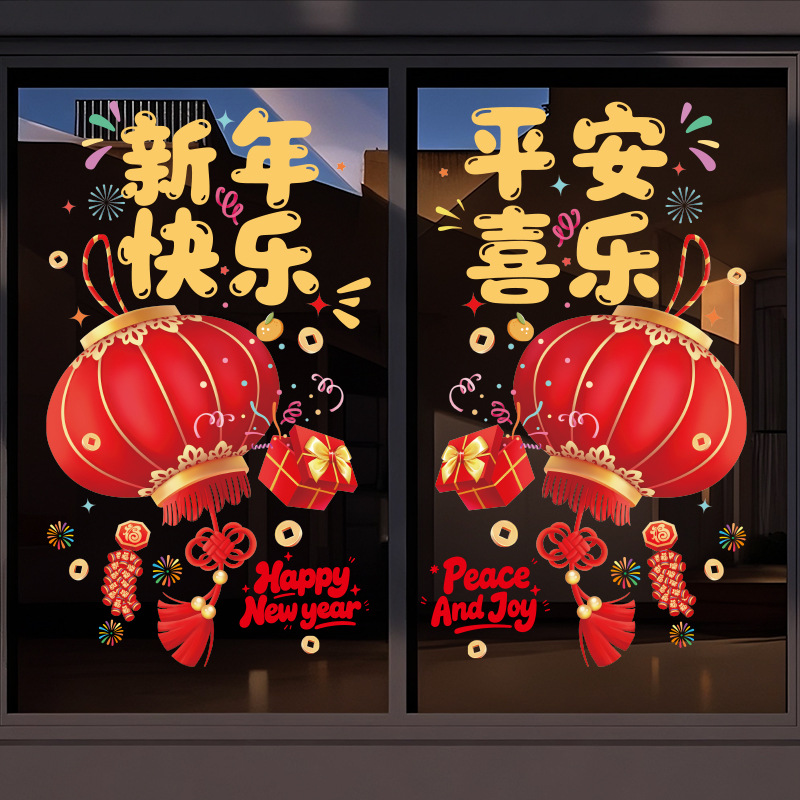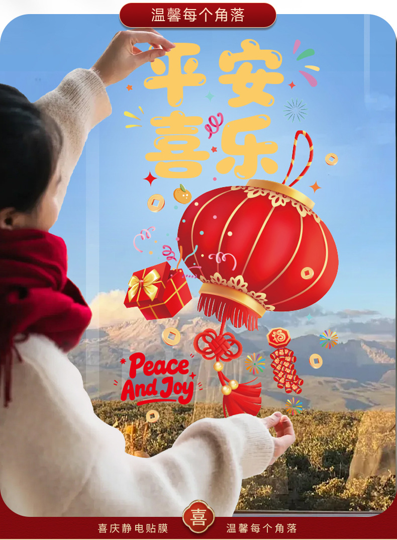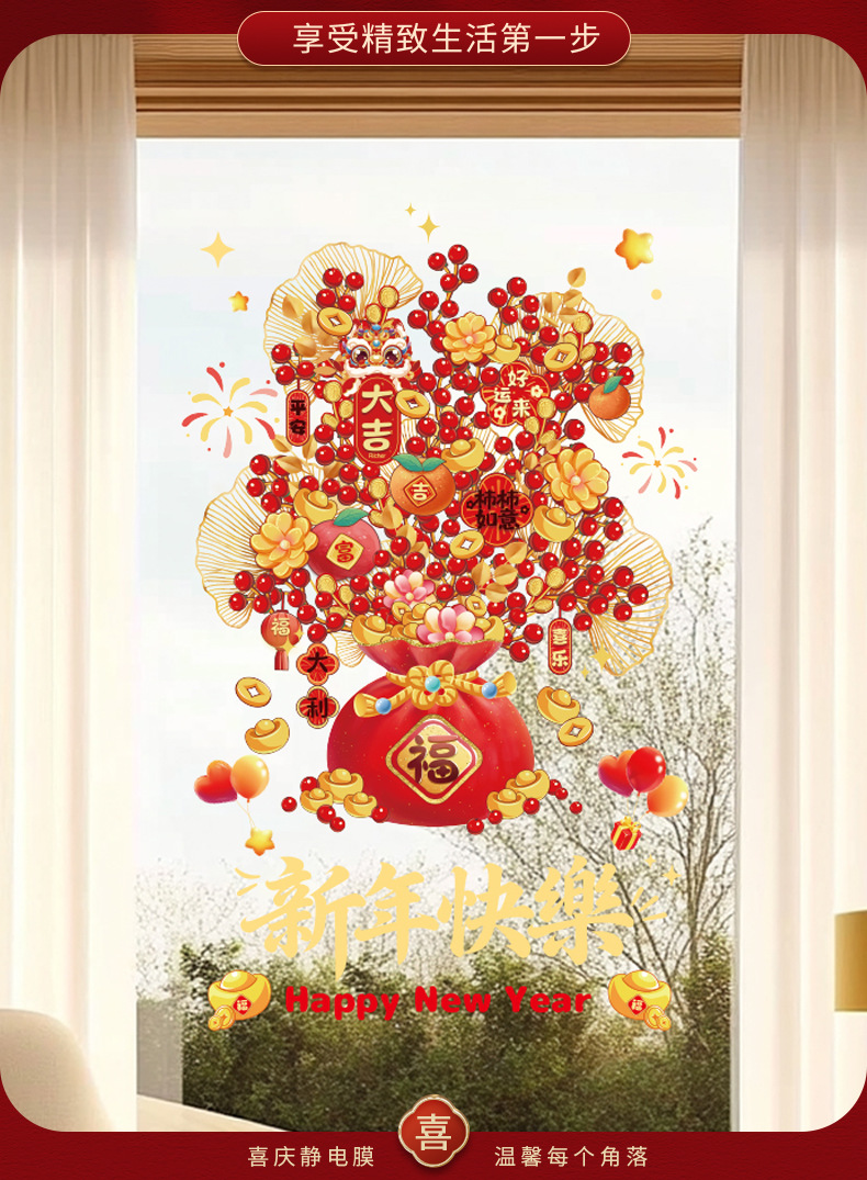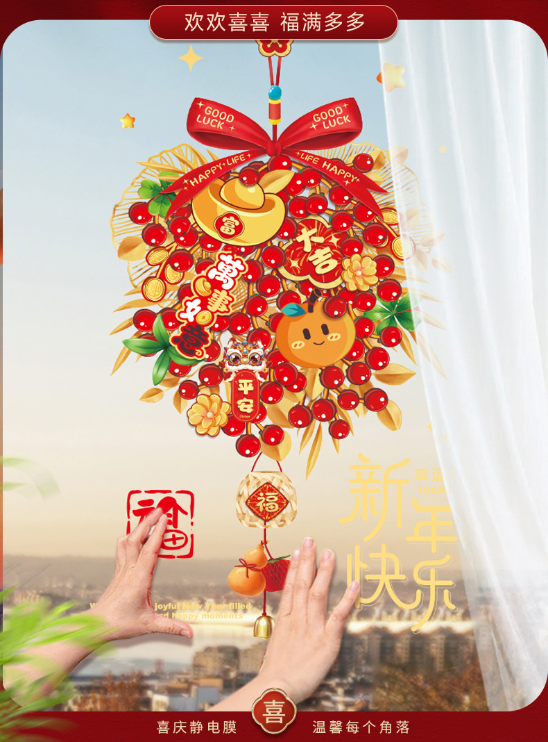 春节静电贴纸马年窗花2026元旦商场景布置店铺玻璃贴橱窗贴福字贴