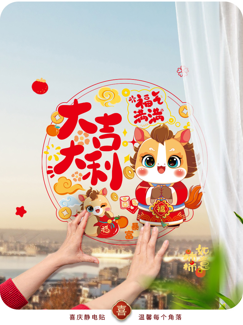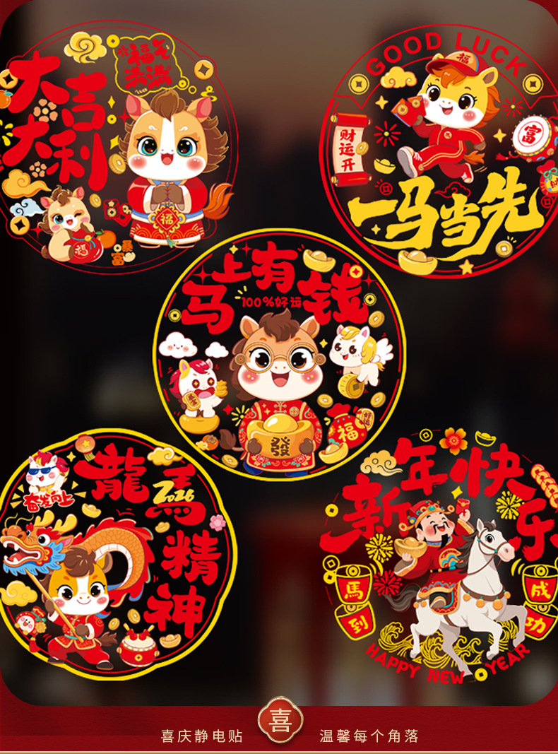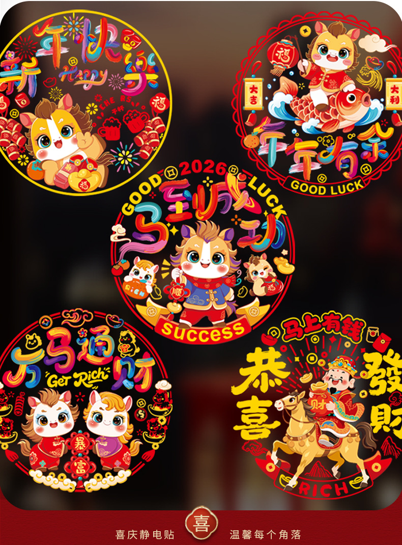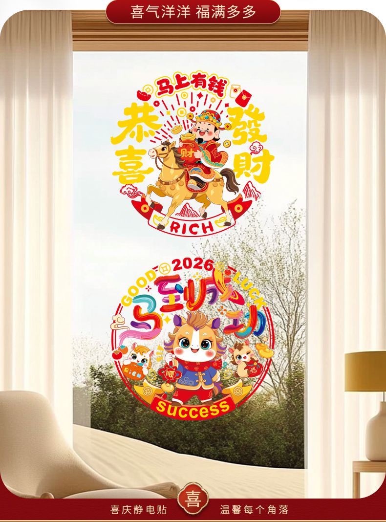 马年静电贴2026新款福字门贴春节玻璃贴过年布置装饰新年窗花窗贴