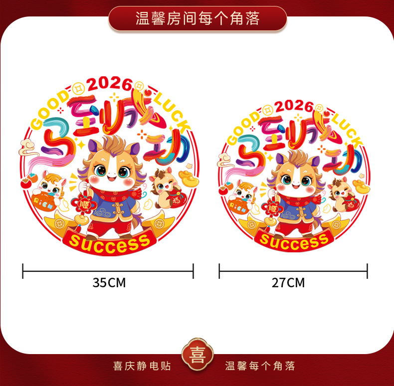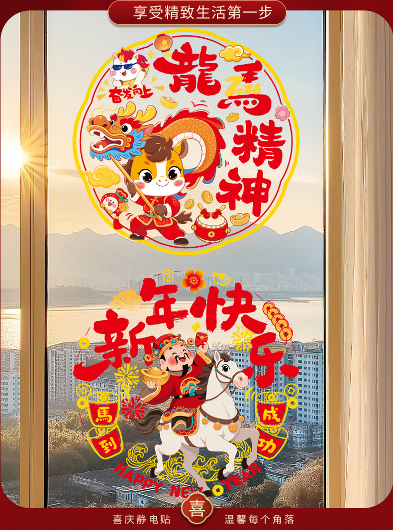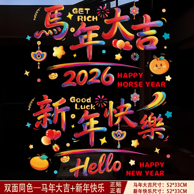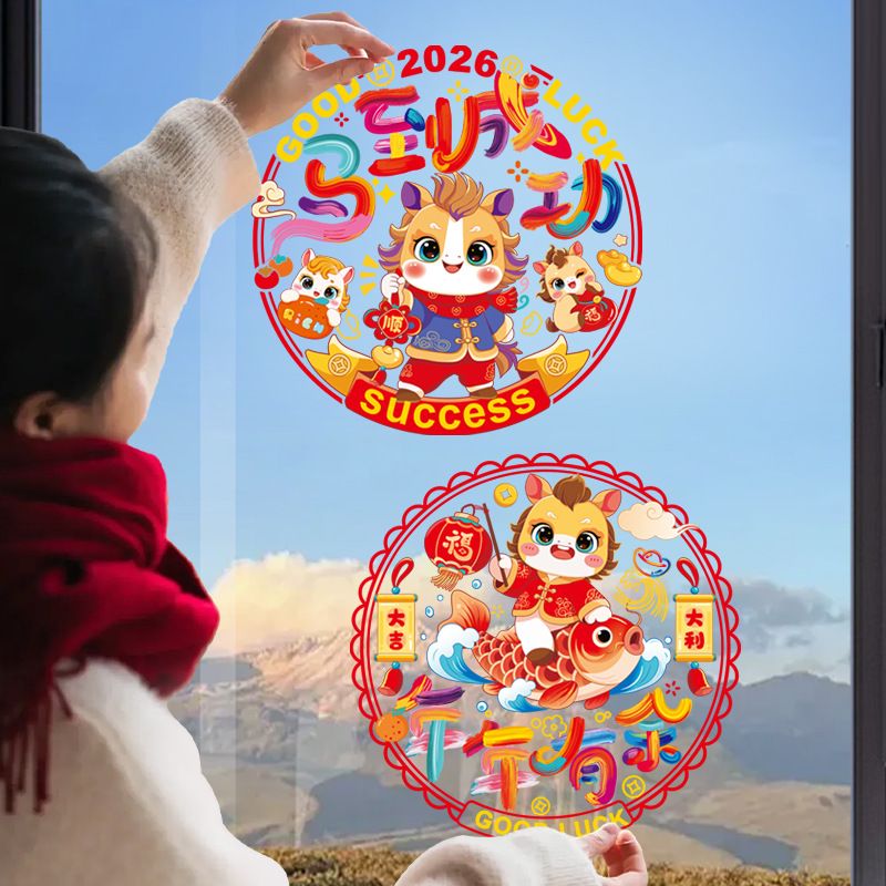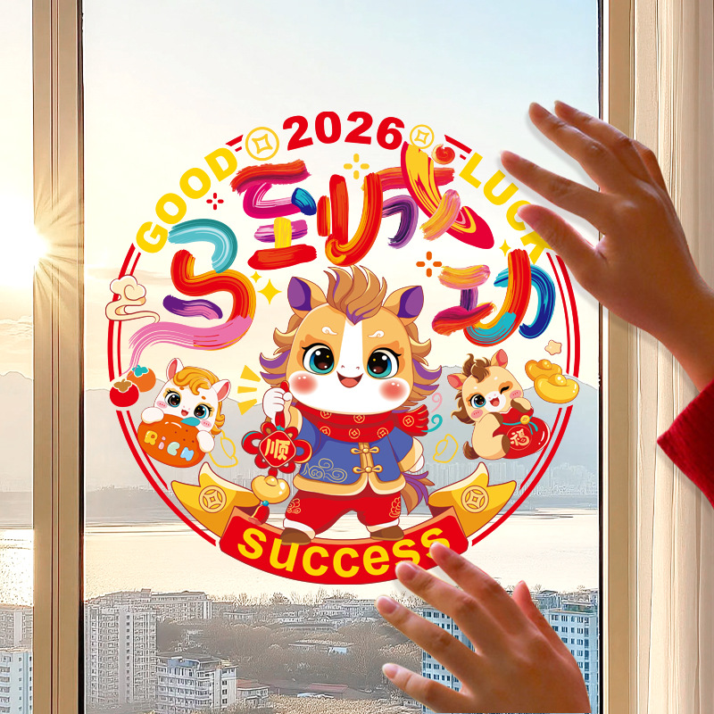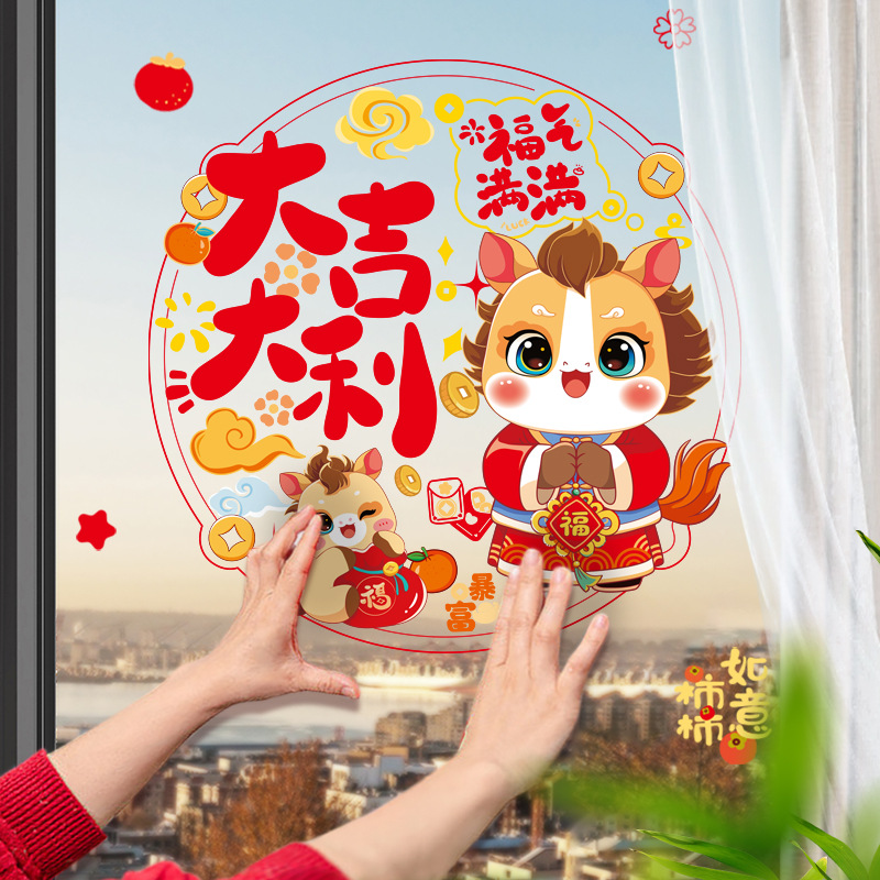 马年静电贴2026新款福字门贴春节玻璃贴过年布置装饰新年窗花窗贴