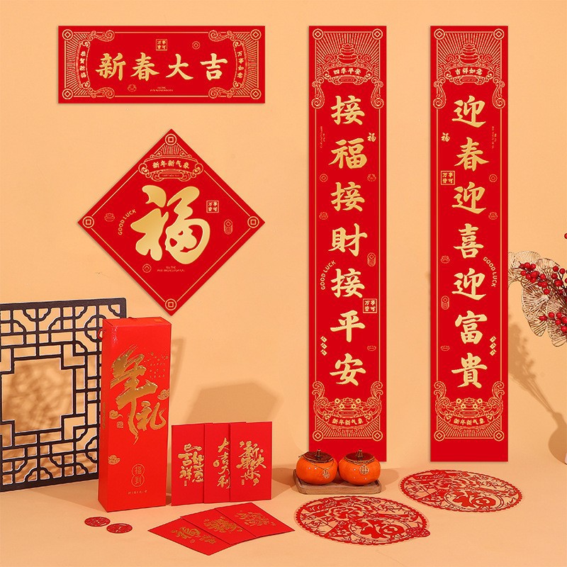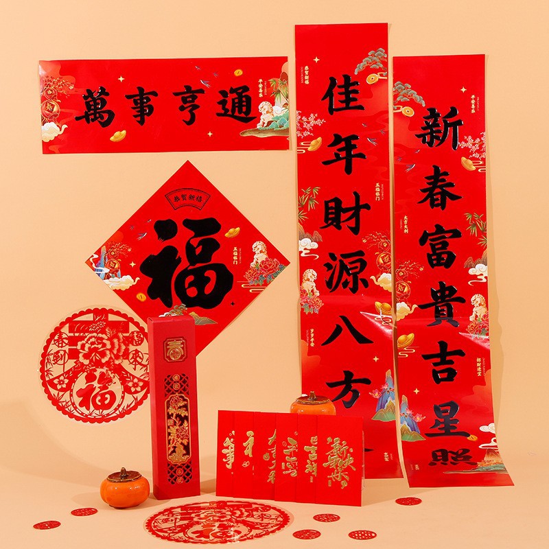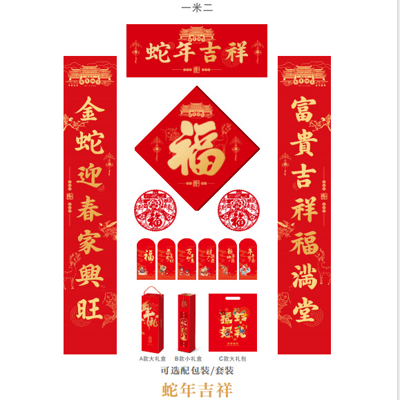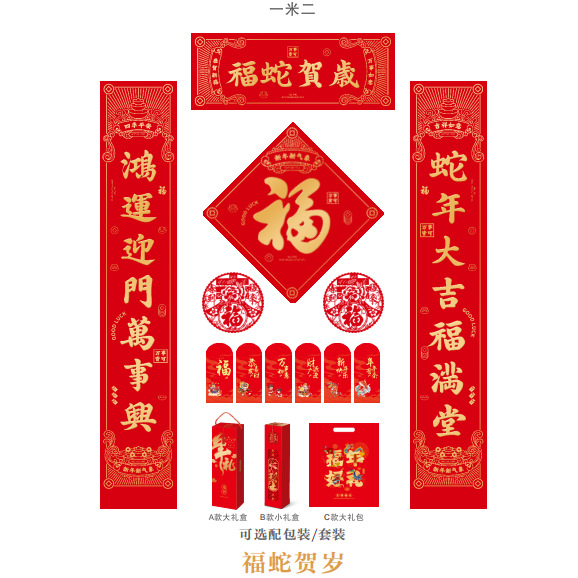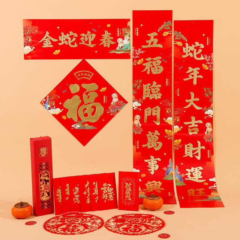 2025蛇年植绒对联定制烫金对联大礼包批发新年春联套装定制LOGO
