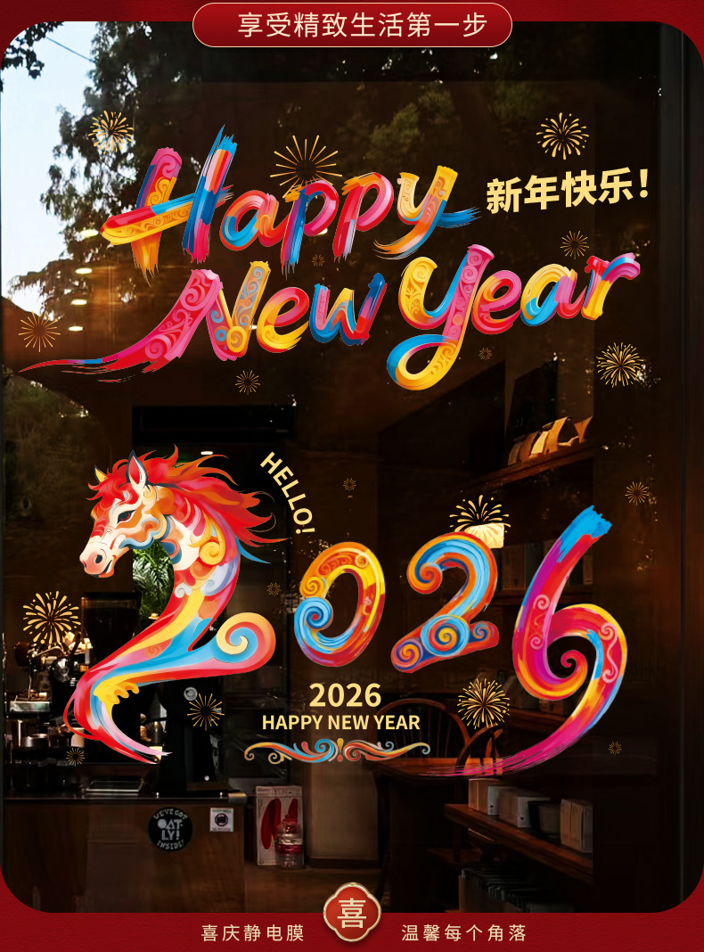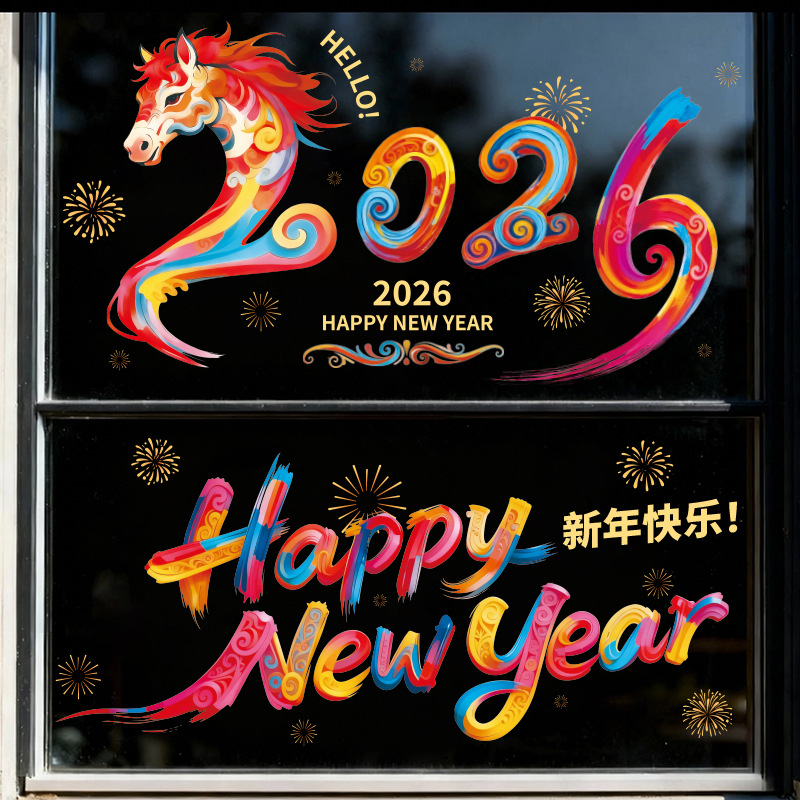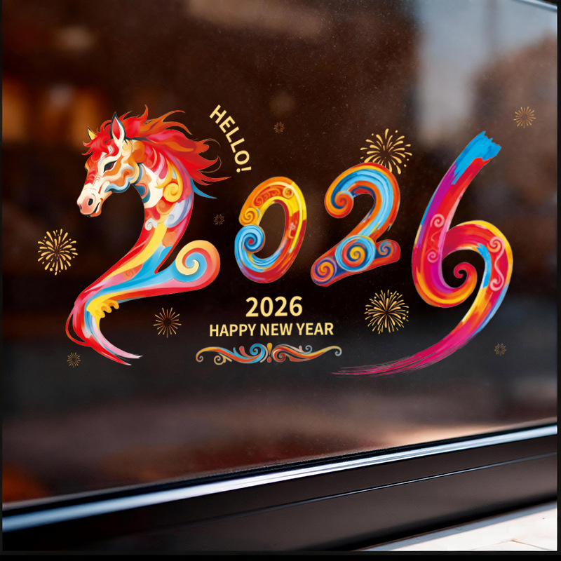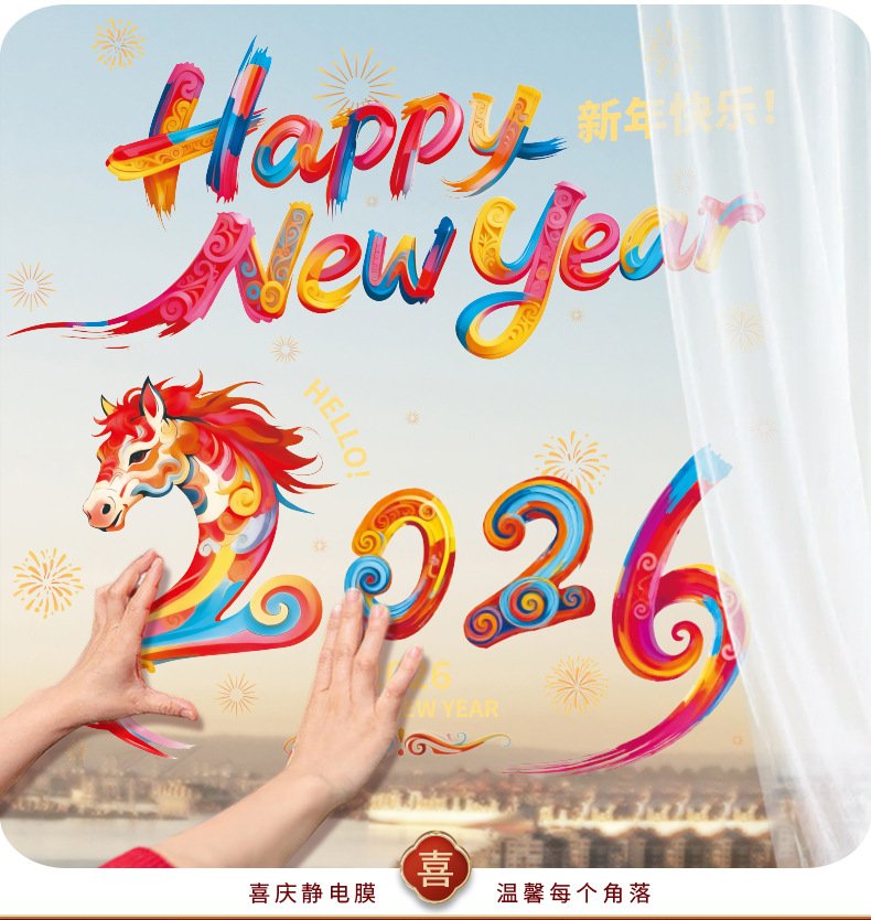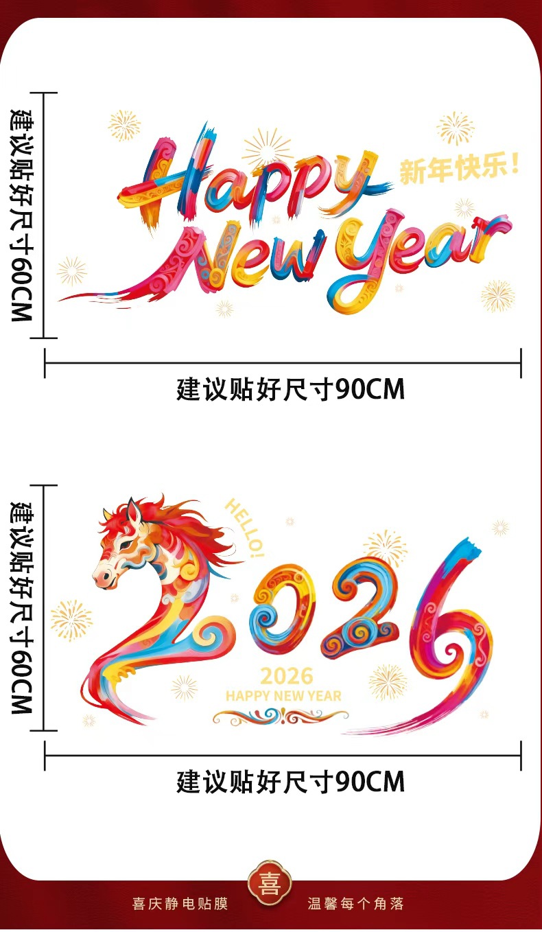 2026马年玻璃贴新年窗户静电贴纸多巴胺窗花窗贴春节过年福字装饰