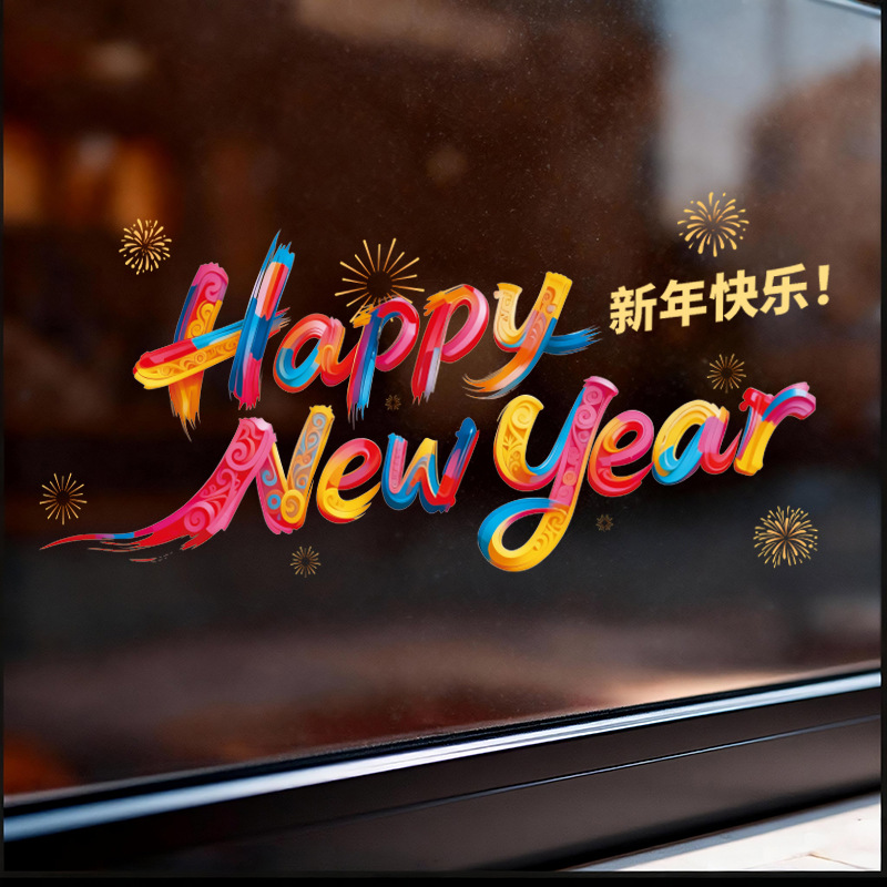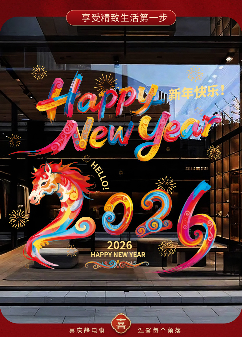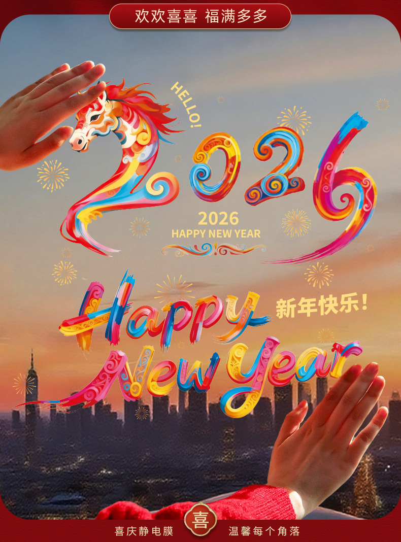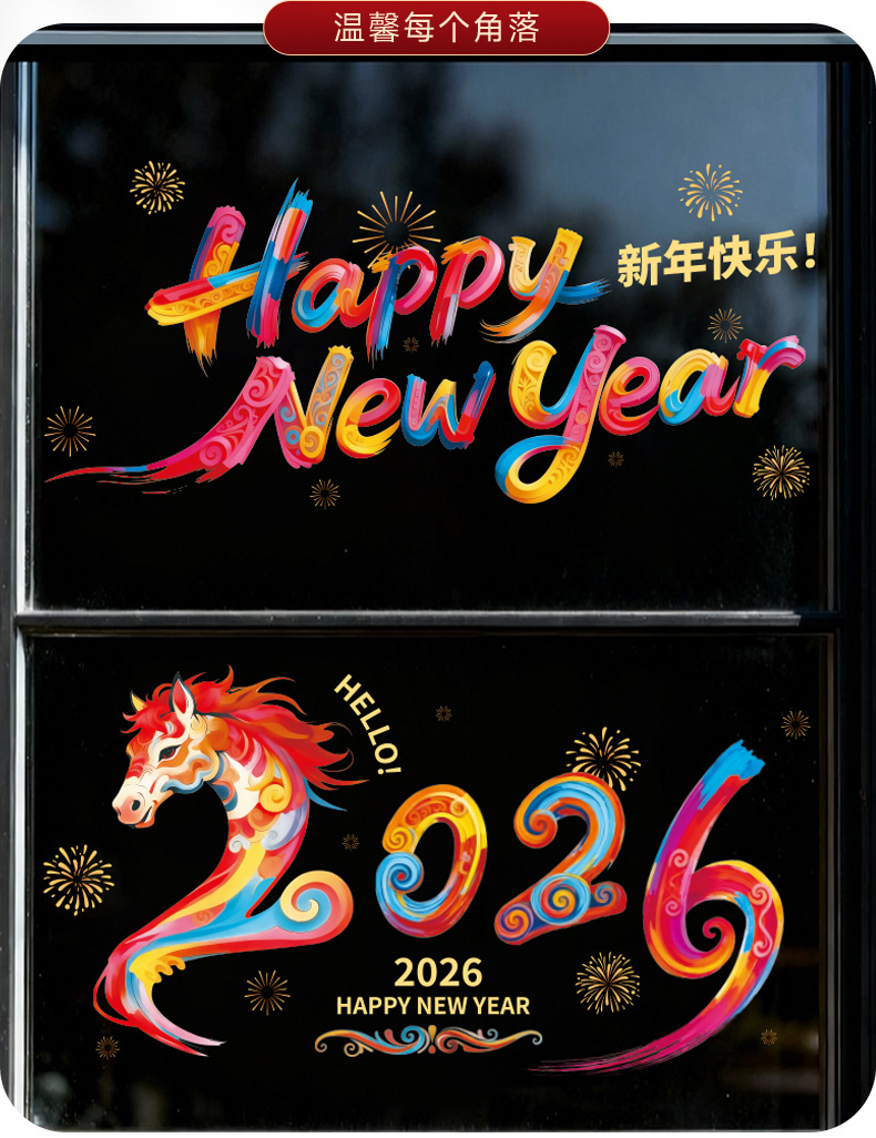 2026马年玻璃贴新年窗户静电贴纸多巴胺窗花窗贴春节过年福字装饰