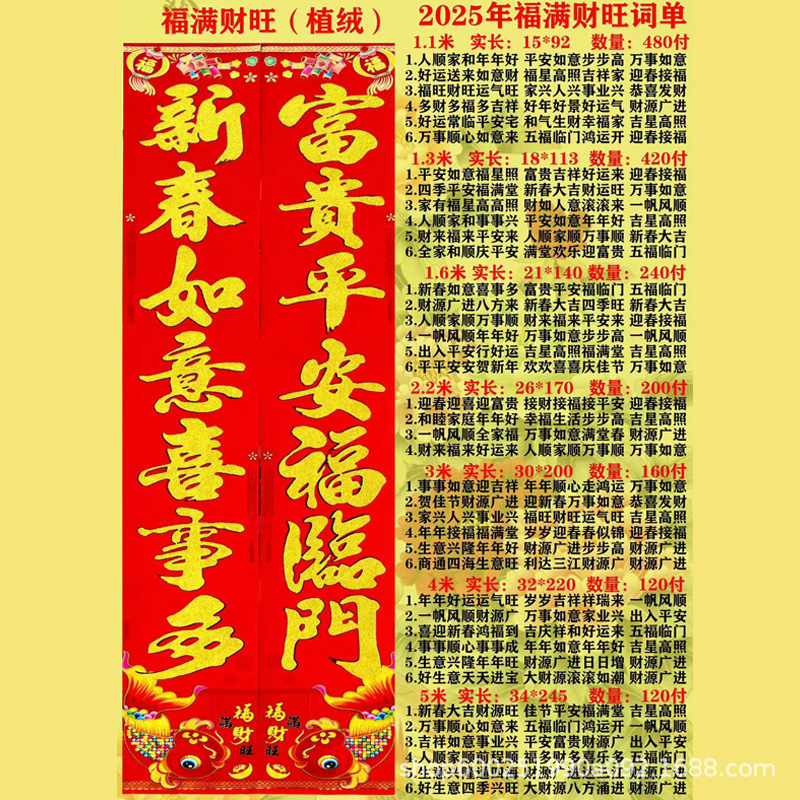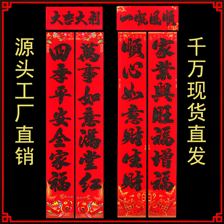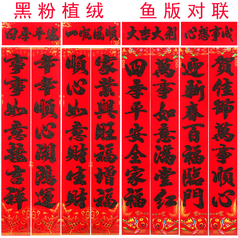 2026马年春节对联新款高档植绒撒金粉对联黑字对联春联厂家批发