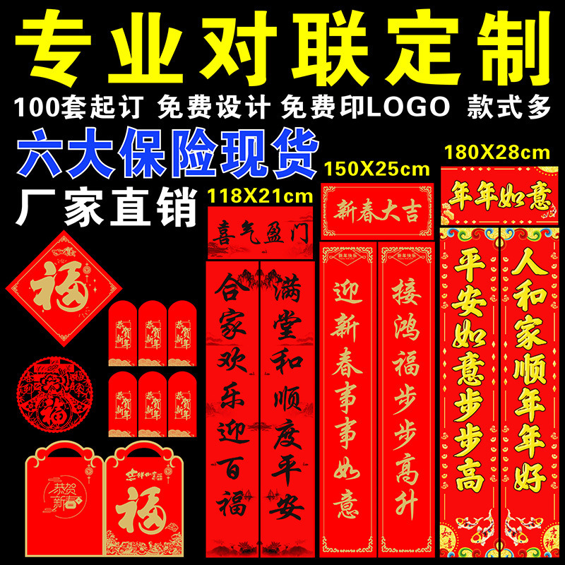 2026广告对联定制马年企业春联定做福字大礼包现货烫金保险印logo