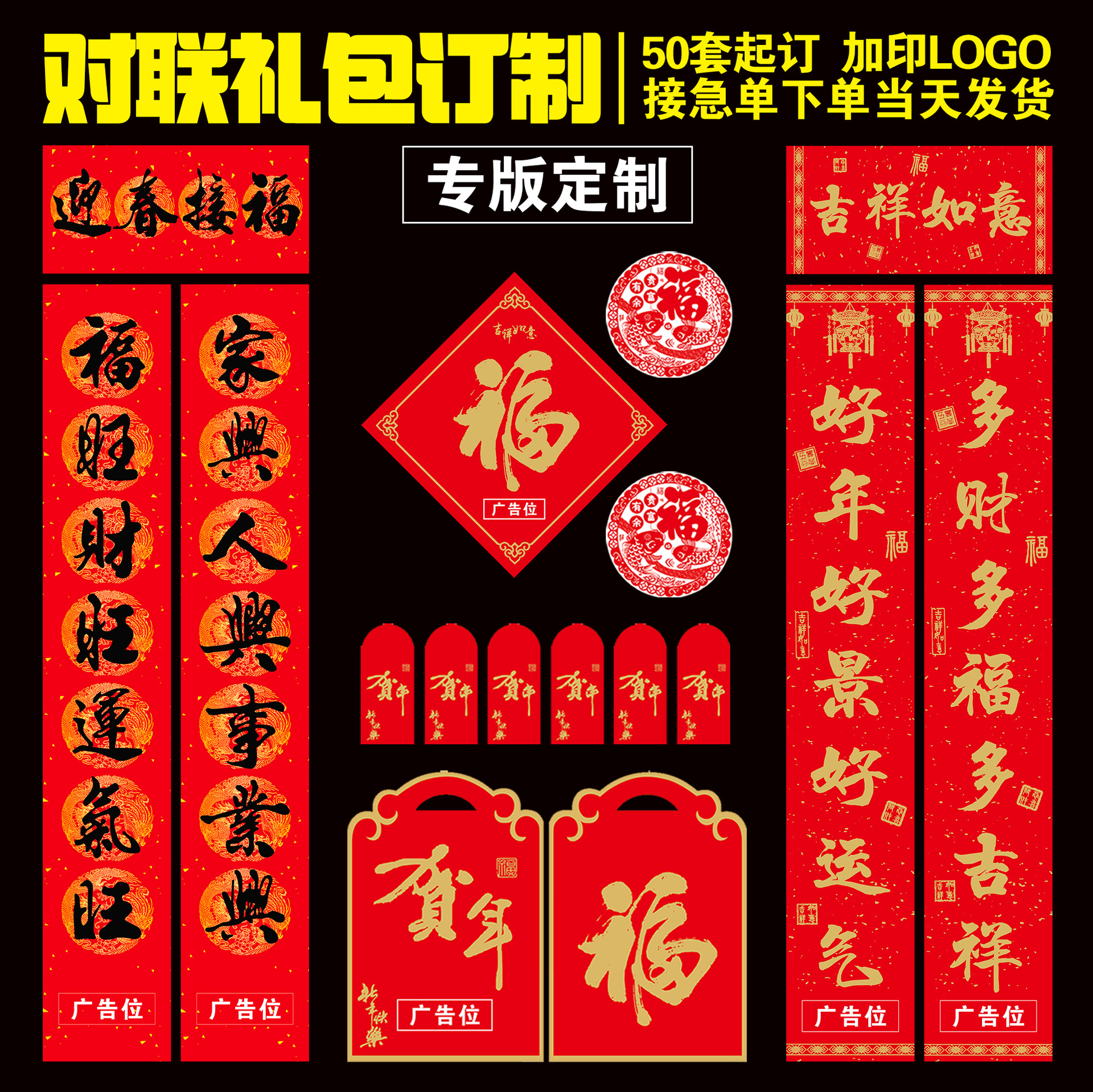 2026马年广告对联定制银行保险企业大礼包春联现货批发加印logo