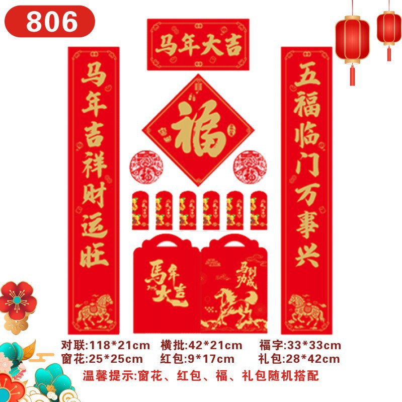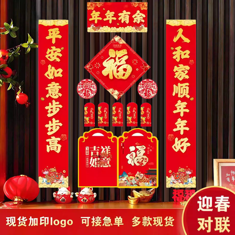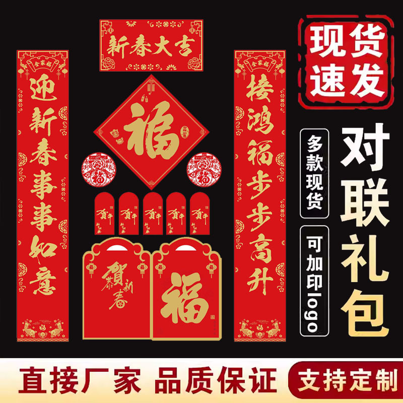 2026马年广告对联定制现货印logo春联红包福字大礼包定做烫金专版