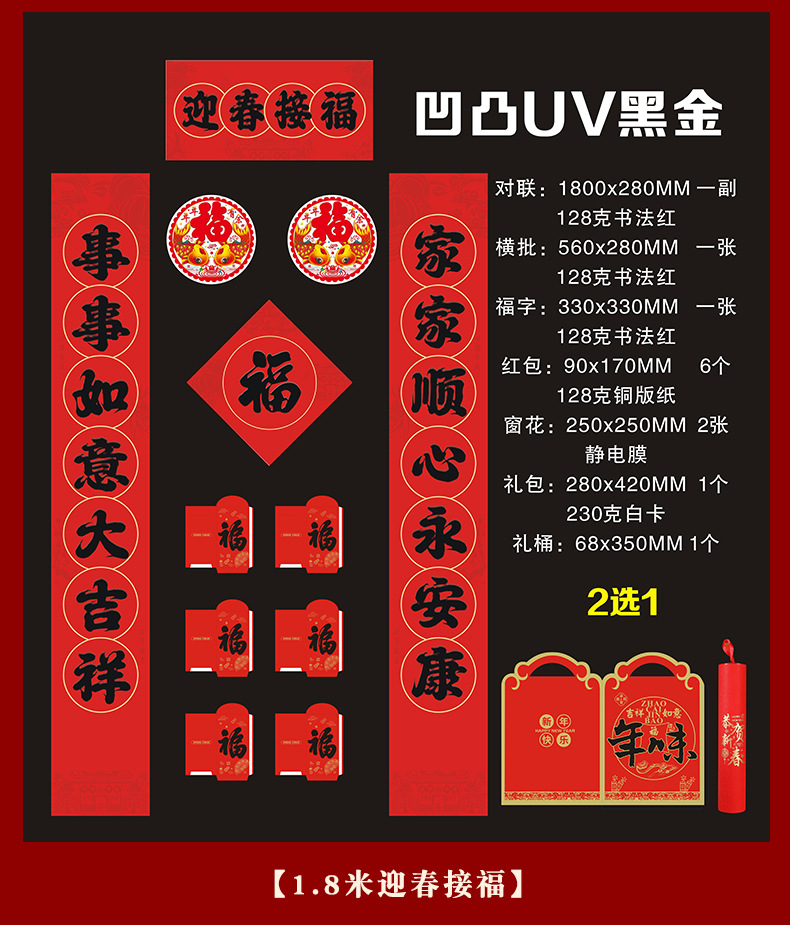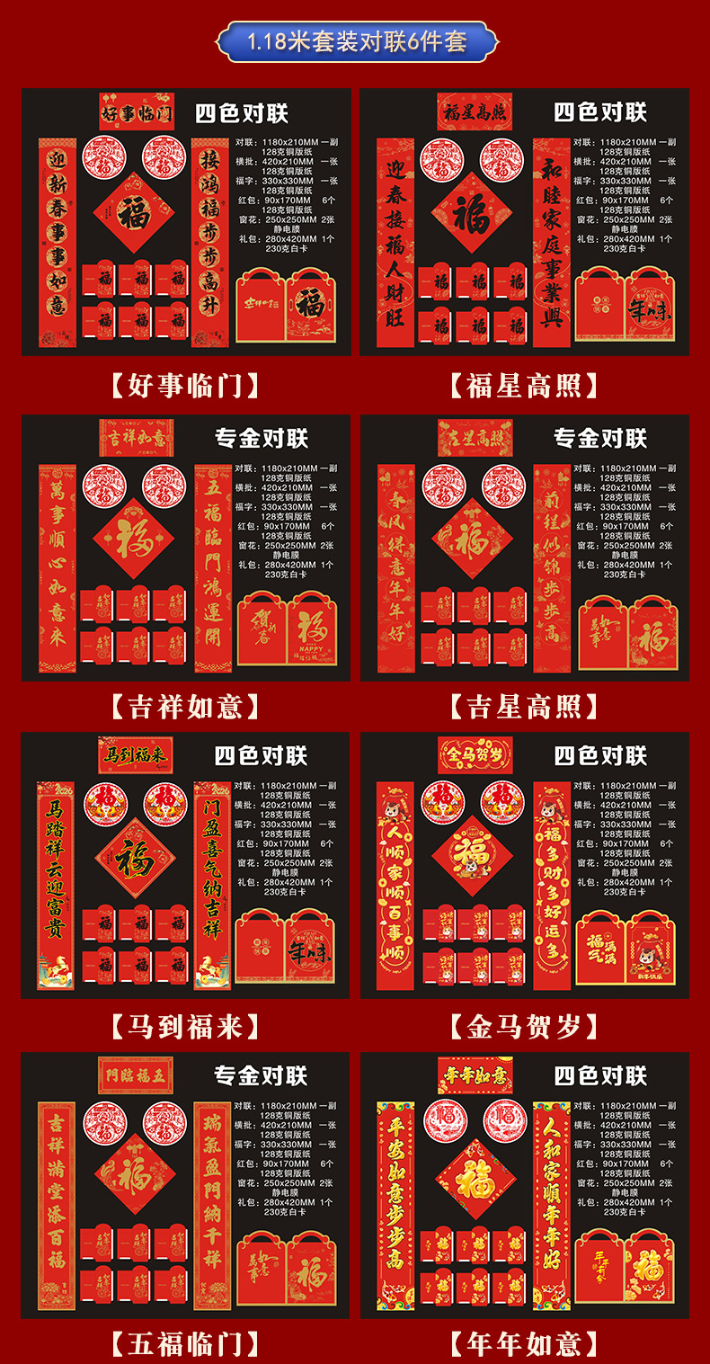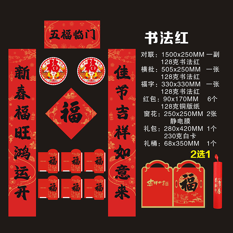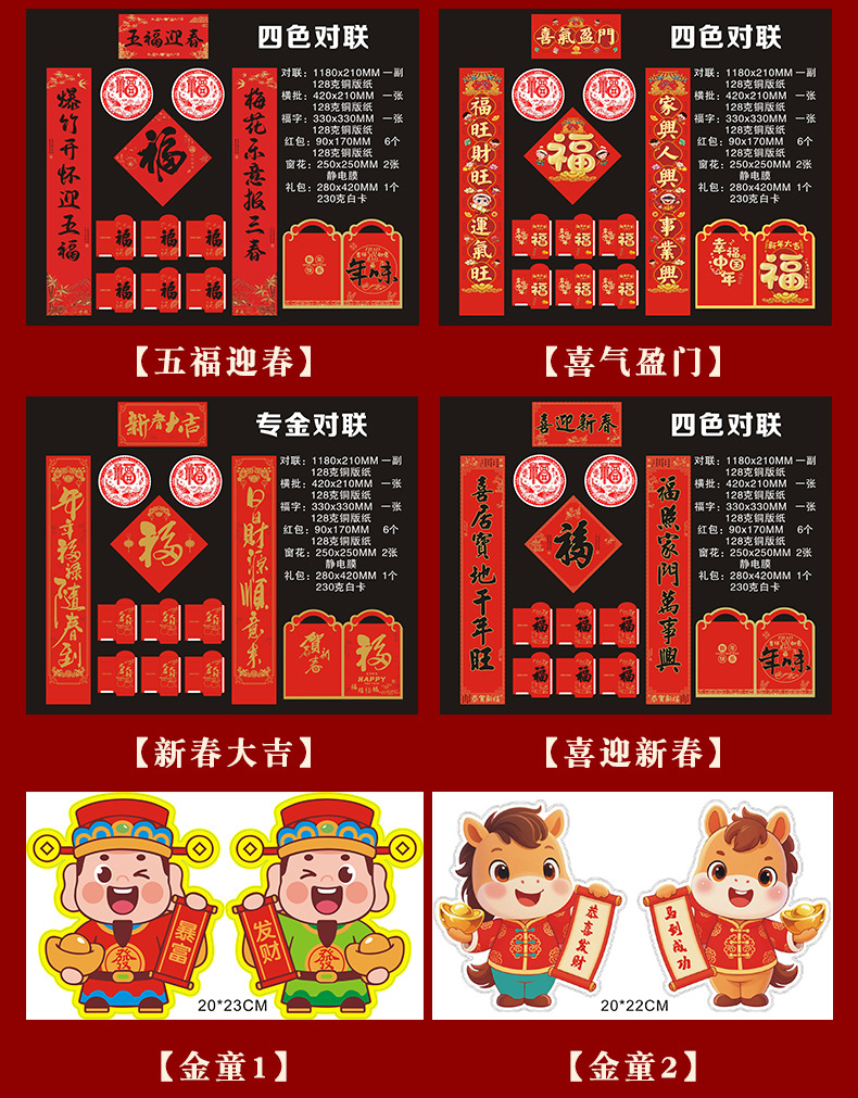 2026铜版纸对联批发马年福字新年创意红包春联现货大礼包可印logo