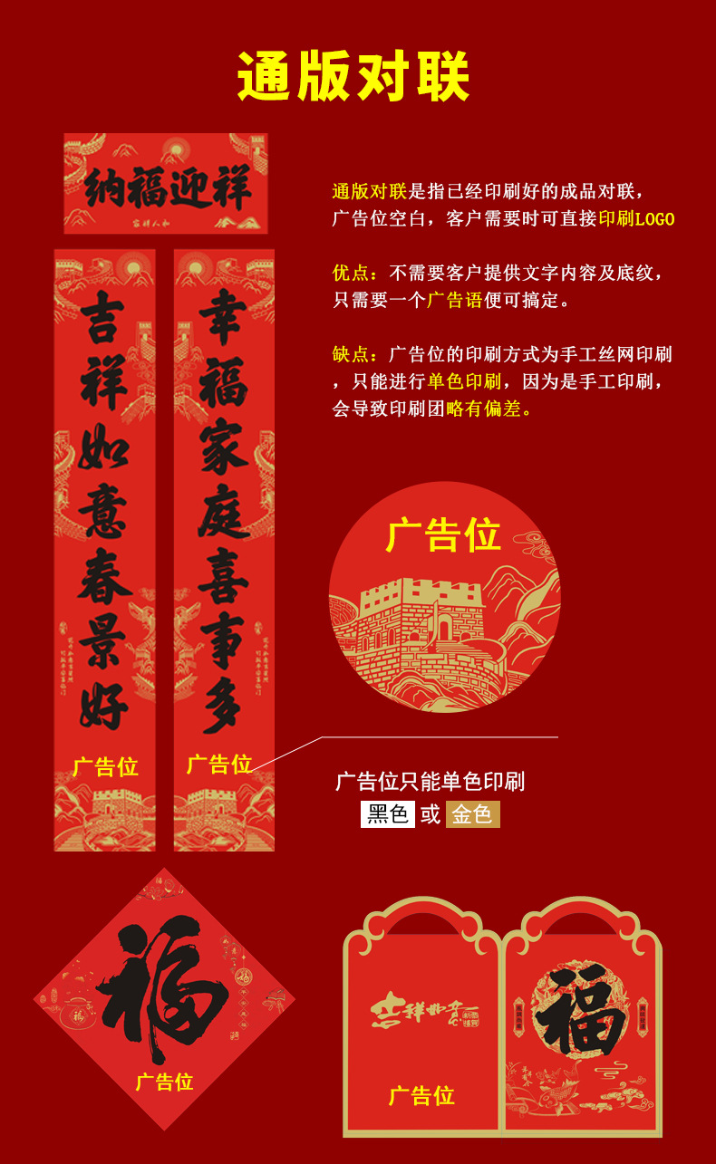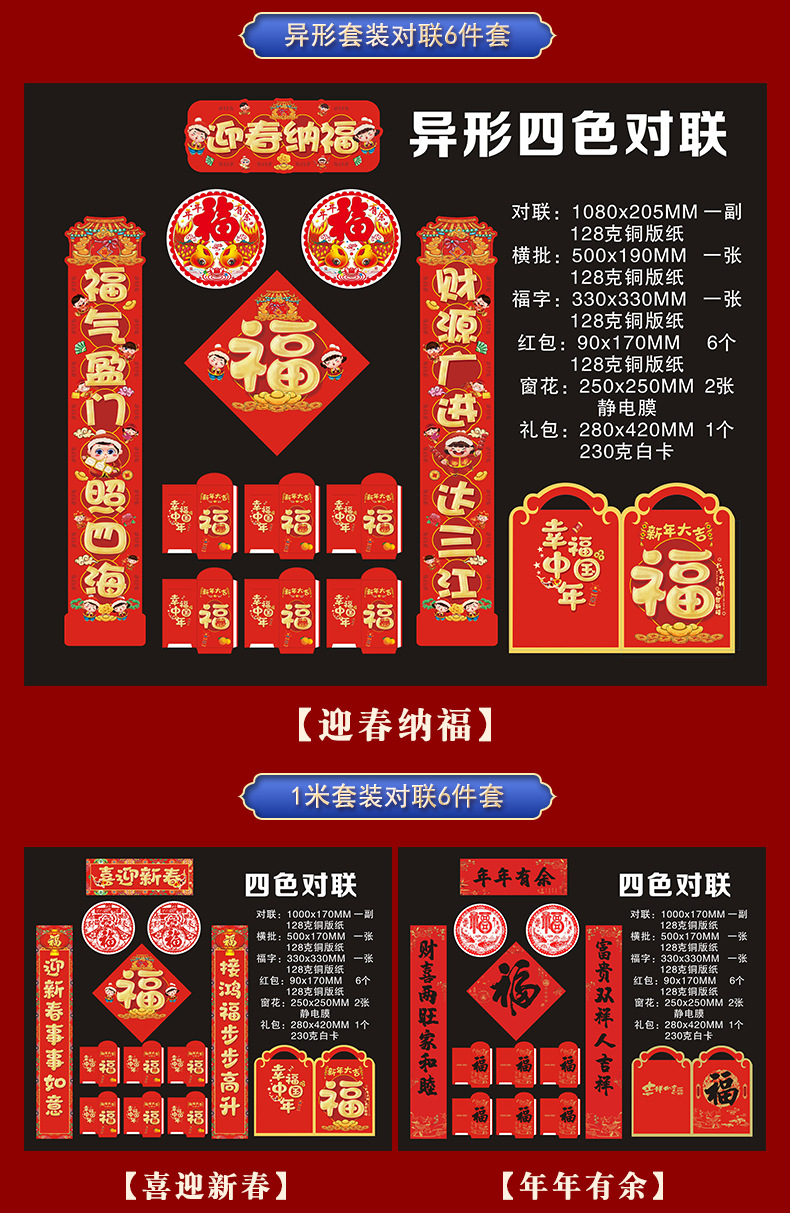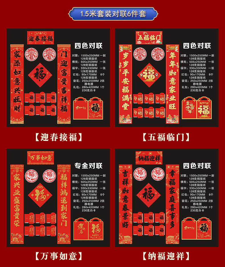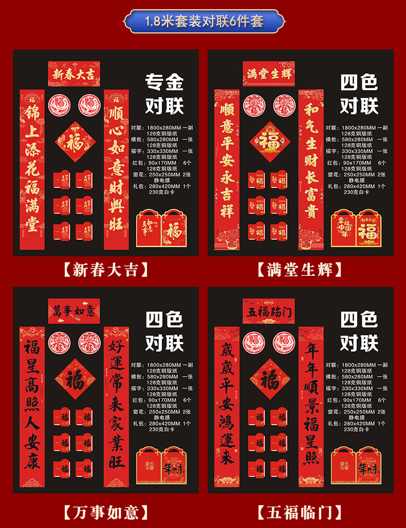 2026铜版纸对联批发马年福字新年创意红包春联现货大礼包可印logo