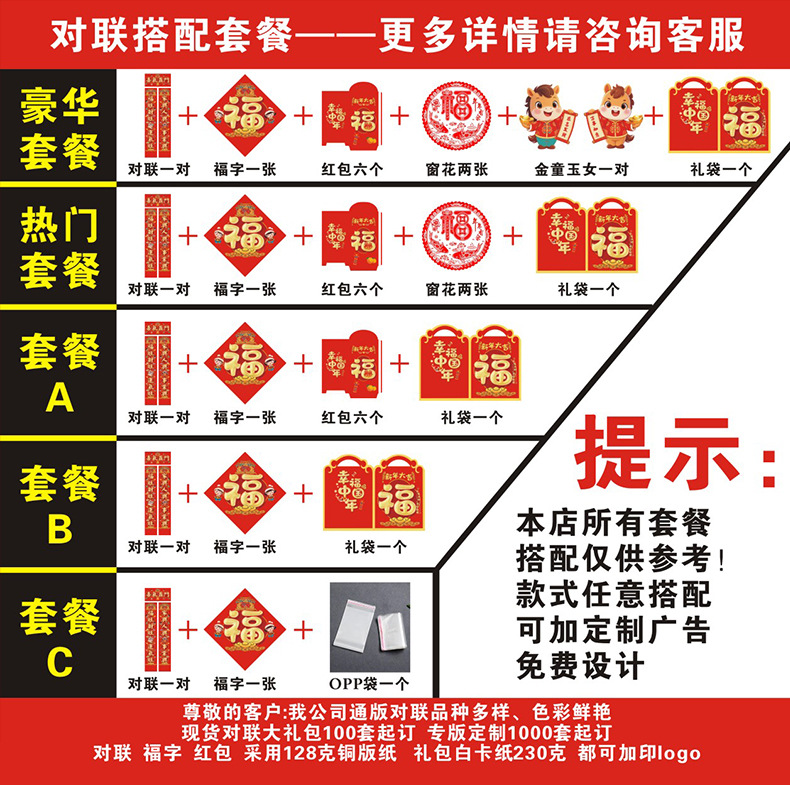 | 28*180 CM对联大礼包 | USD $0.63 | 1313220 set available |