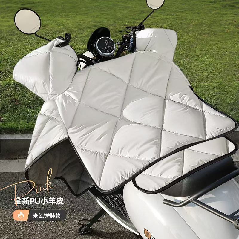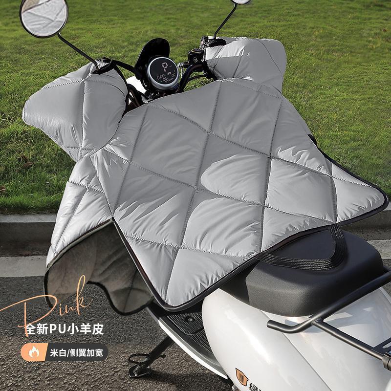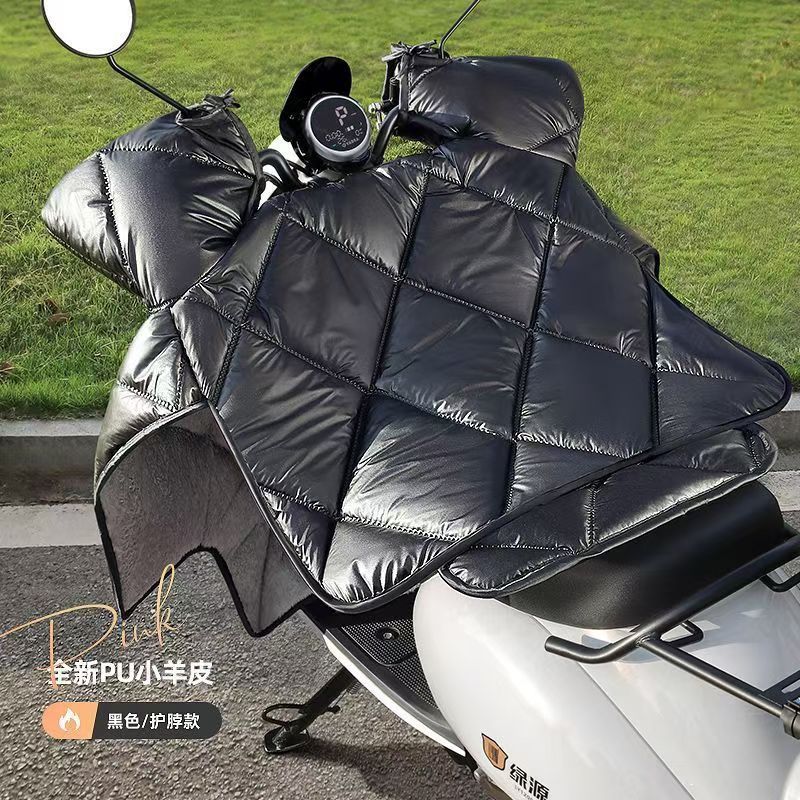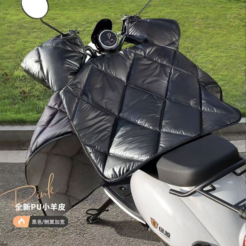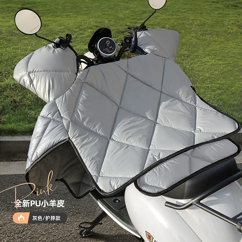 PU小羊皮电动车挡风被冬季加绒加厚电瓶摩托车防水防风罩2024新款