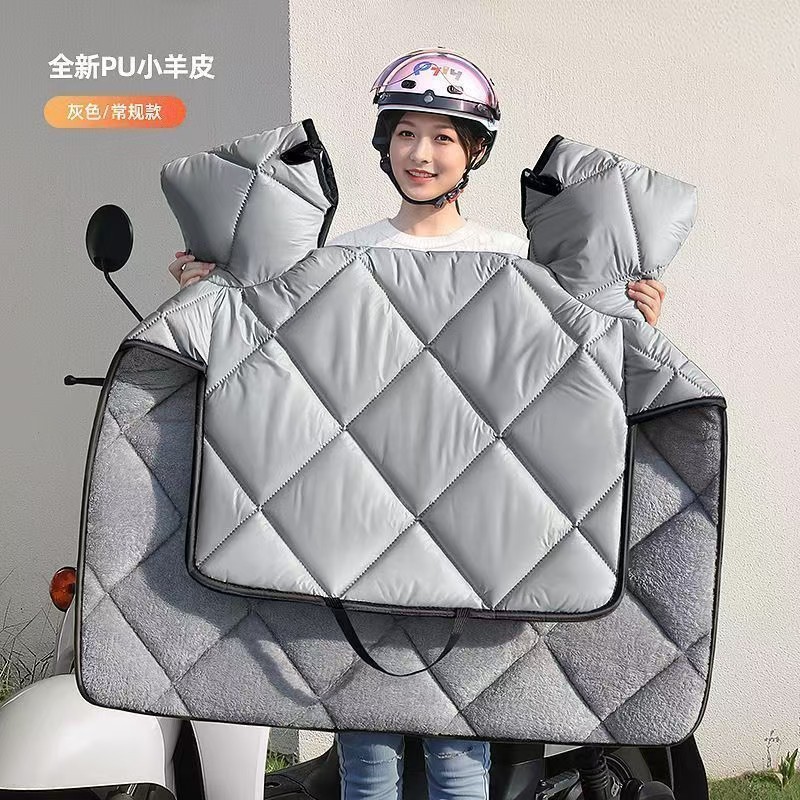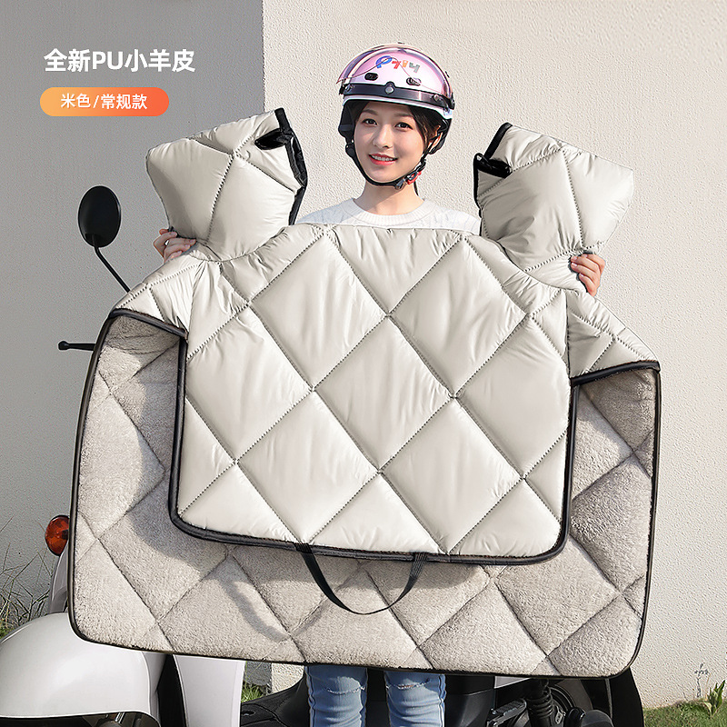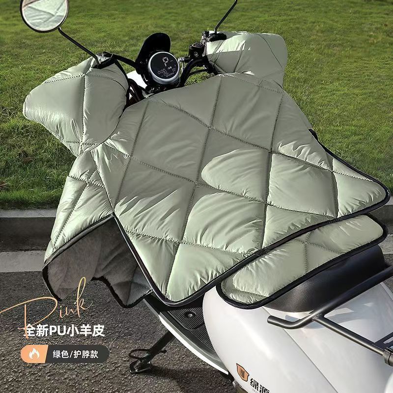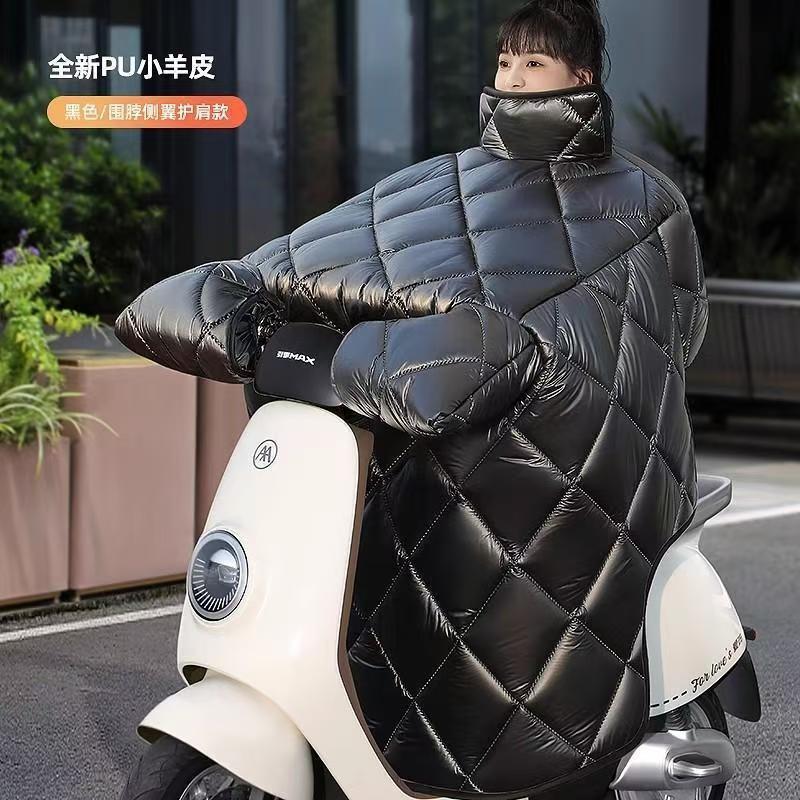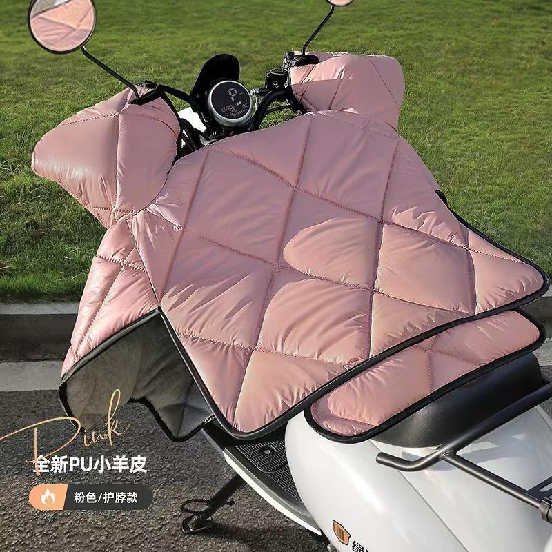 PU小羊皮电动车挡风被冬季加绒加厚电瓶摩托车防水防风罩2024新款