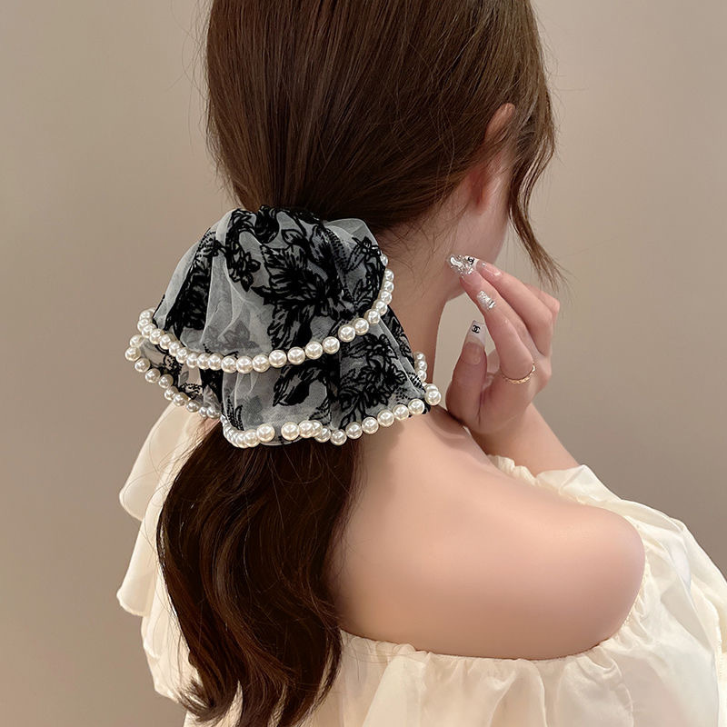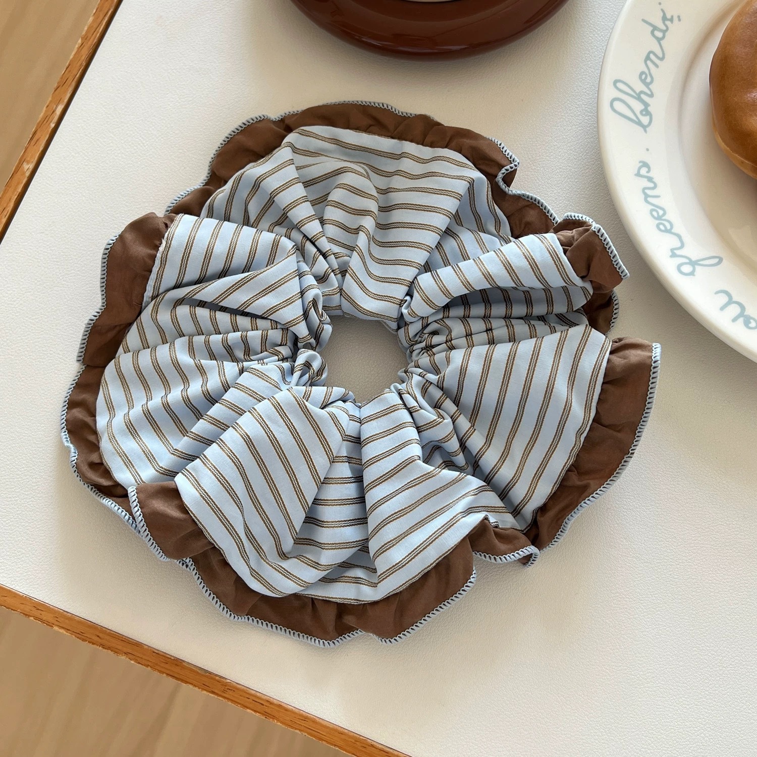 韩系格子蕾丝大肠发圈女2025新款发绳ins风超大号丸子头发饰头花