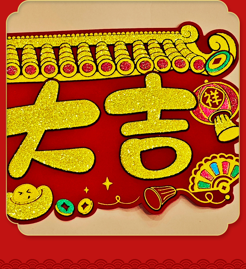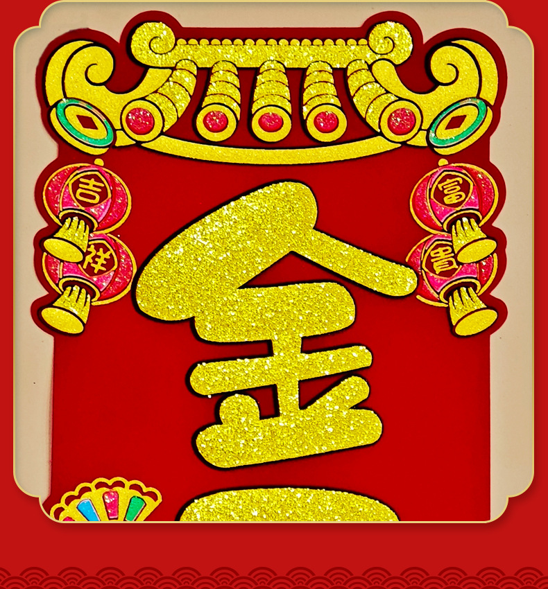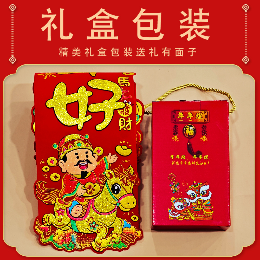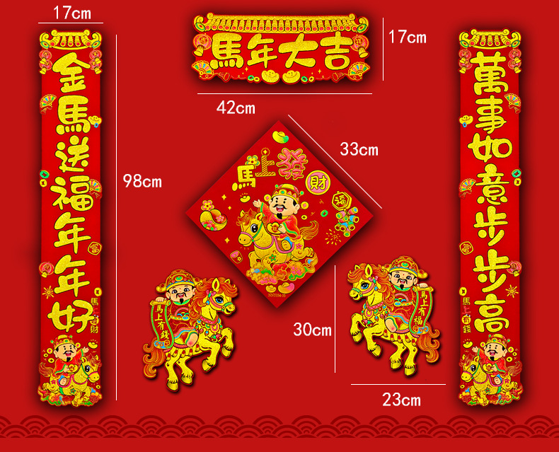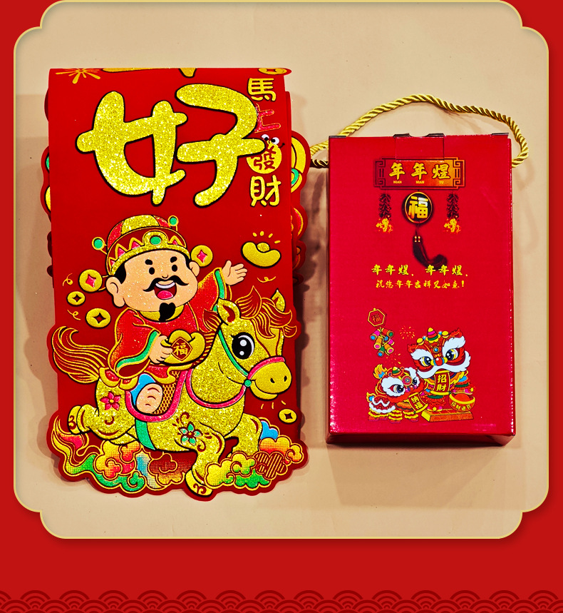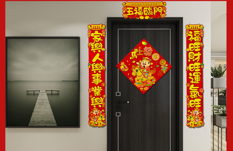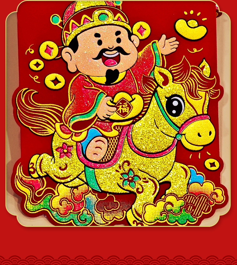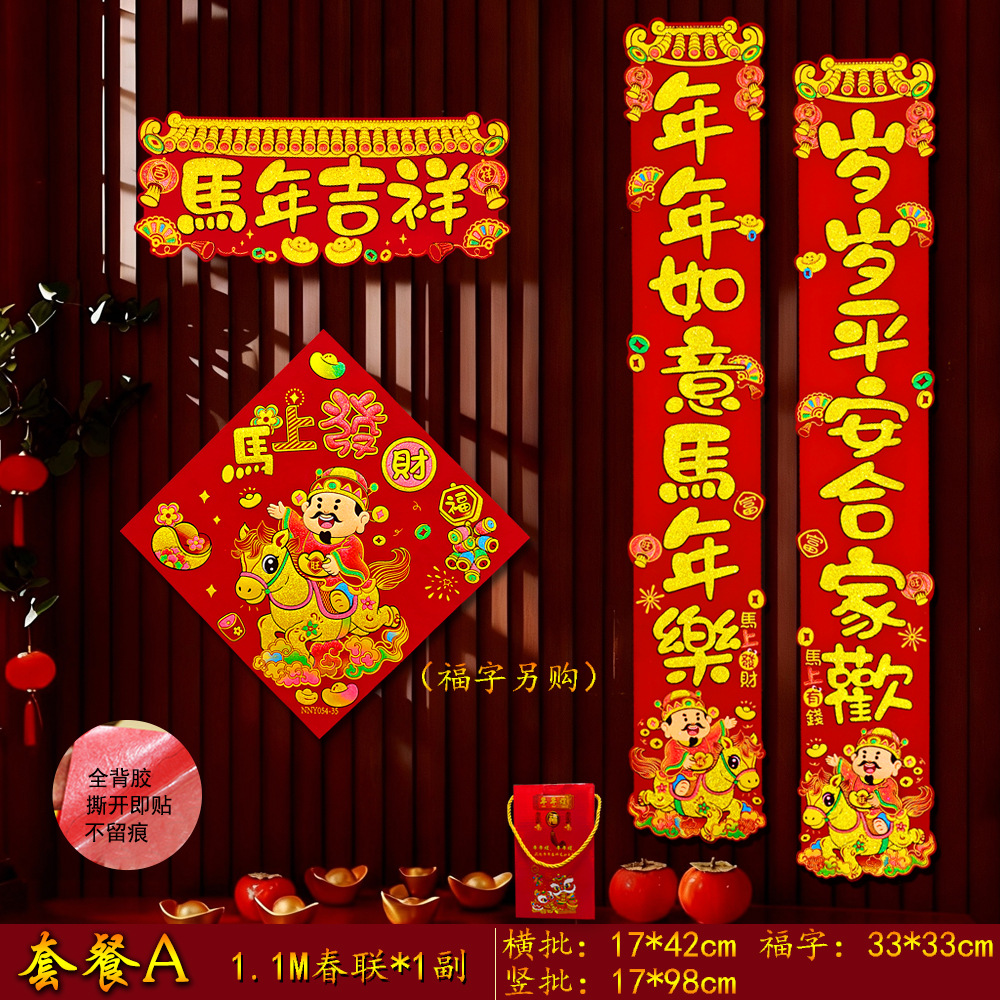 2026马年新款新年对联装饰创意卡通财神绒布自粘春联春节用品礼盒