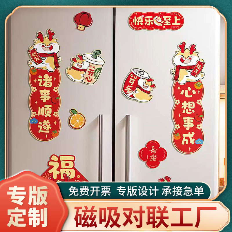 定制强磁吸蛇年对联装饰门贴车贴迷你冰箱贴新年春联福字车贴春联