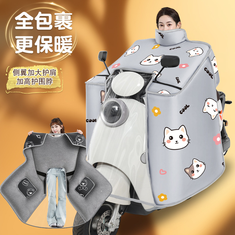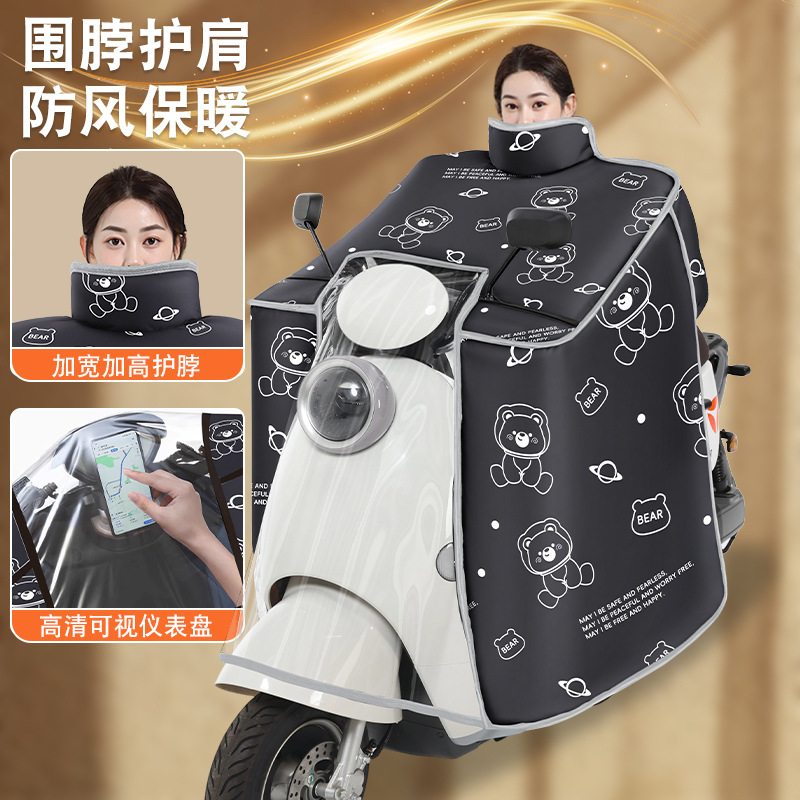 e-bike windshield winter thickened velvet padded fully enclosed cloak neck protection windproof quilt battery car windproof quilt
