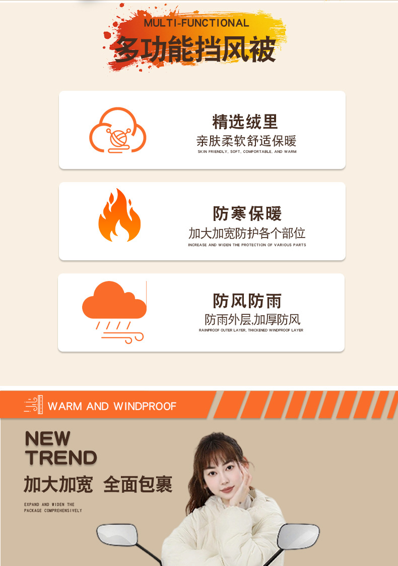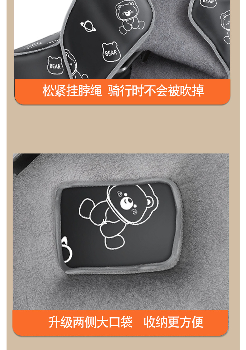 电动车挡风被冬季加厚加绒全包围斗篷护脖款挡风被电瓶车挡风被