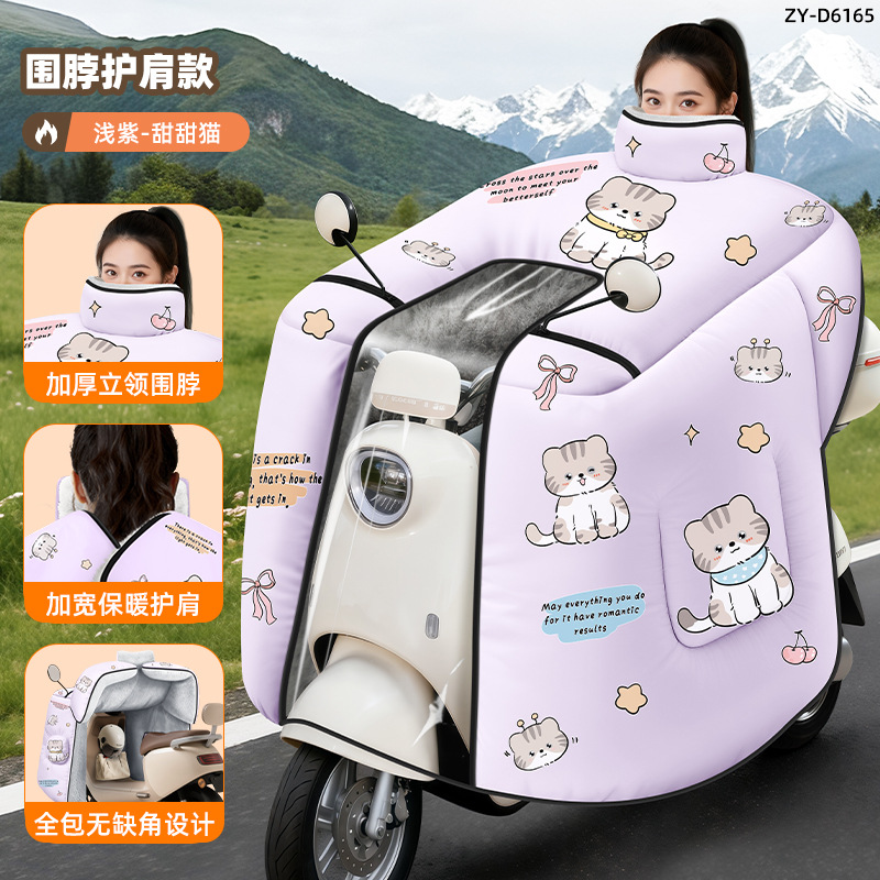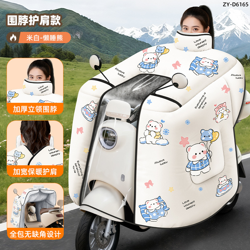全包加大加厚电动车冬正雨防风挡风被法兰绒围脖护肩电瓶摩托车