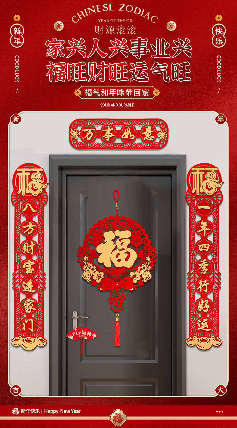 对联春联批发家用2026马年新款新年植绒磁吸新春节过年高档门挂件