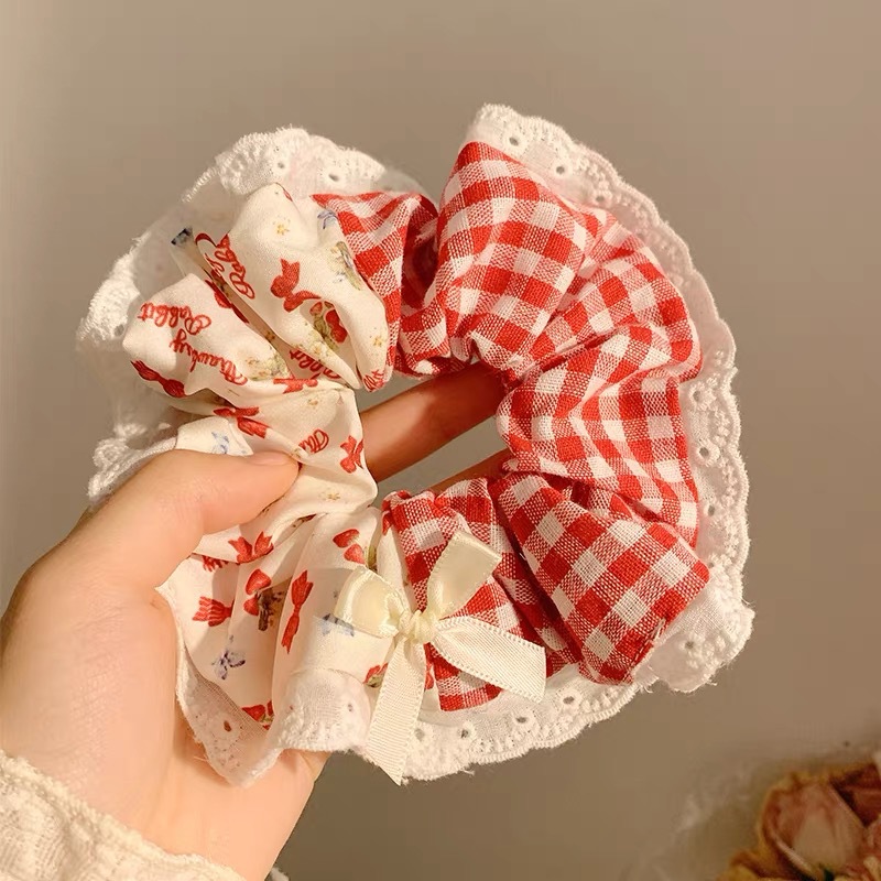 韩系蕾丝大肠发圈女高级感超大号扎丸子头发绳慵懒风马尾皮筋发饰