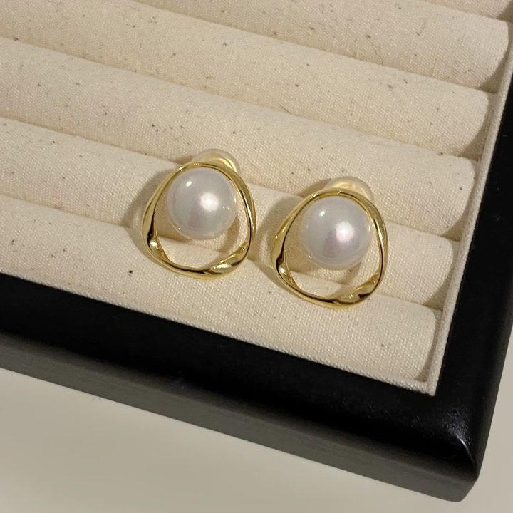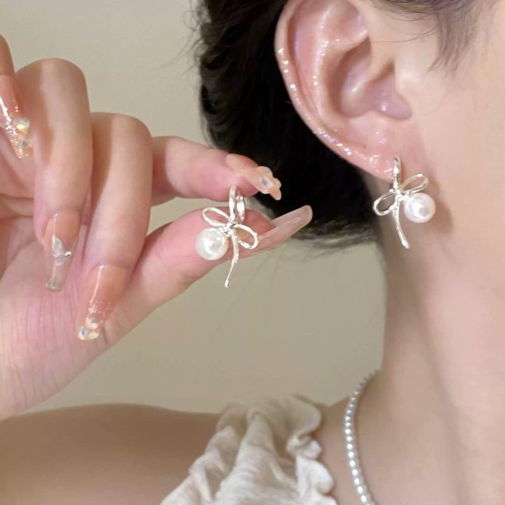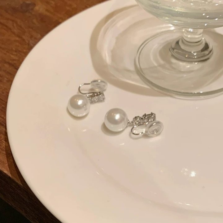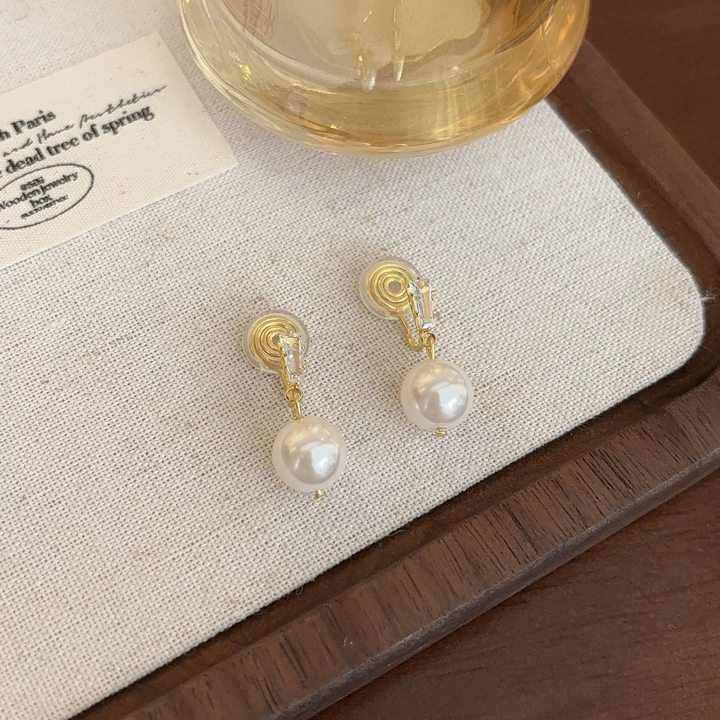 蝴蝶结珍珠耳夹女无耳洞小众高级感耳环女气质百搭蚊香盘耳夹耳饰