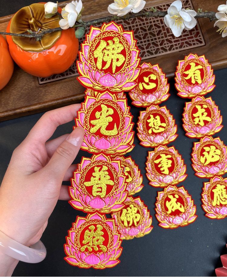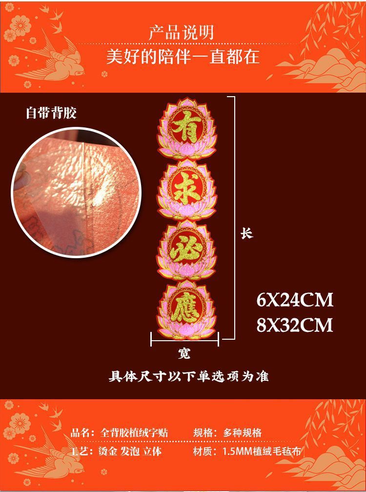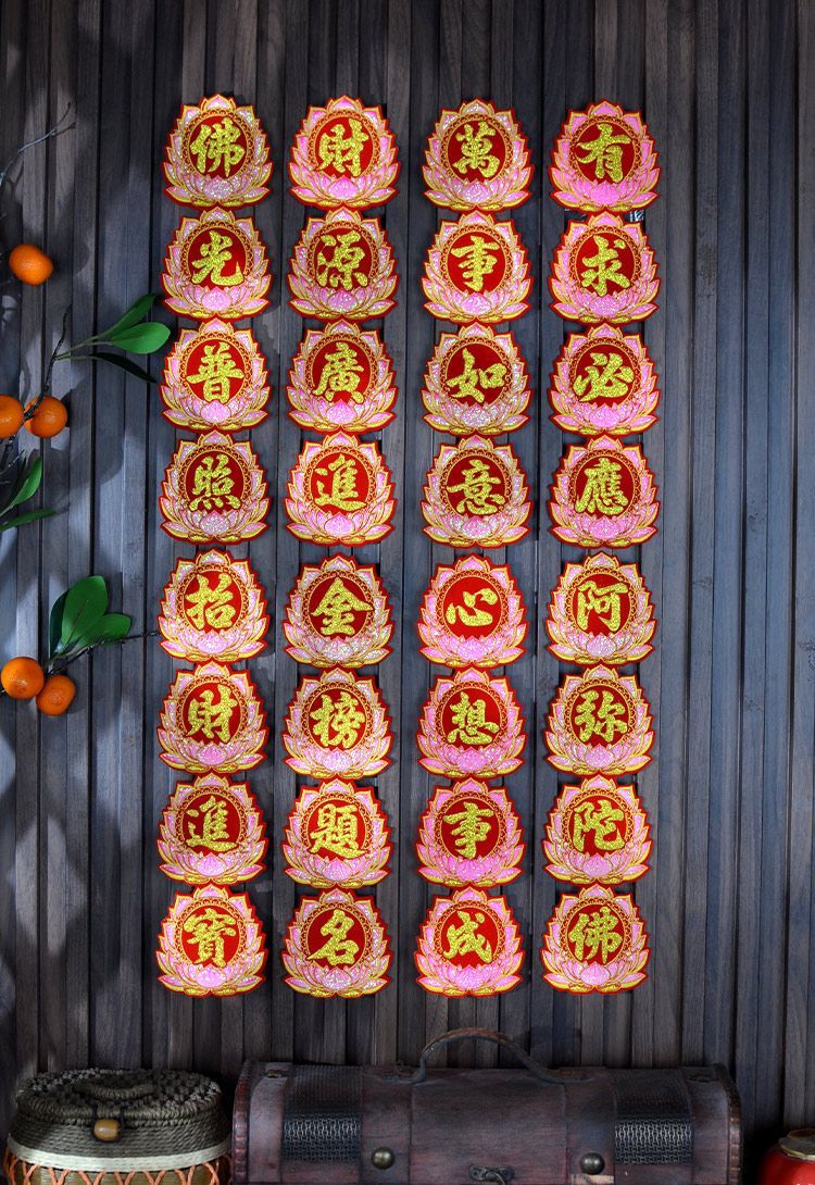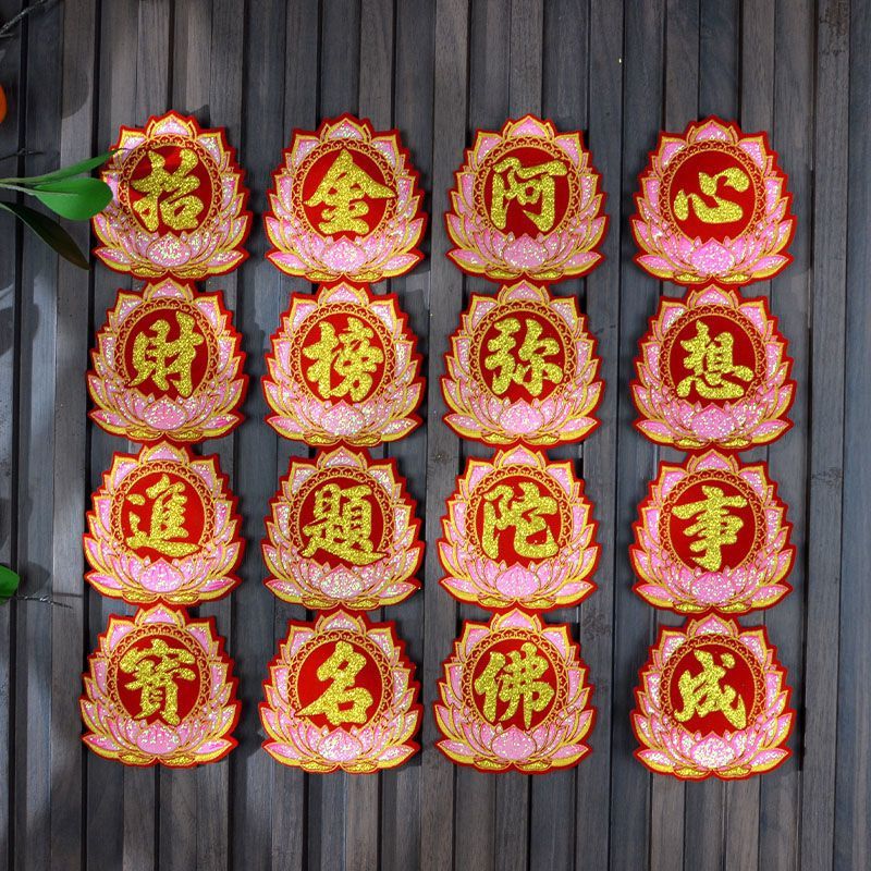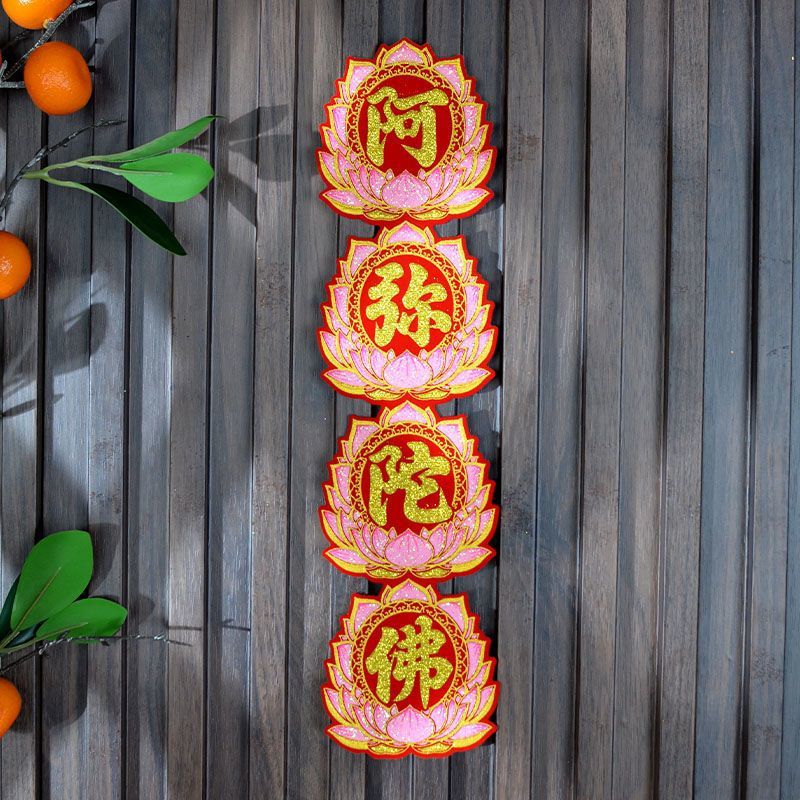 [加厚绒布]佛光普照有求必应阿弥陀佛心想事成自粘折塔小对联装饰
