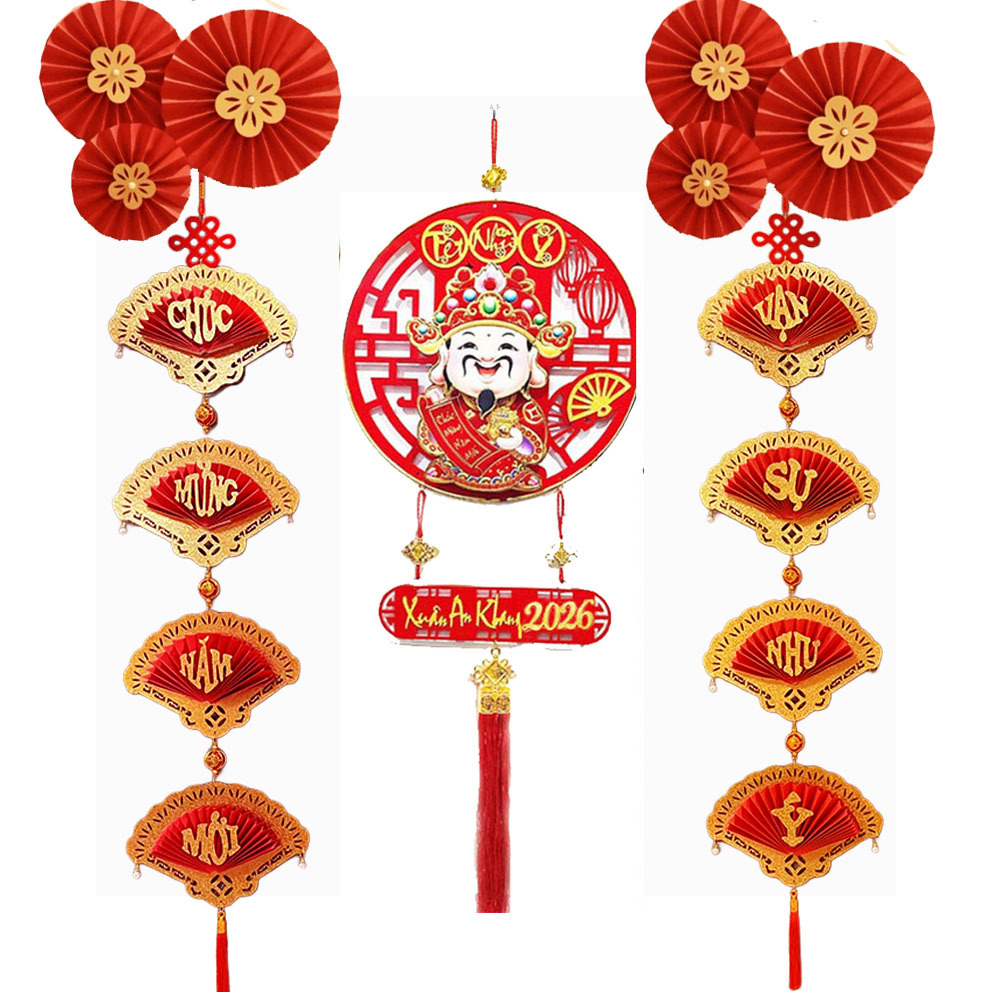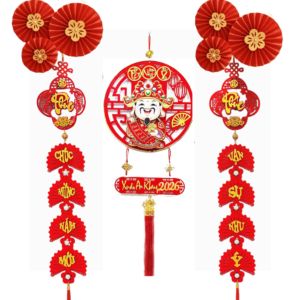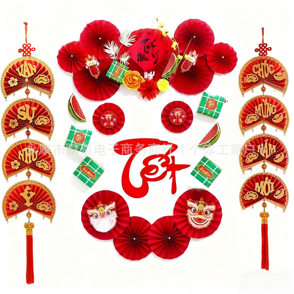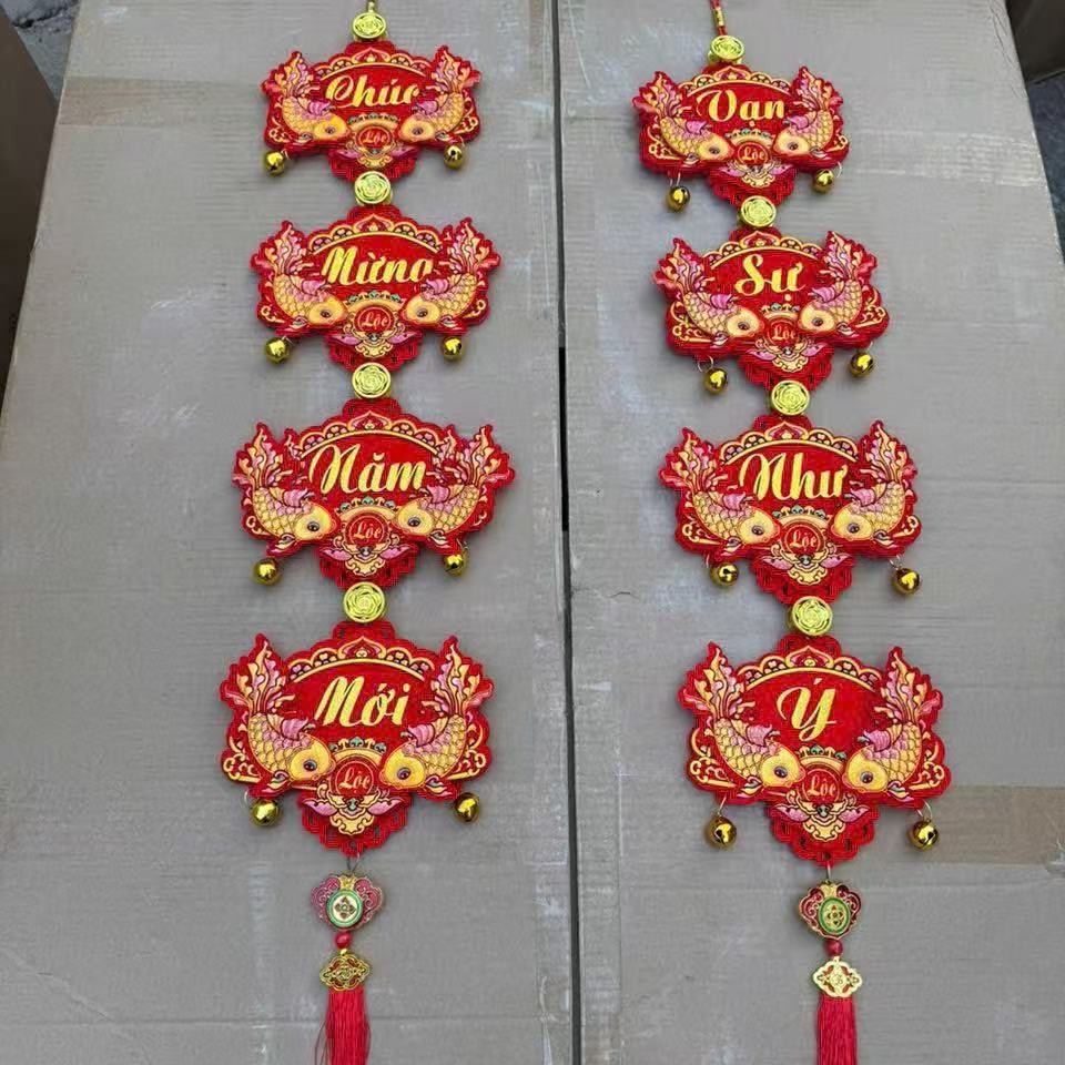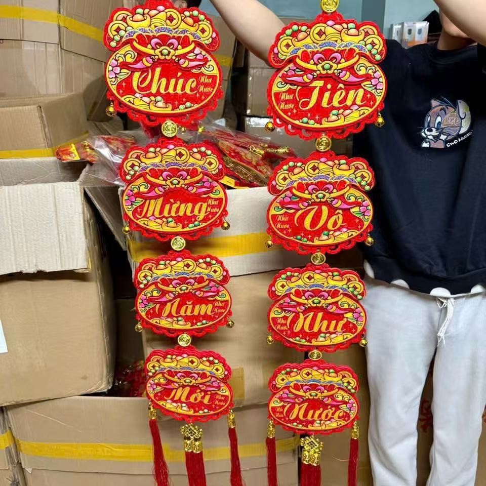 新款越南文植绒对联2026新年春节对联挂饰元旦过年客厅门对挂跨境
