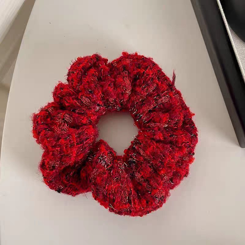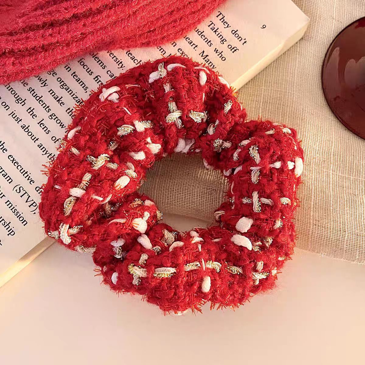 新年红色大肠发圈秋冬节日氛围感毛绒丸子发饰皮筋女扎头发绳发饰